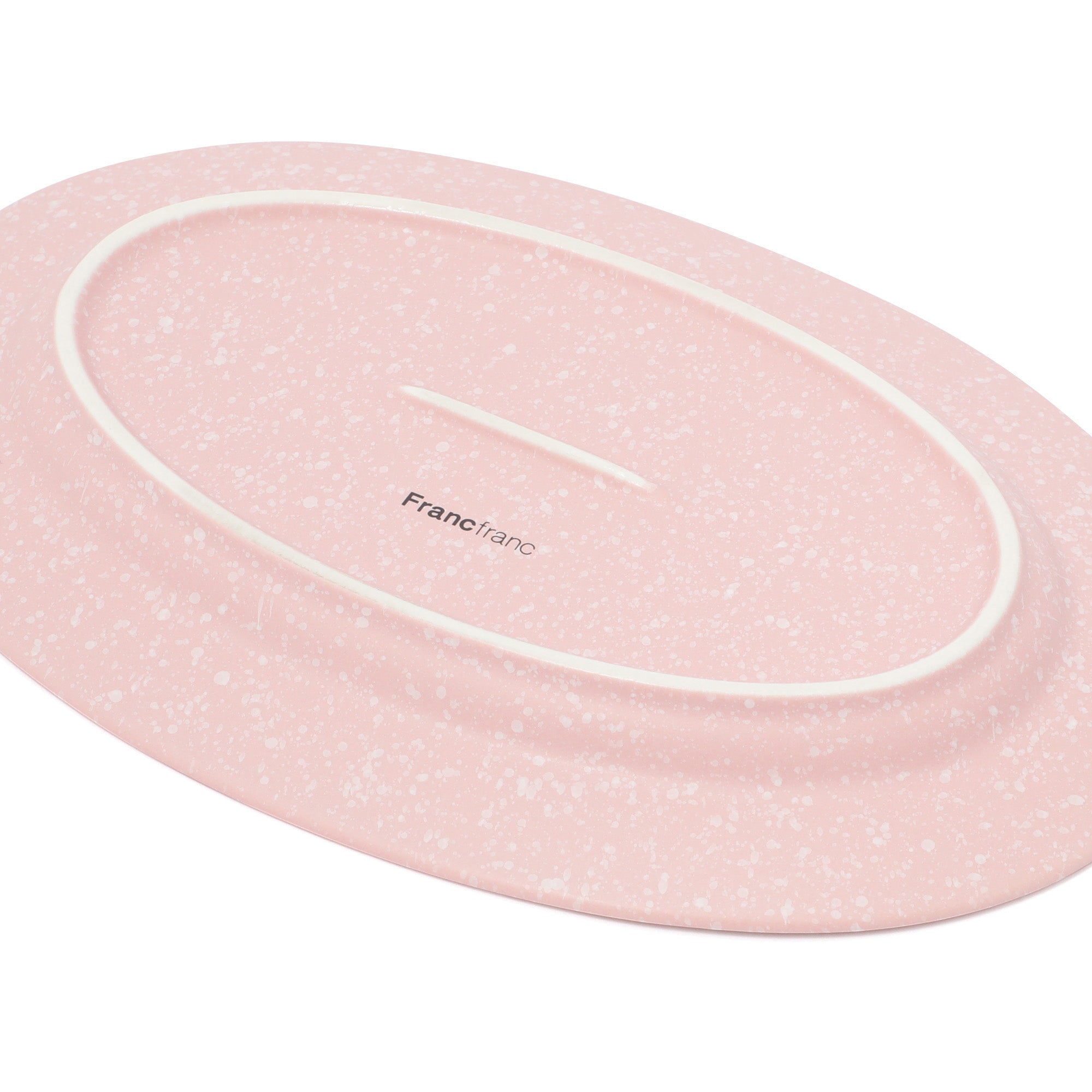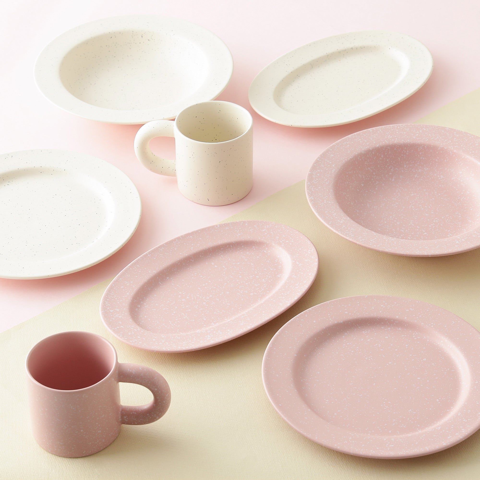秋を感じるカラーバリエーションが魅力の、スプラッター柄のオーバルプレートです。細かいスプラッターテクスチャーが施され、デザイン性がありつつも形状はシンプル。食卓のアクセントとして取り入れやすいデザインになっています。同シリーズのカラーガラスのガラスウェアや、リバーシブルランチマットと色を合わせてコーディネートするのもおすすめです。