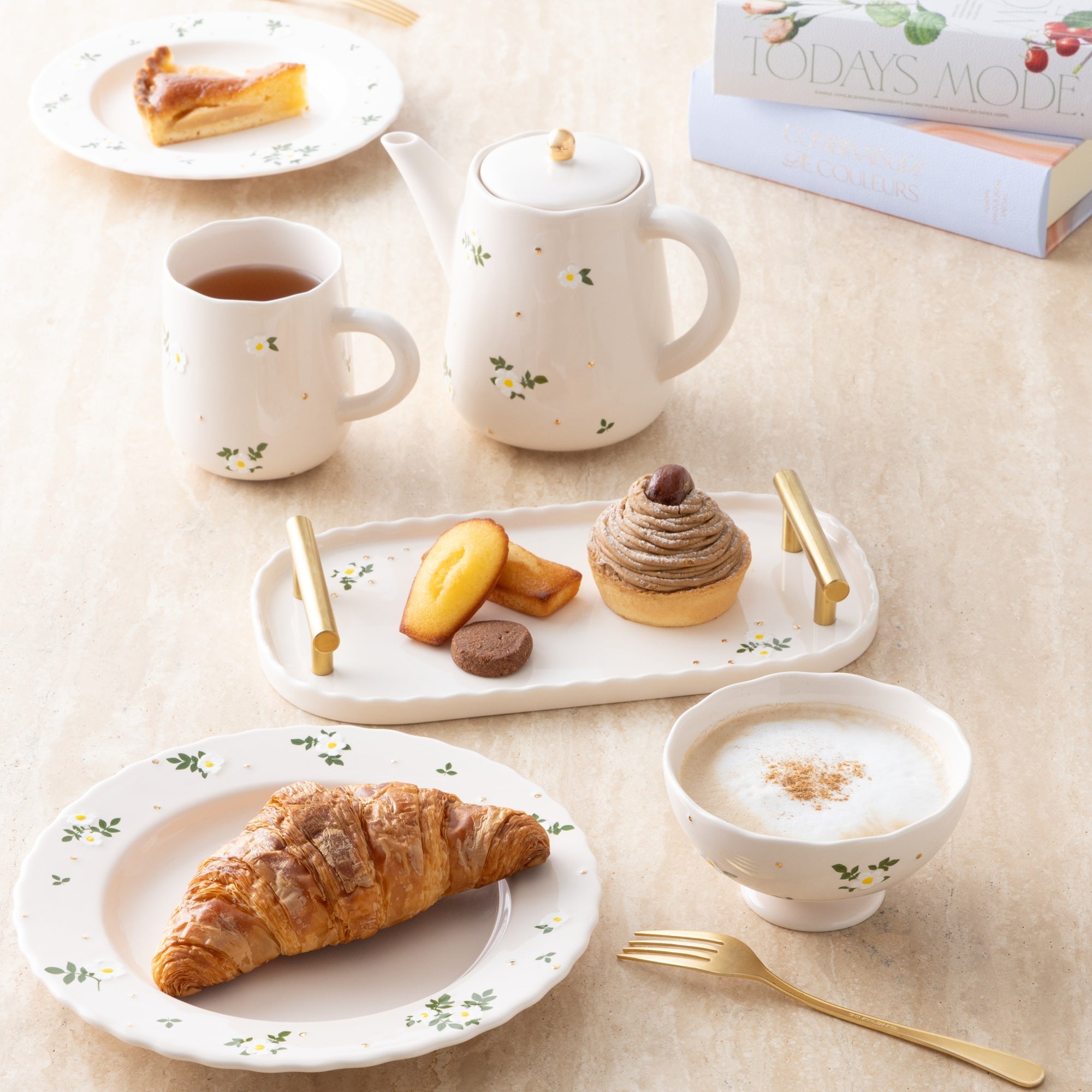 トレンドの小花柄が可愛らしいデザインのプレートです。お花のシルエットが刺繍のようにぷっくり。ケーキなどのスイーツを可愛く引き立てます。同シリーズで揃えるとおしゃれなカフェタイムが楽しめます。