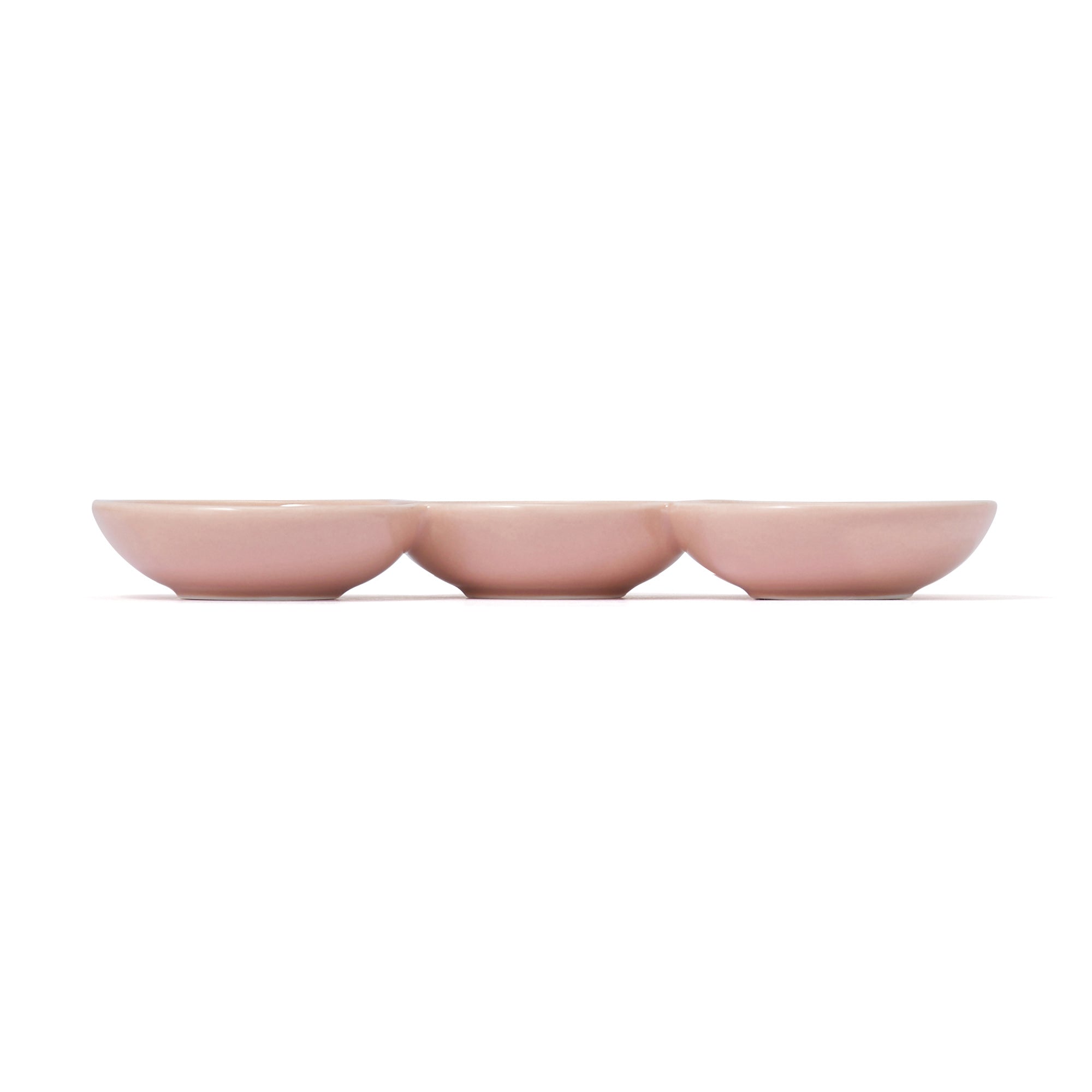 コロンとした丸がぽんぽんと連なった仕切り付きプレートです。薬味や小さなおかずをすっきりと美しく盛り分けられます。シンプルながら遊び心のあるデザインは、普段使いはもちろん、おもてなしの席にもぴったり。小さなお菓子や調味料を盛り付けても絵になる、食卓を華やかに彩る一枚です。