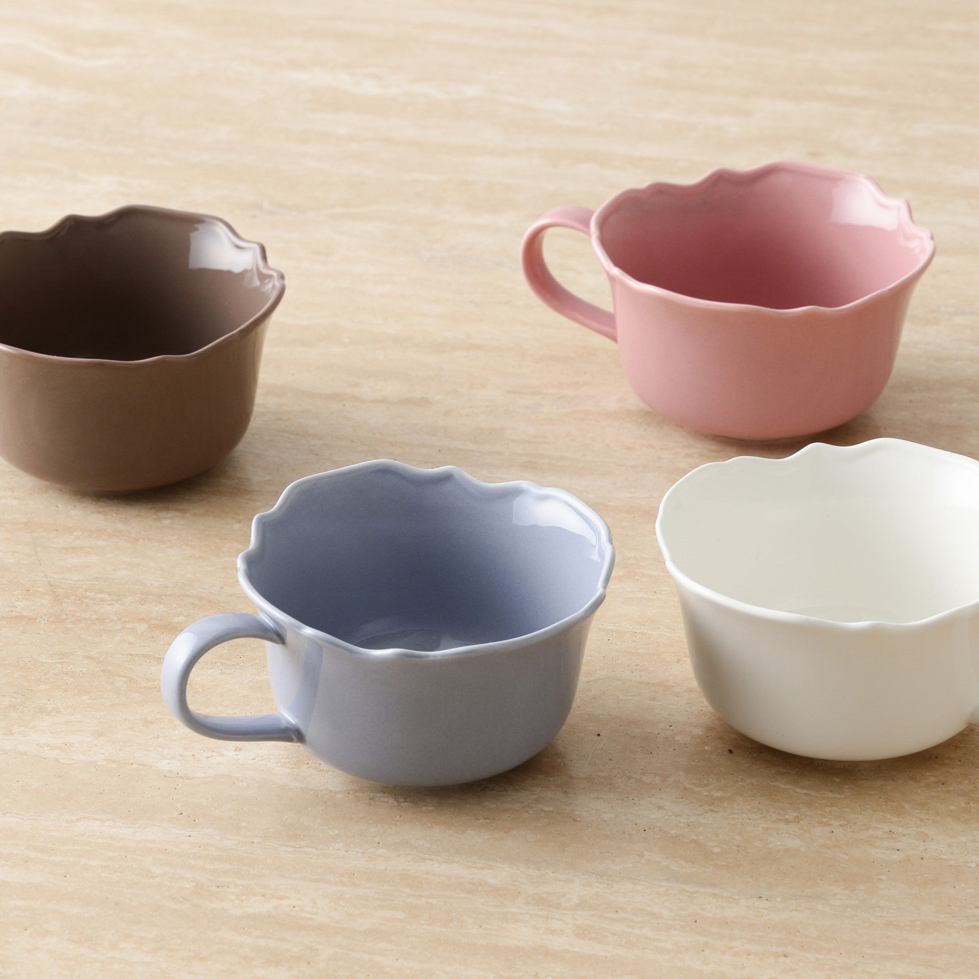 花のようなフォルムとぷっくりボリュームのあるリムが華やかなスープカップです。電子レンジやオーブン、食器洗浄機の使用が可能なので普段使いにぴったり。オニオングラタンスープなどオーブンで調理したいお料理から、毎朝のグラノーラまで、幅広いシーンでお使いいただけます。