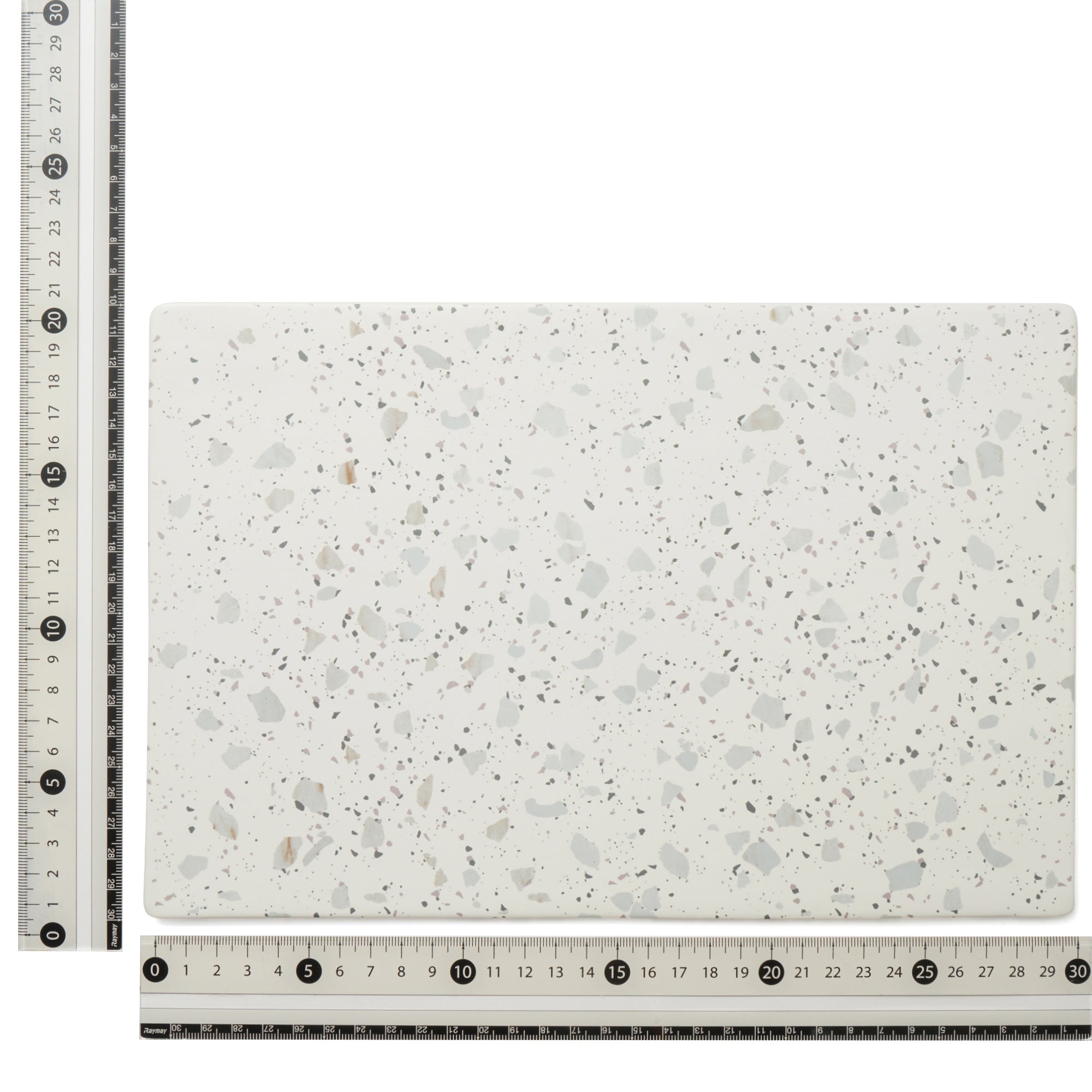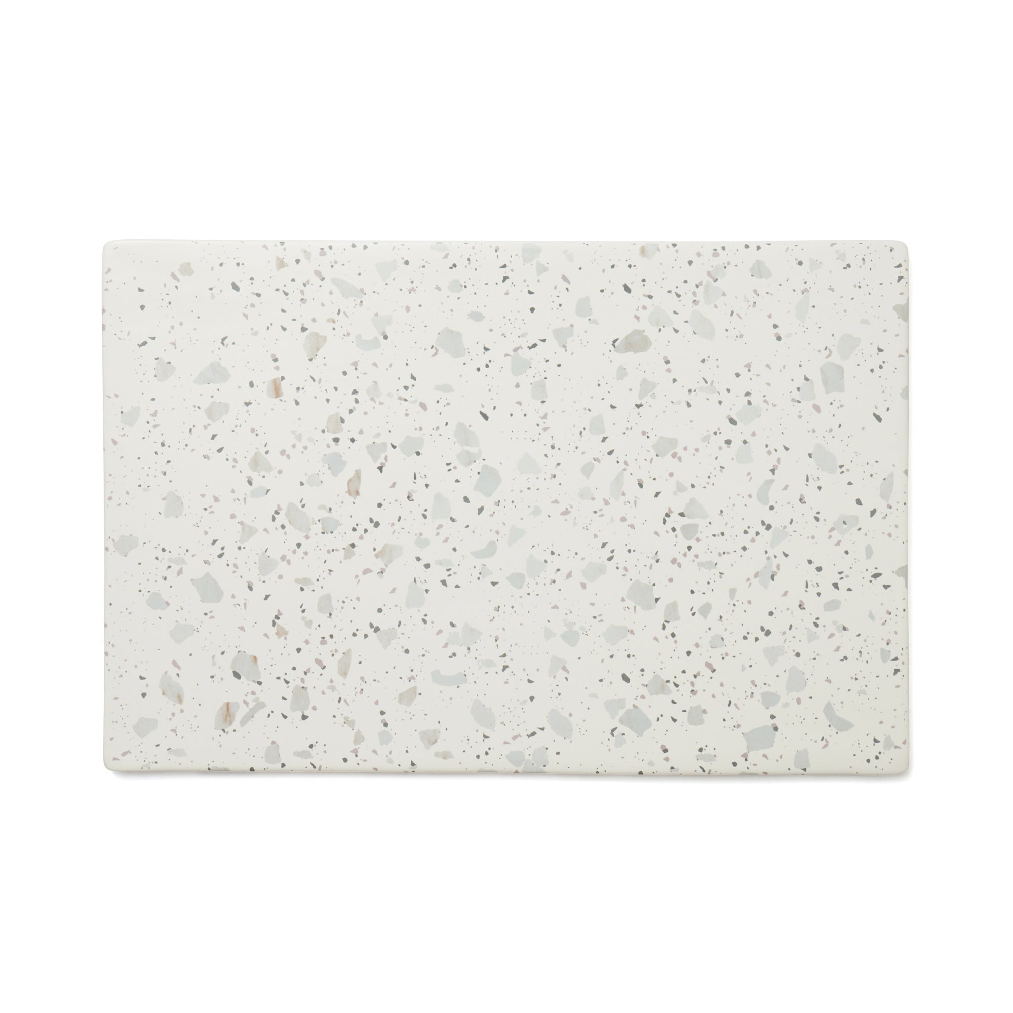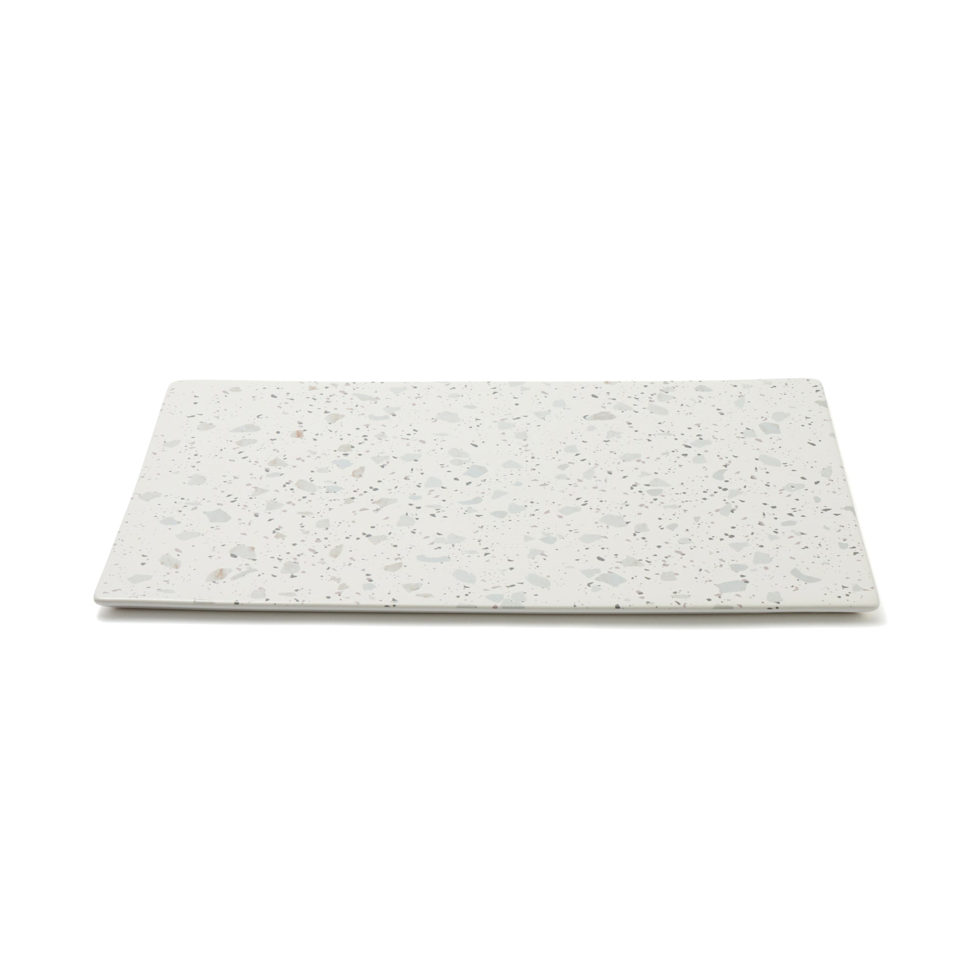 トレンドのバイオフィリックデザイン(自然を取り入れたデザイン)のプレートです。本物の石に色々な模様があるように、こちらのシリーズも単なる色違いではなく色々な模様を取り入れて石を表現しました。淵に少し丸みがある形状をつけることでトレンドらしさを加えています。スクエアLサイズはパンやお惣菜などを乗せるのにぴったりな平らなプレート。様々なサイズがあるので、お好みで揃えたら、おしゃれなパーティーシーンのコーディネートが完成します。