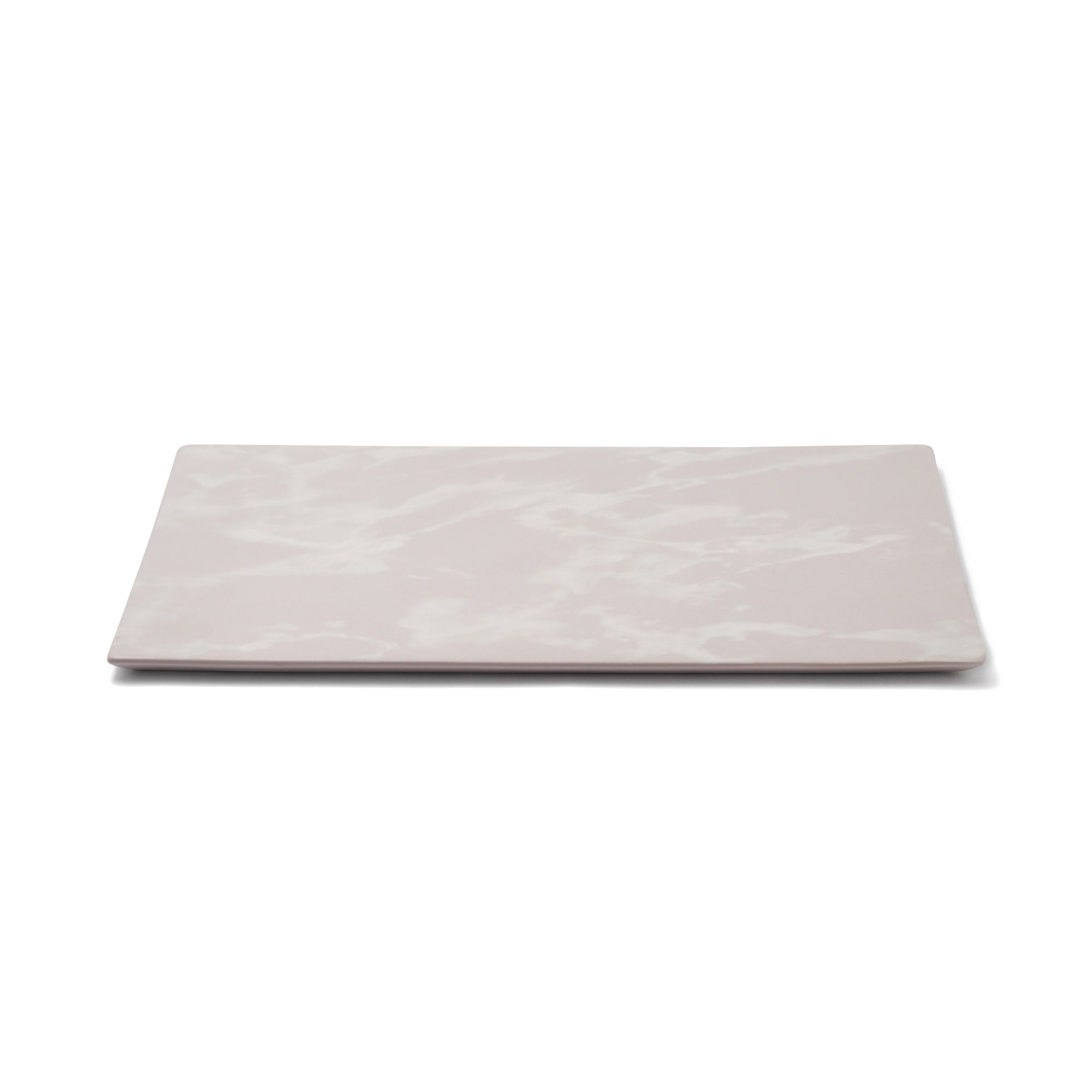 トレンドのバイオフィリックデザイン(自然を取り入れたデザイン)のプレートです。本物の石に色々な模様があるように、こちらのシリーズも単なる色違いではなく色々な模様を取り入れて石を表現しました。淵に少し丸みがある形状をつけることでトレンドらしさを加えています。スクエアLサイズはパンやお惣菜などを乗せるのにぴったりな平らなプレート。様々なサイズがあるので、お好みで揃えたら、おしゃれなパーティーシーンのコーディネートが完成します。