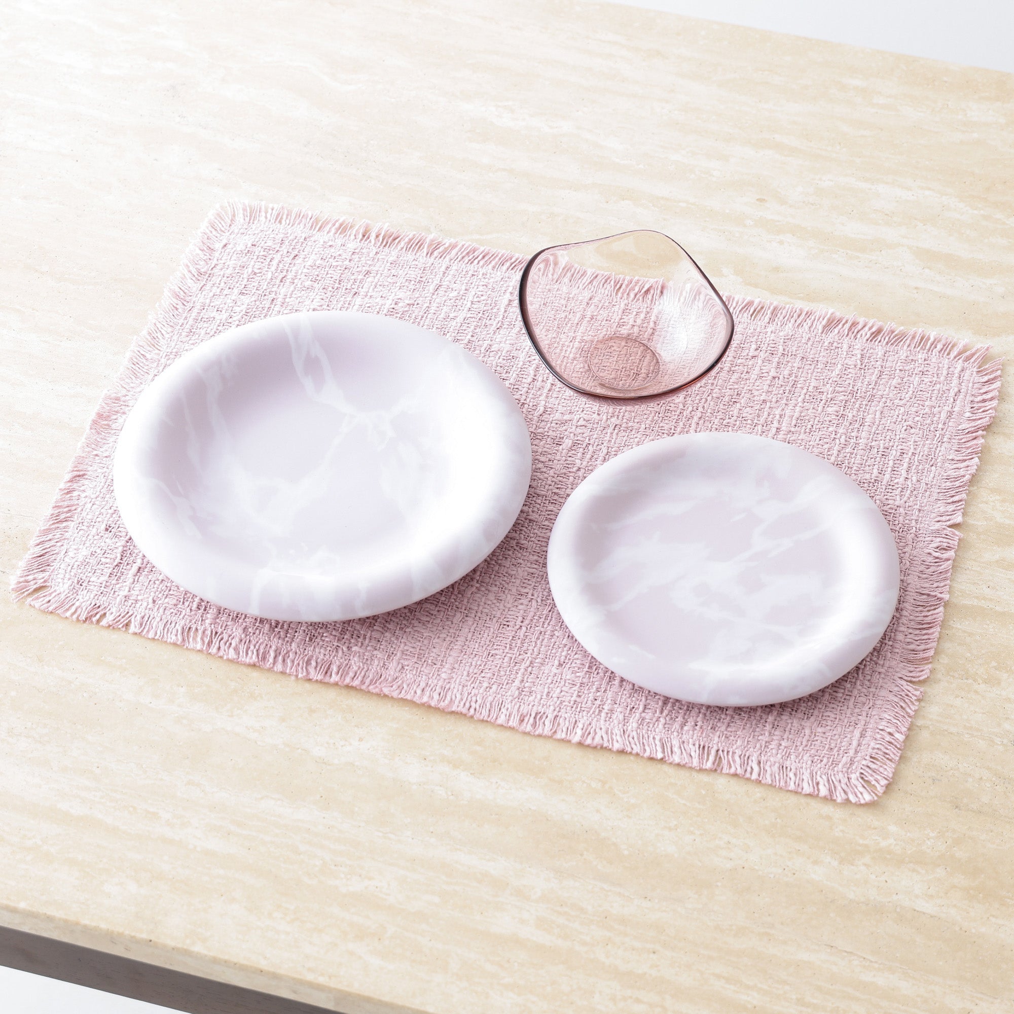 トレンドのバイオフィリックデザイン(自然を取り入れたデザイン)のディーププレートです。本物の石に色々な模様があるように、こちらのシリーズも単なる色違いではなく色々な模様を取り入れて石を表現しました。淵に少し丸みがある形状をつけることでトレンドらしさを加えています。ディーププレートLは、少し浅めのつくりで、プレートとしても、ディーププレートとしても使えるのでパーティーシーンのあらゆる食事に対応。様々なサイズがあるので、お好みで揃えたら、おしゃれなパーティーシーンのコーディネートが完成します。