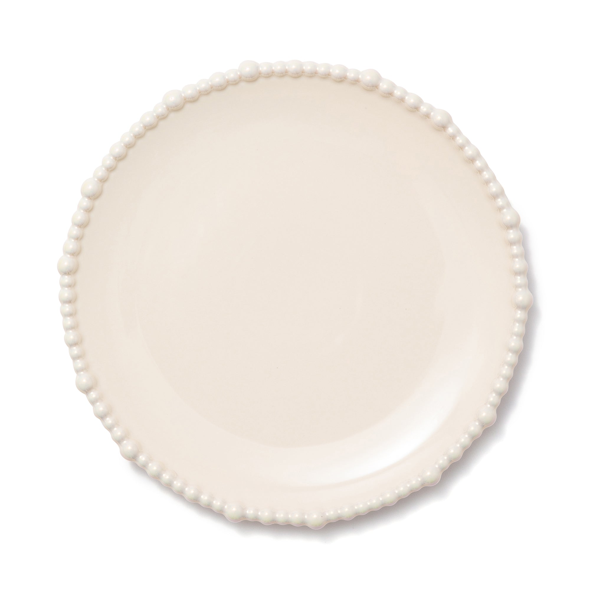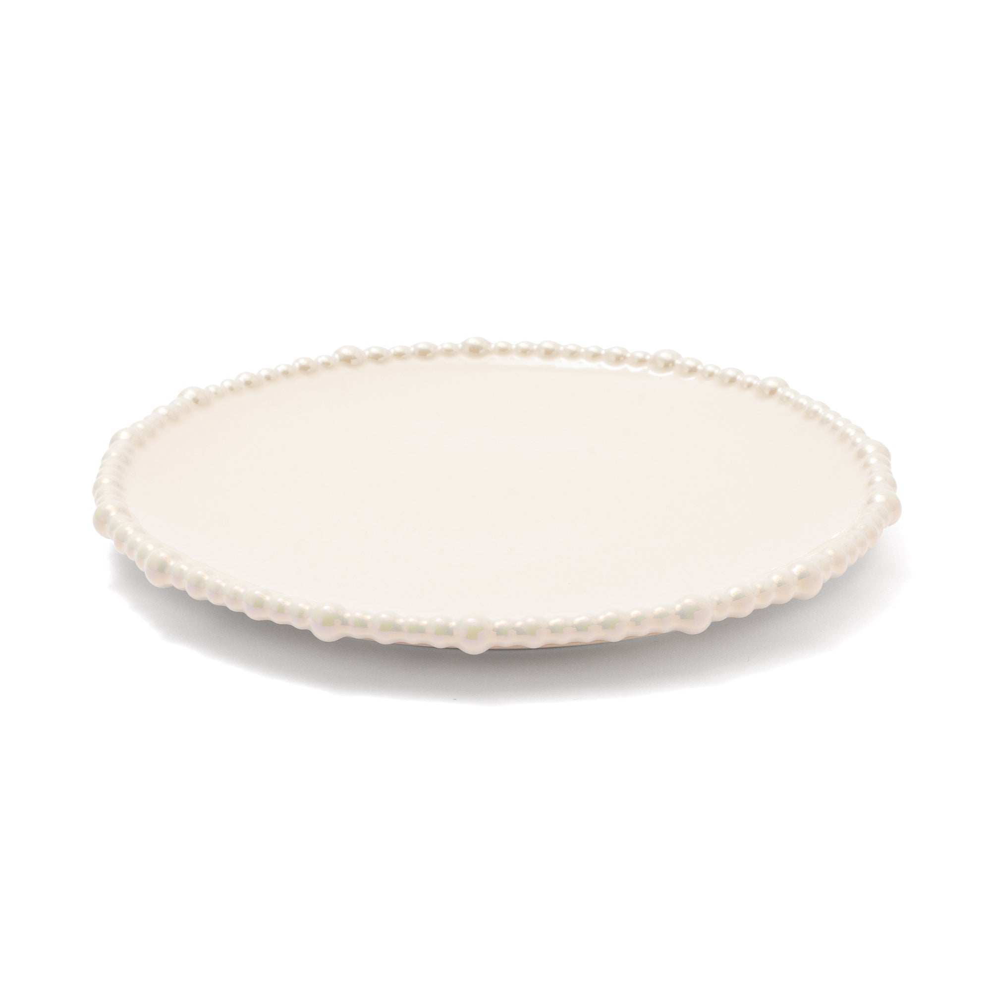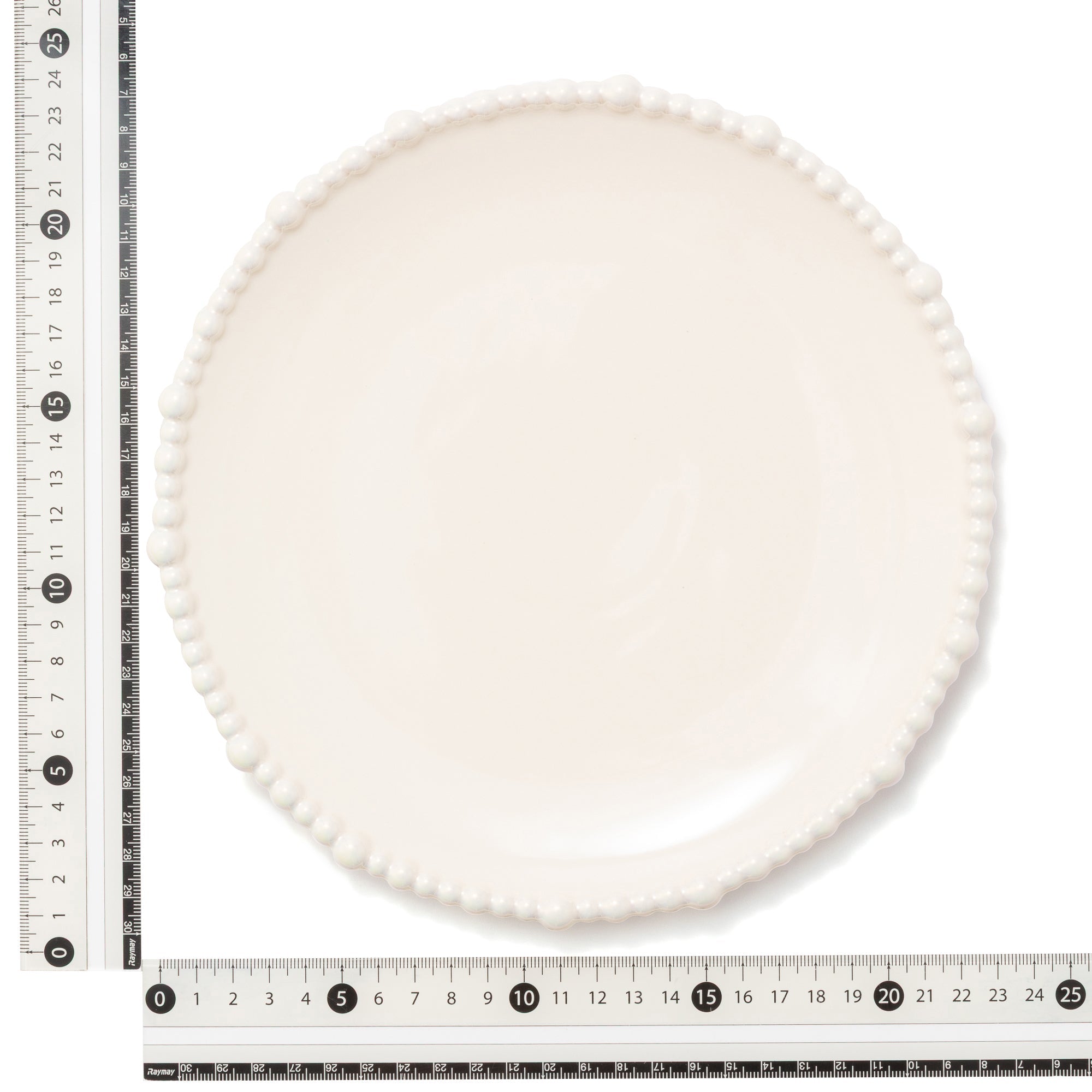 ランダムな大きさのパールをリムにあしらったプレートです。華やかながら日常でも使いやすいデザインです。シェルのセラミック、ガラスシリーズと合わせることで素敵なパーティーコーディネートが完成します。