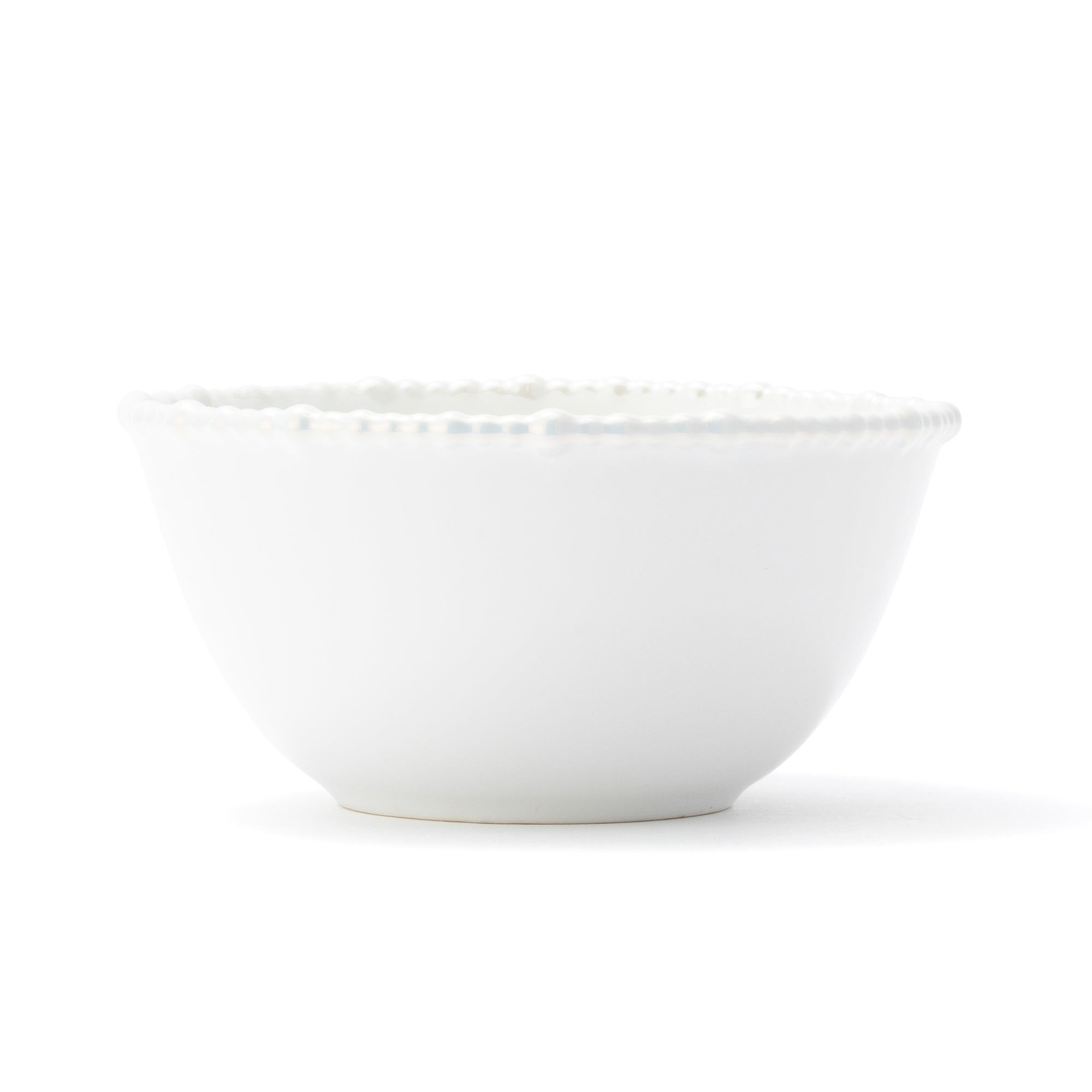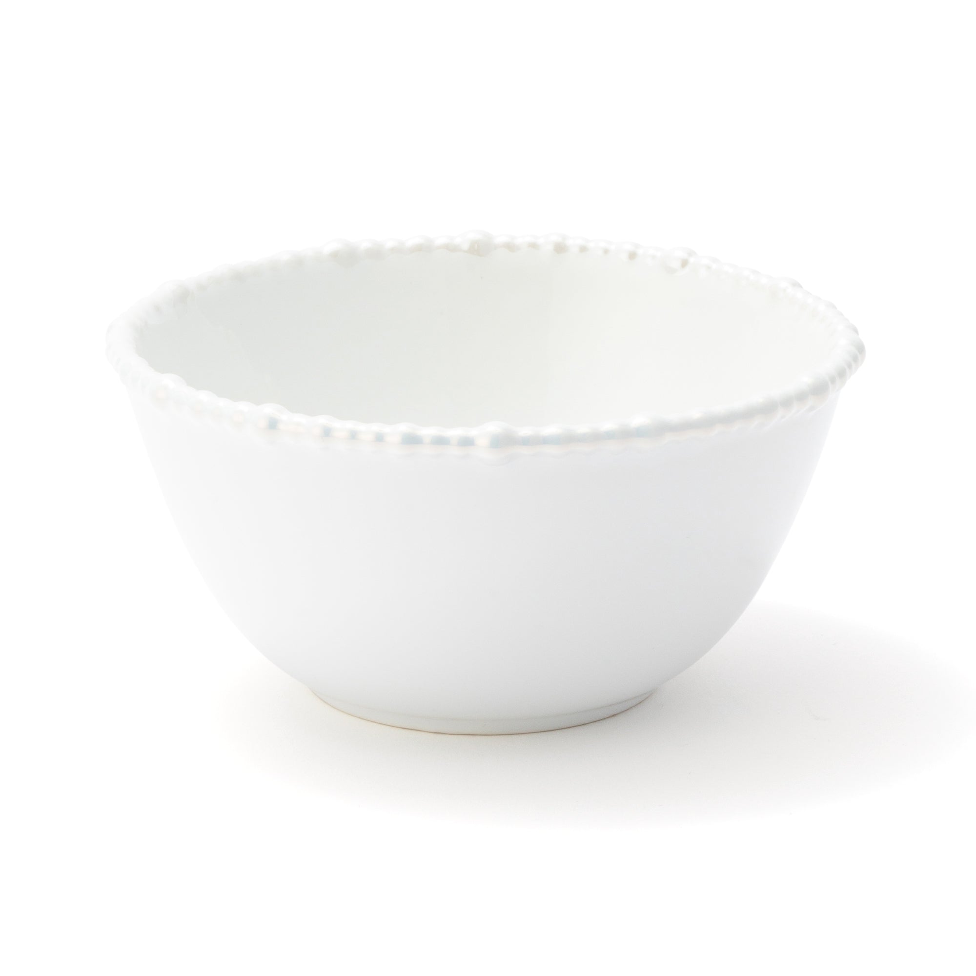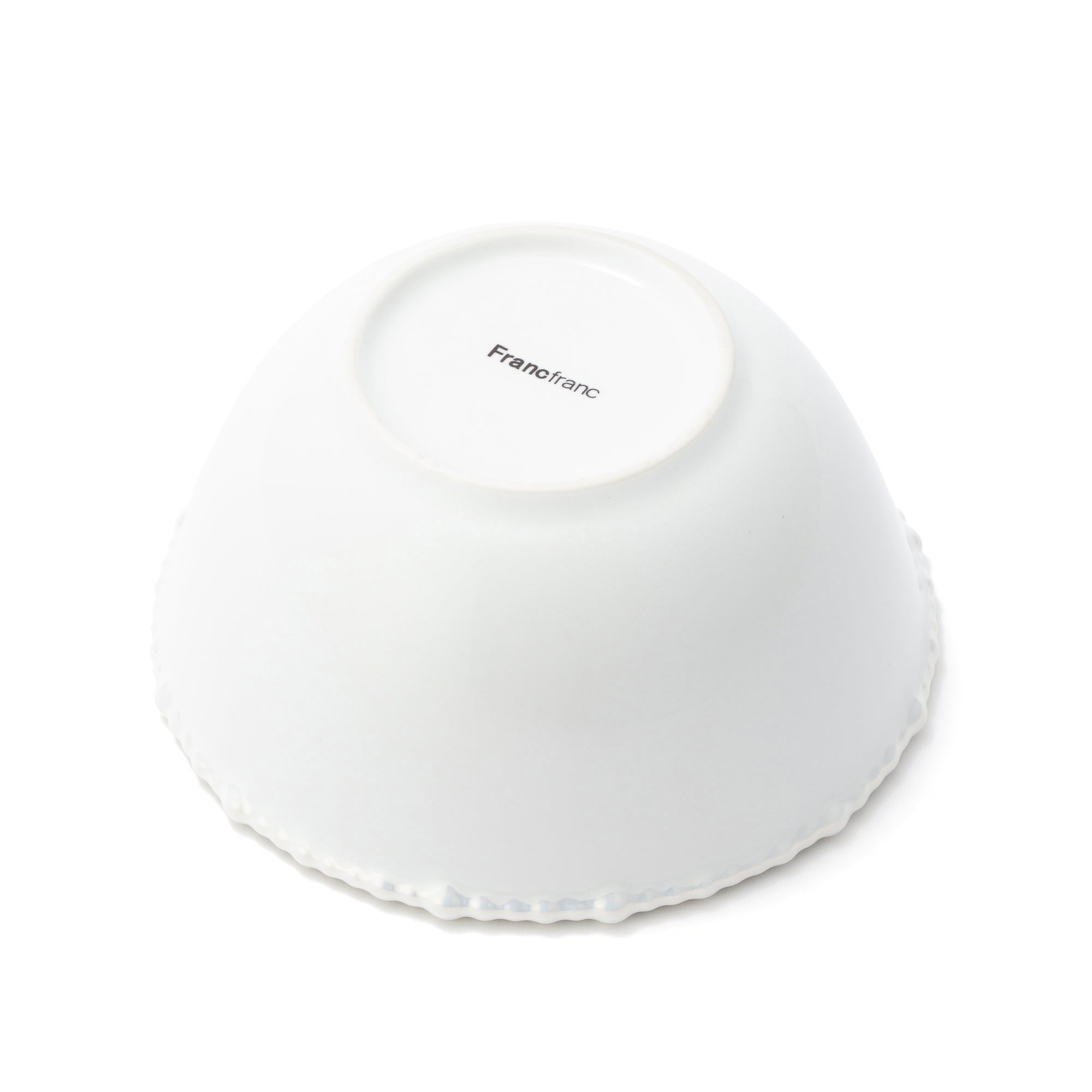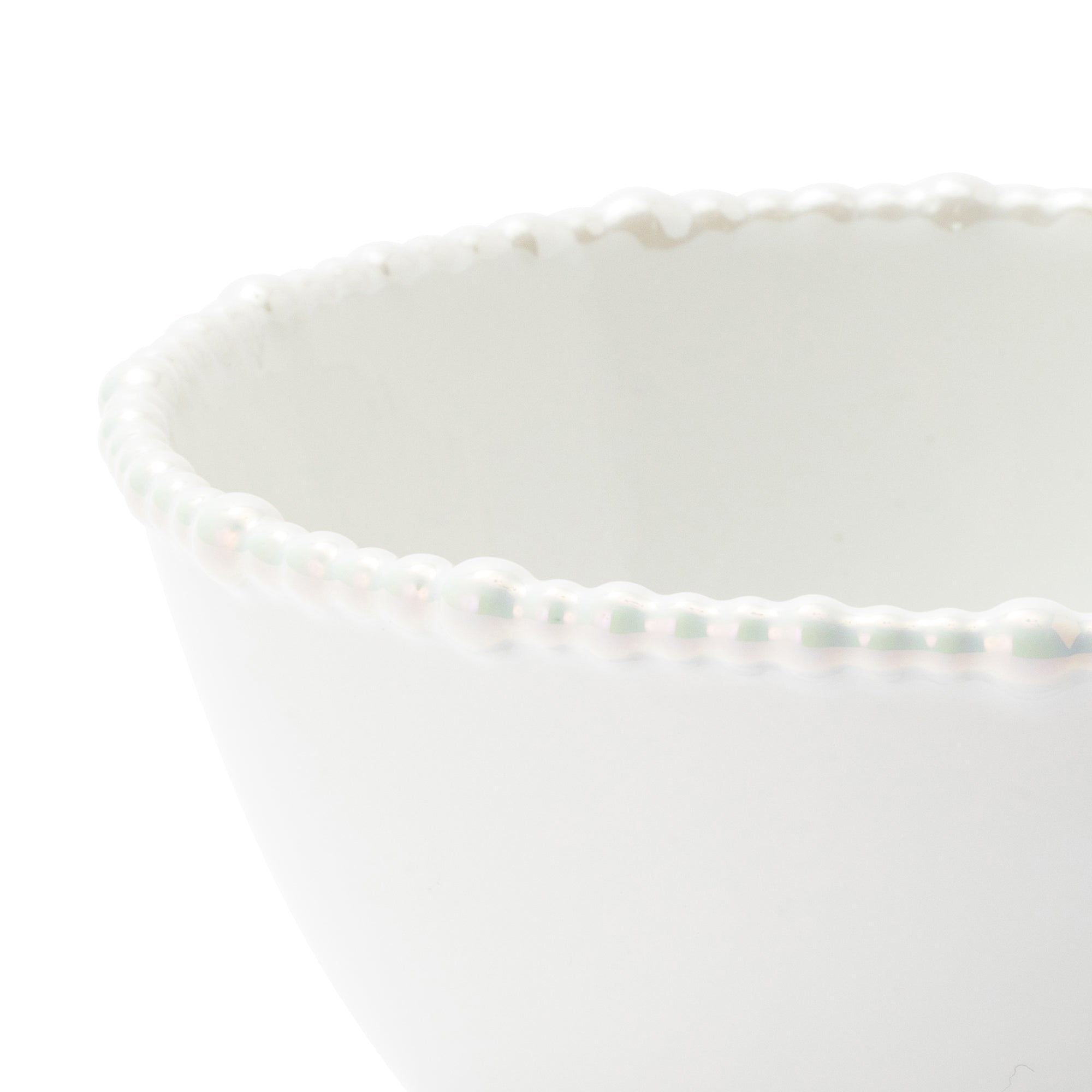 ランダムな大きさのパールをリムにあしらったボウルです。華やかながら日常でも使いやすいデザインです。シェルのセラミック、ガラスシリーズと合わせることで素敵なパーティーコーディネートが完成します。
