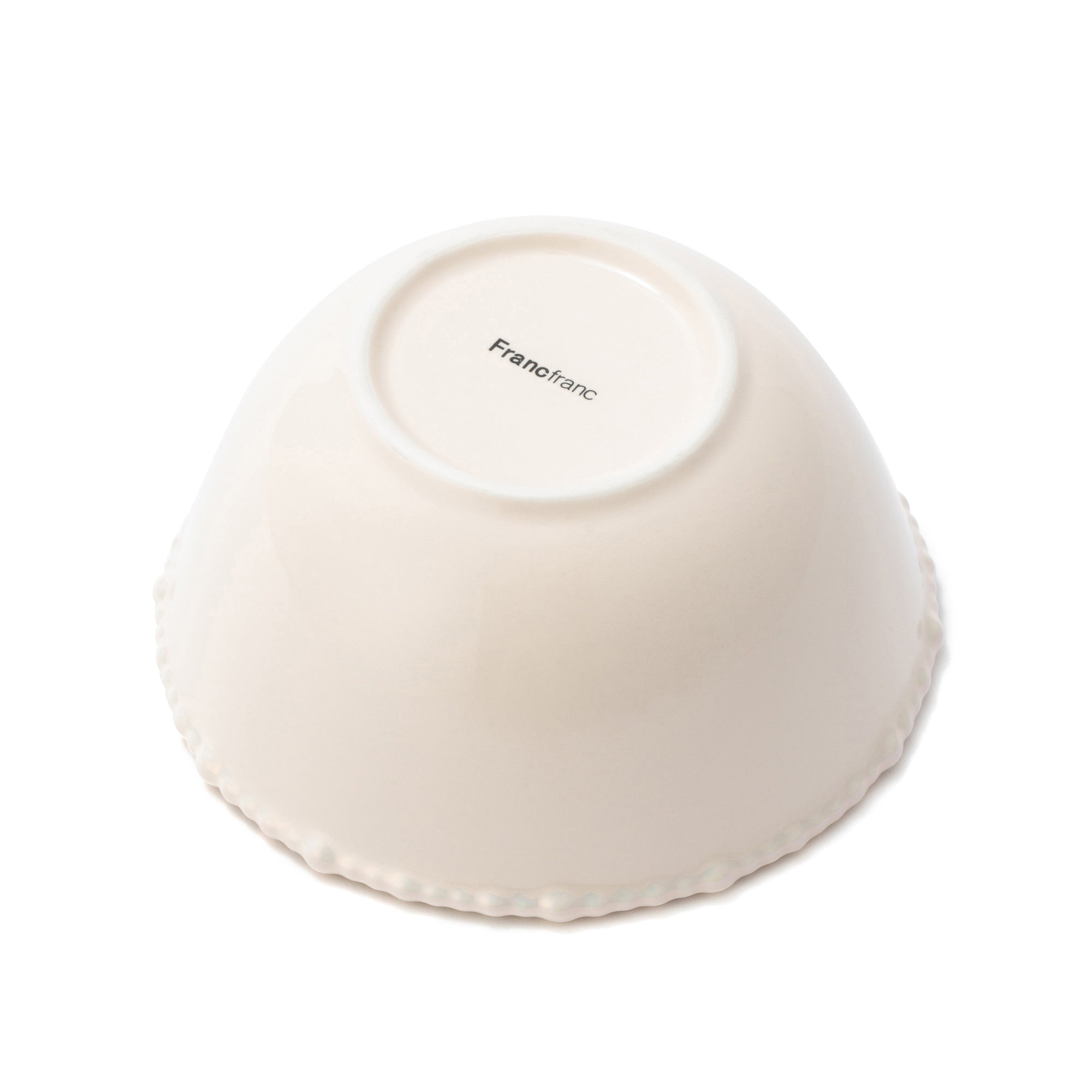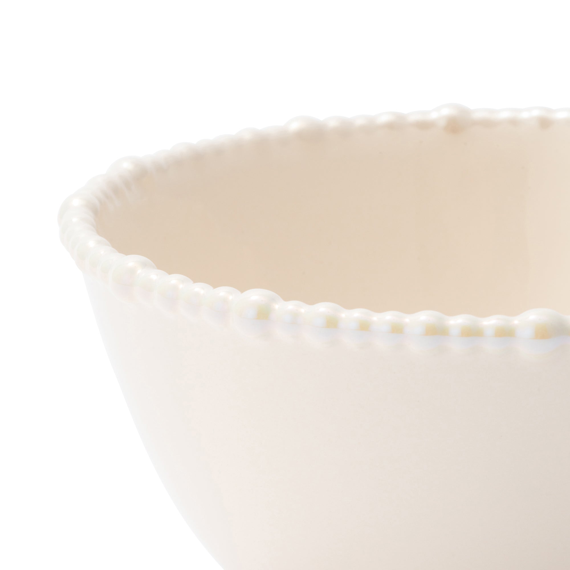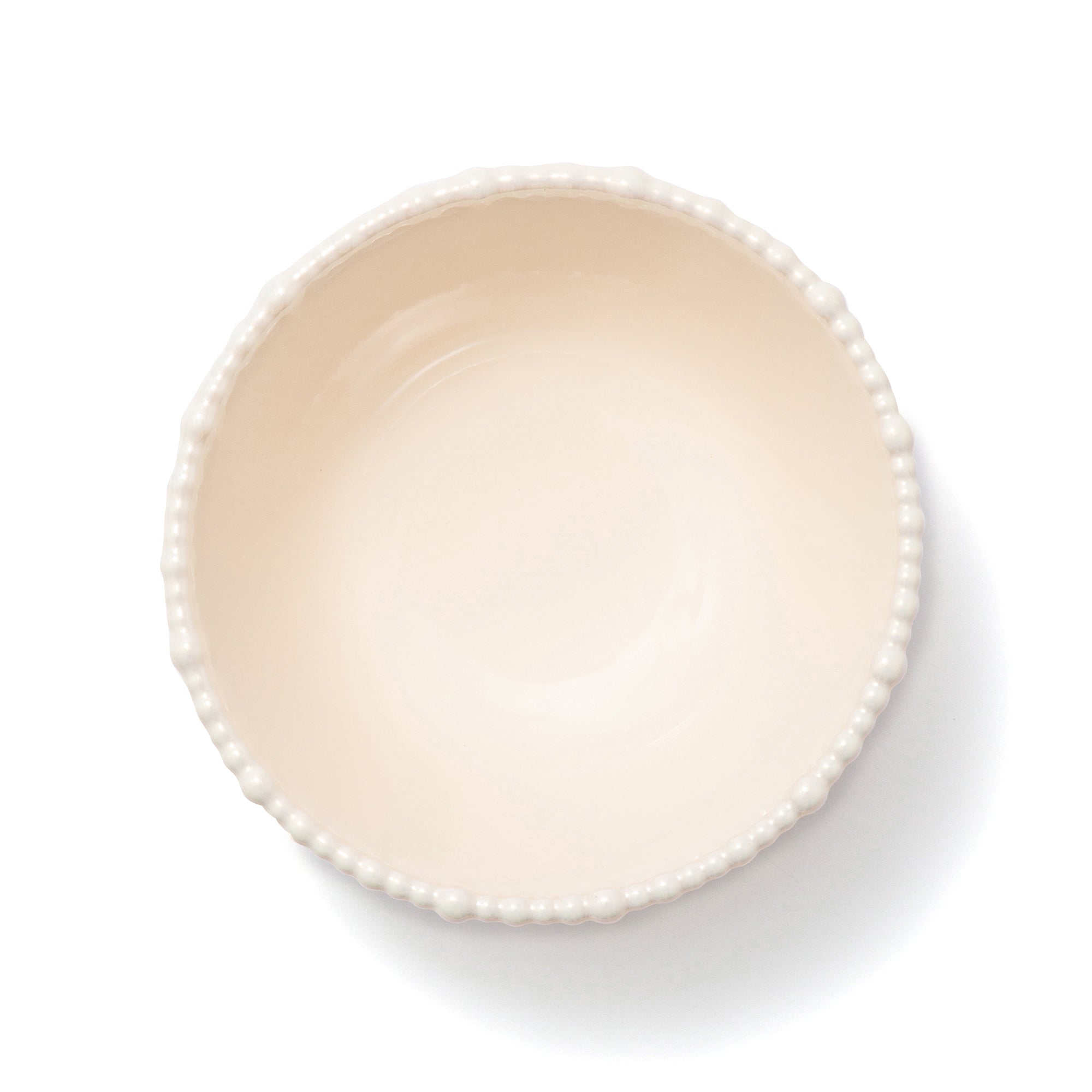 ランダムな大きさのパールをリムにあしらったボウルです。華やかながら日常でも使いやすいデザインです。シェルのセラミック、ガラスシリーズと合わせることで素敵なパーティーコーディネートが完成します。