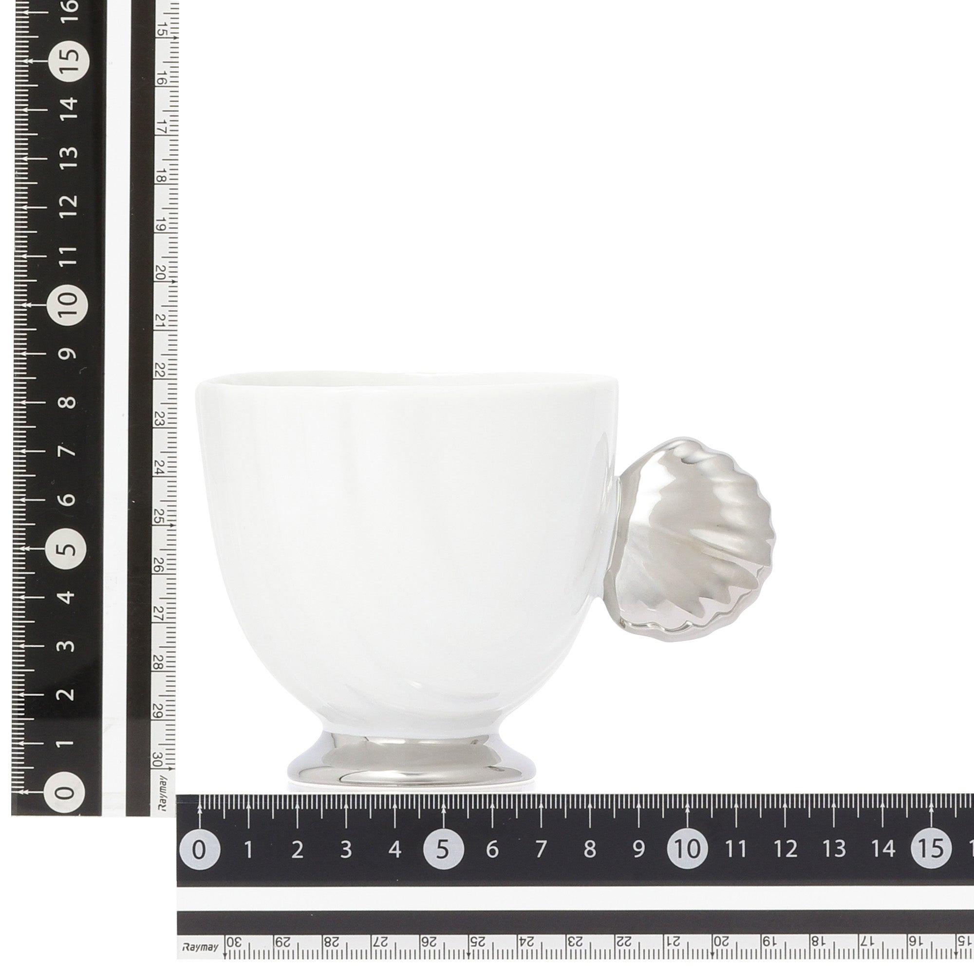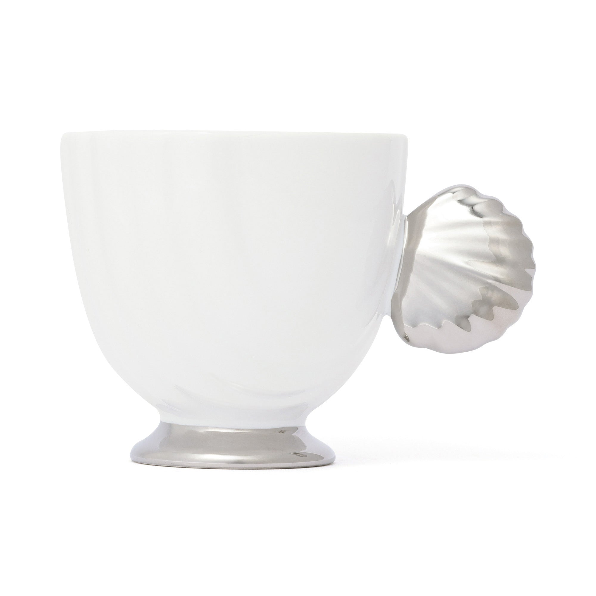 貝のモチーフが取っ手になっているキャッチーなデザインのマグカップです。持ちやすさを考慮し、取っ手は少し奥に傾けた設計にしています。パールのセラミック、シェルガラスシリーズと合わせることで素敵なパーティーコーディネートが完成します。