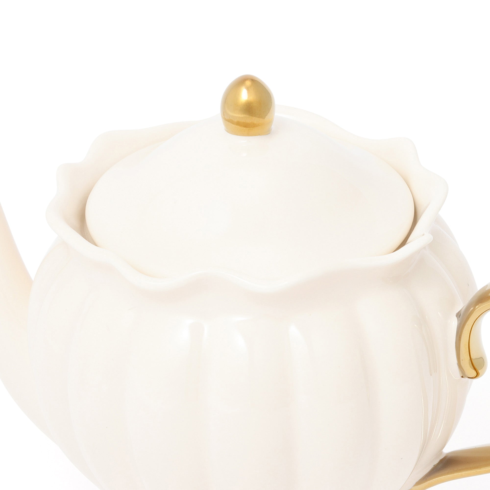 貝と波をモチーフにしたキャッチーなデザインのティーポットです。貝の筋やふくらみを表現した本体に、ところどころ波を表現するあしらいを取り入れました。ハンドルと蓋のつまみのゴールドがほどよくアクセントになったデザインです。パールのセラミック、シェルガラスシリーズと合わせることで素敵なパーティーコーディネートが完成します。