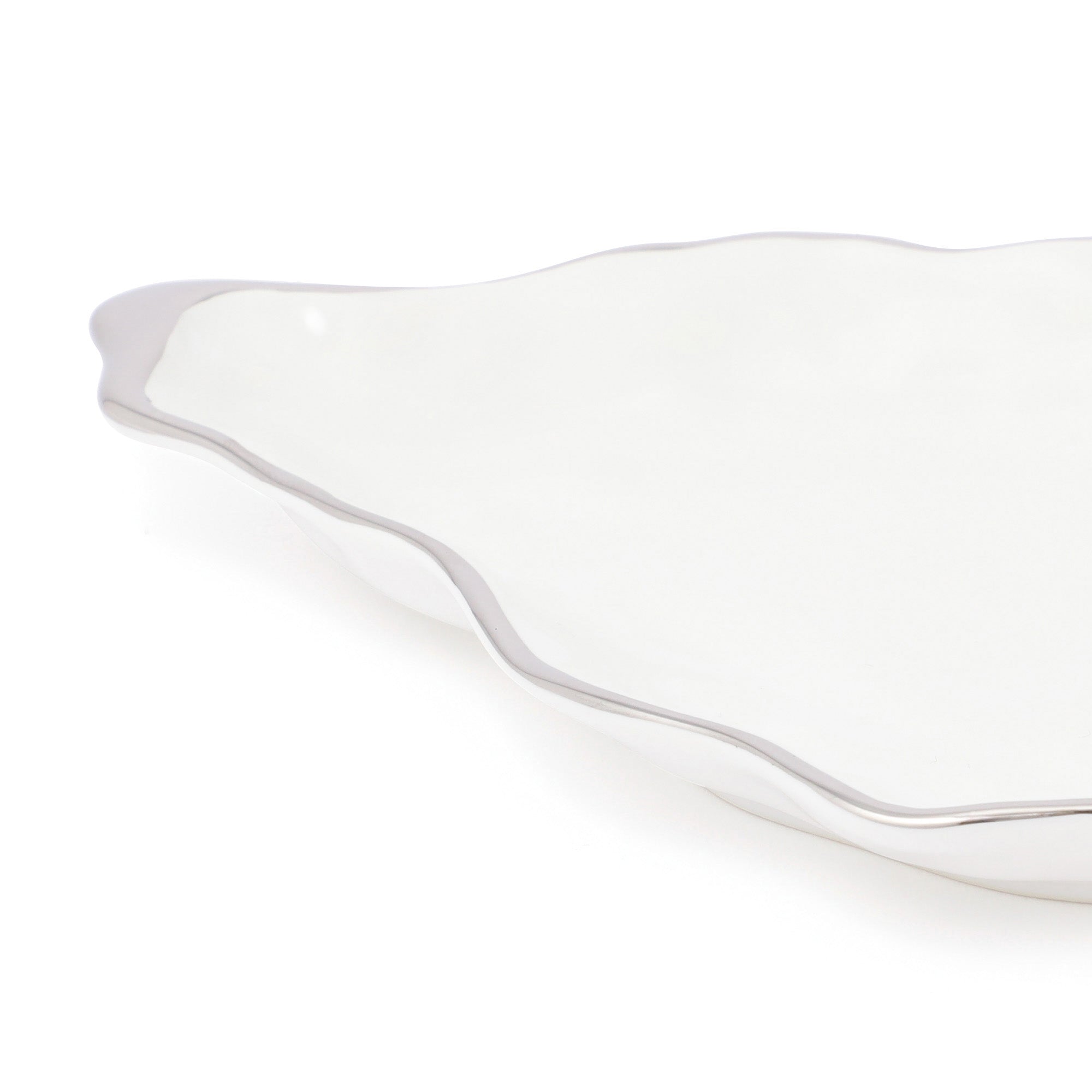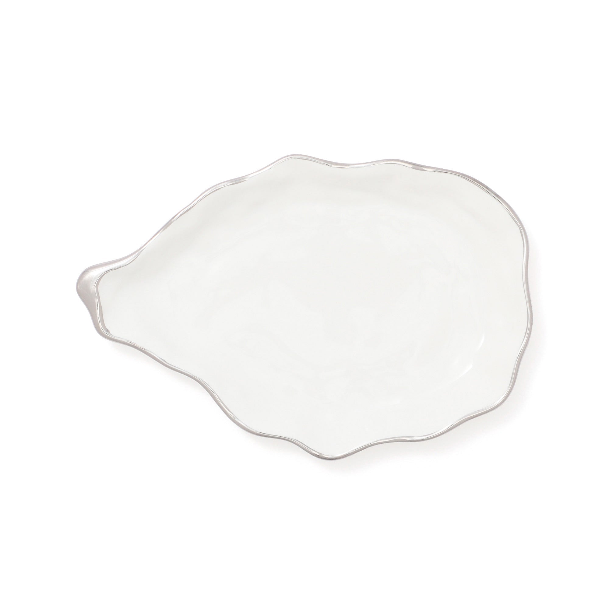 貝をモチーフにしたプレートです。あえて凸凹にすることでリアルな貝を表現。リムにあしらったシルバーがアクセントになったデザインです。ケーキを乗せるのにぴったりなサイズです。パールのセラミック、シェルガラスシリーズと合わせることで素敵なパーティーコーディネートが完成します。