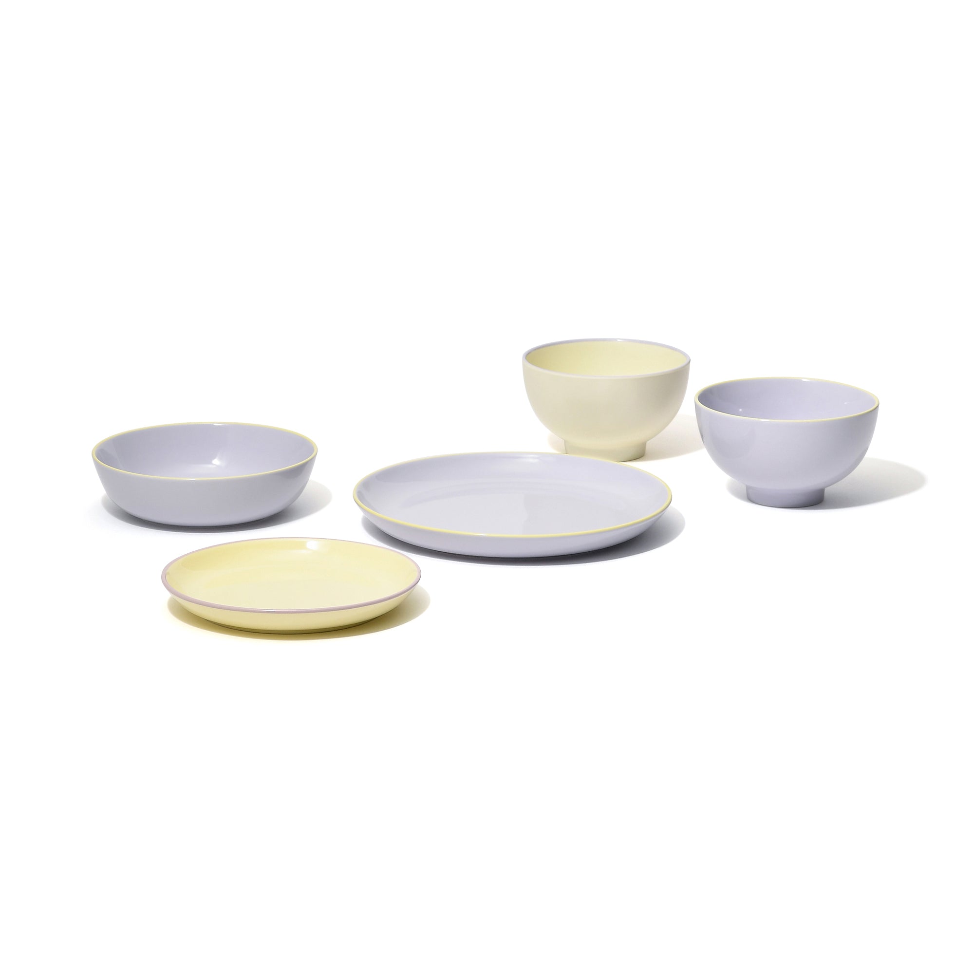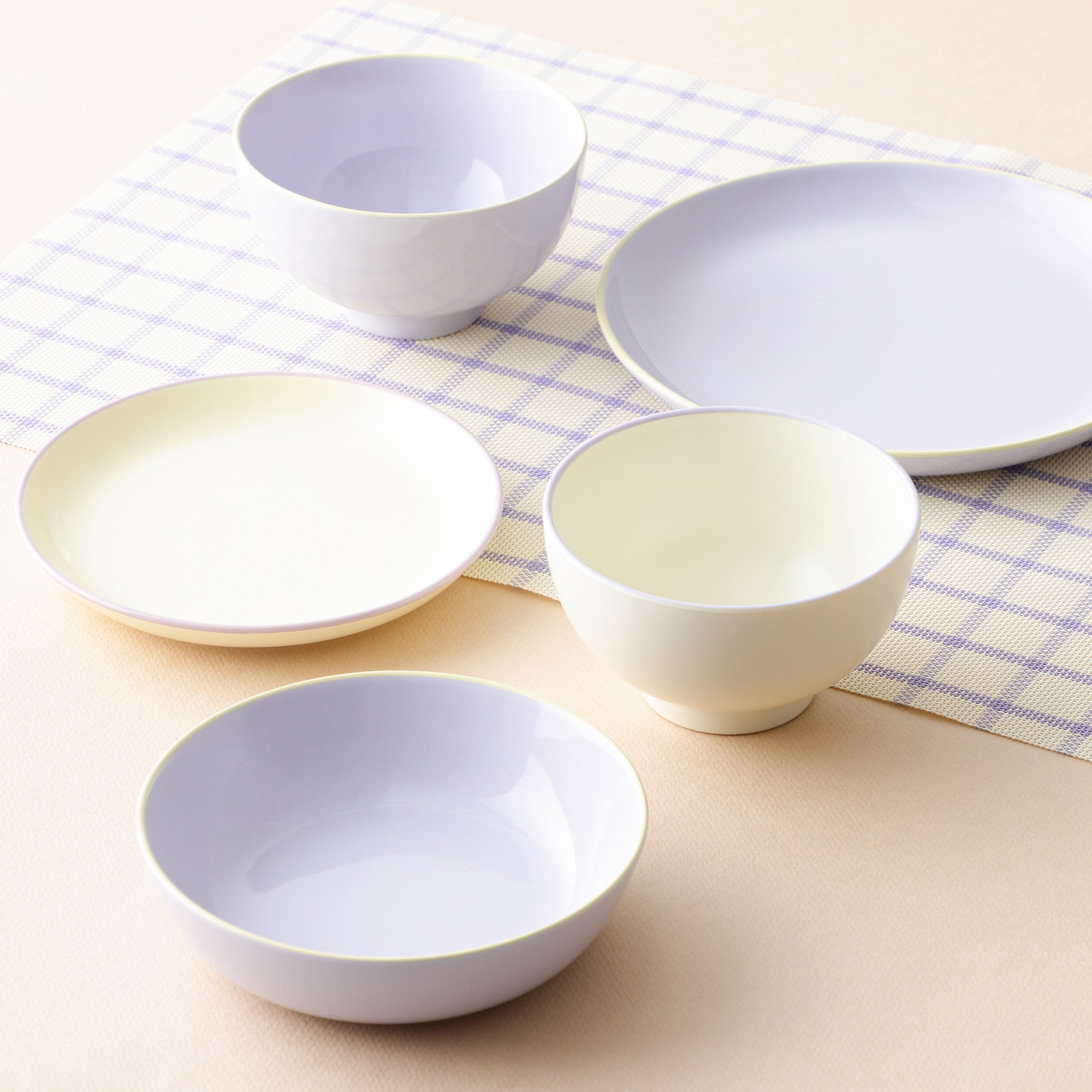 カラフルでかわいいだけじゃなく、普段使いできる食器セットです。これさえ揃えれば、どんな料理にも使えるアイテムが揃ったセットです。炒め物や煮物などの和食や洋食、何にでも使いやすいです。バイカラーでおしゃれ。来客用に色違いを組み合わせると、カラフルで元気が出る楽しい食卓を演出できます。電子レンジや食器洗浄機もOKだから気兼ねなく普段使いできます。【セット内容】・茶碗×1・汁椀(樹脂製)×1・プレートM×1・プレートS×1・ボウルS×1