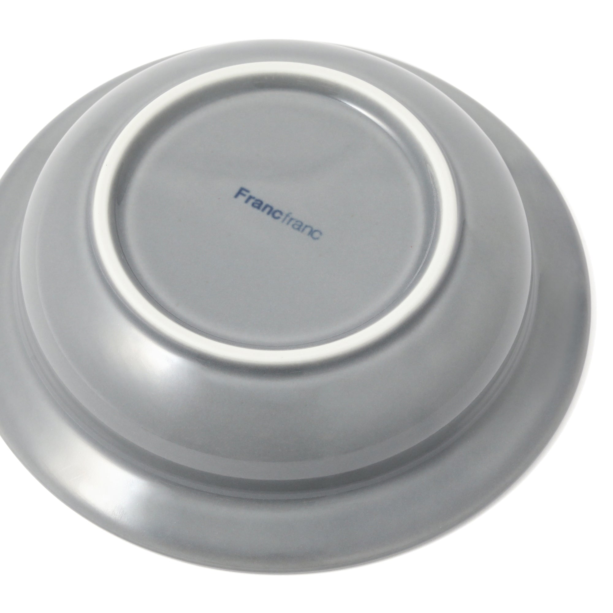 最後のひと口もストレスなくすくえるようにデザインされたボウル。ふちの形状にこだわり、最後まで美味しくいただける一枚です。スプーンやフォークで料理の最後の一口まですくいやすいように、プレートの縁にはリムを付け、内側のカーブを工夫しています。ほどよい重みをもたせることで、片手ですくっても動きにくい、食べている時も安定感のある形状としてデザイン。大人も子どももすくいやすく、食べこぼしなどの食事の時間のストレスをなくしながらも、ならべるとおしゃれな洗練されたデザインのテーブルウェアシリーズです。「ボウル M」は、サラダだけではなく取り皿でも大活躍できるサイズです。裏にはFrancfrancのロゴが印字されています。