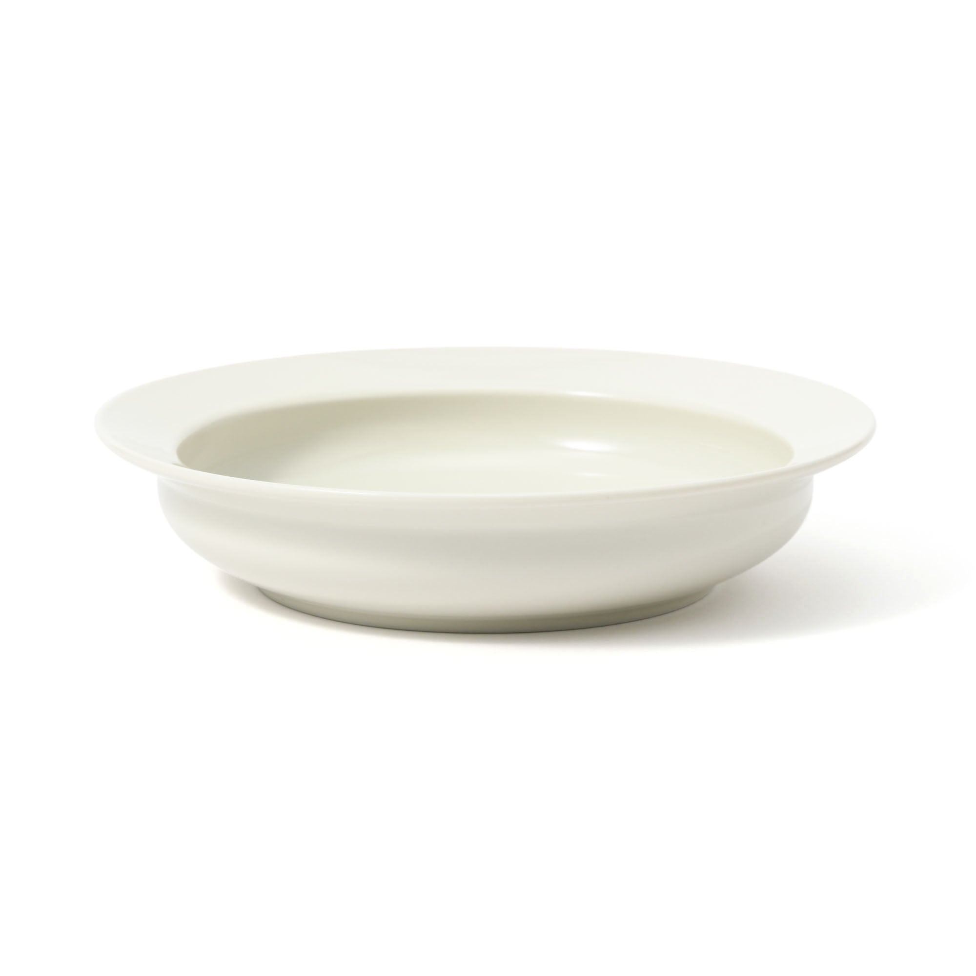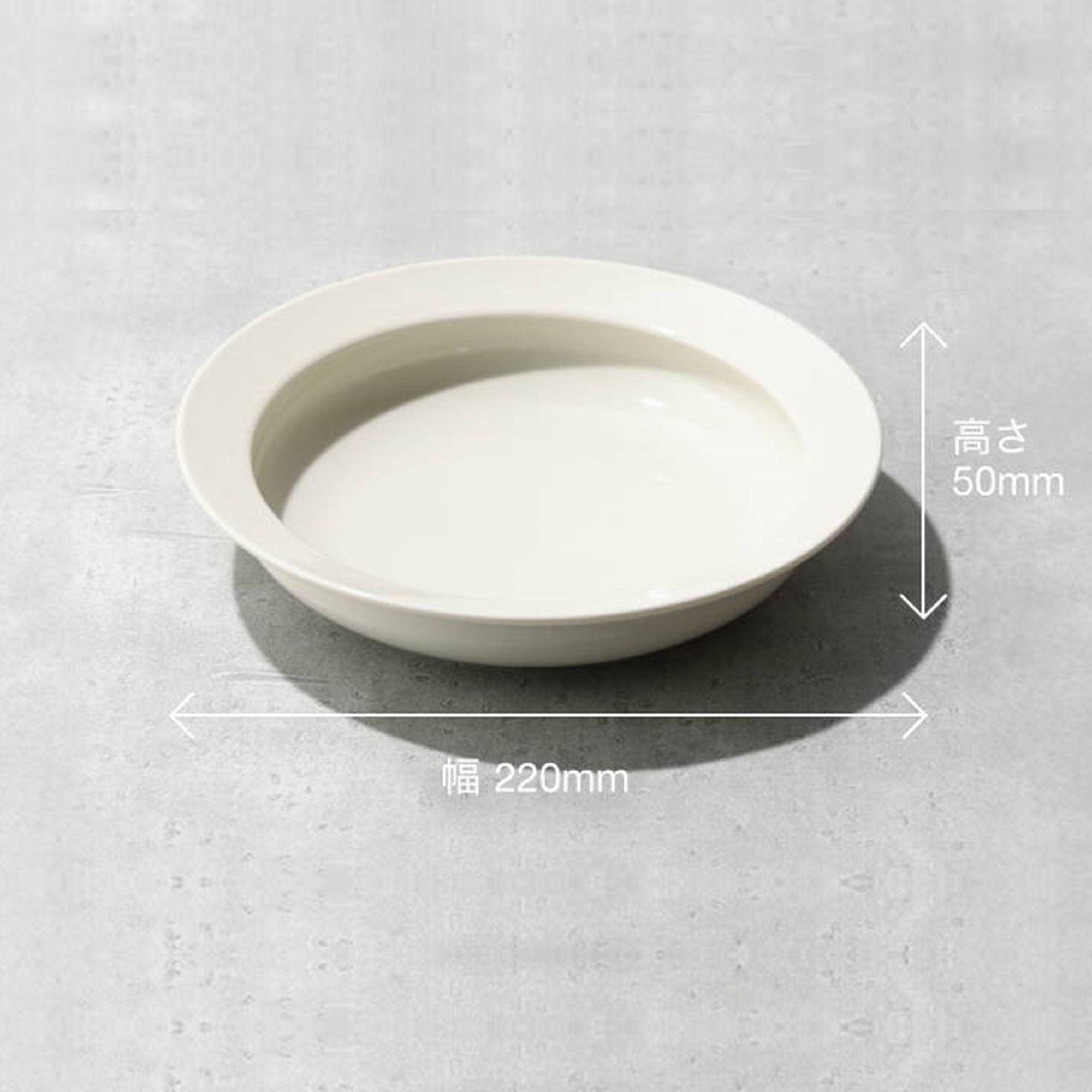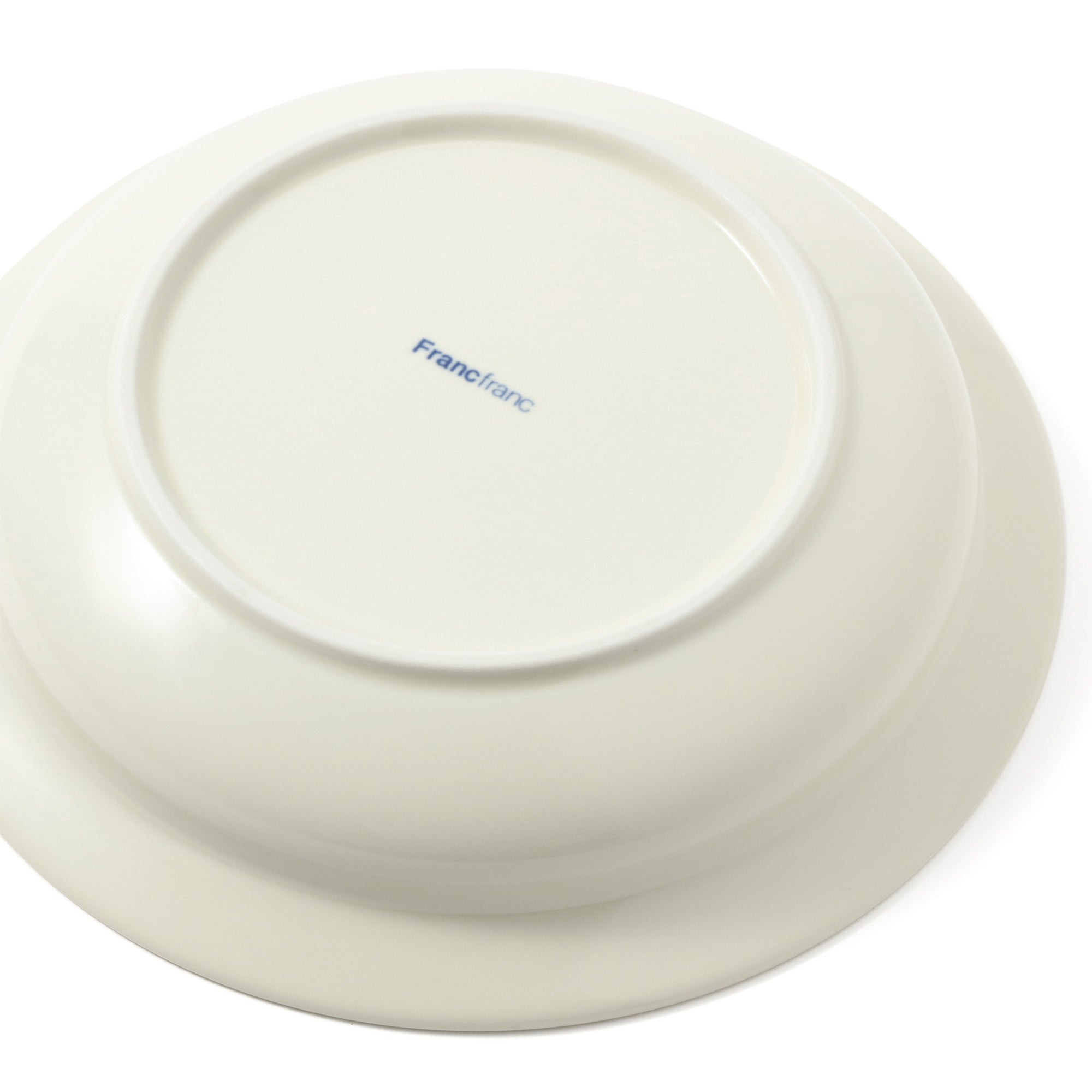 最後のひと口もストレスなくすくえるようにデザインされたボウル。ふちの形状にこだわり、最後まで美味しくいただける一枚です。スプーンやフォークで料理の最後の一口まですくいやすいように、プレートの縁にはリムを付け、内側のカーブを工夫しています。ほどよい重みをもたせることで、片手ですくっても動きにくい、食べている時も安定感のある形状としてデザイン。大人も子どももすくいやすく、食べこぼしなどの食事の時間のストレスをなくしながらも、ならべるとおしゃれな洗練されたデザインのテーブルウェアシリーズです。「深皿」は、カレーやチャーハン、パスタ、スープなどにぴったりです。裏にはFrancfrancのロゴが印字されています。