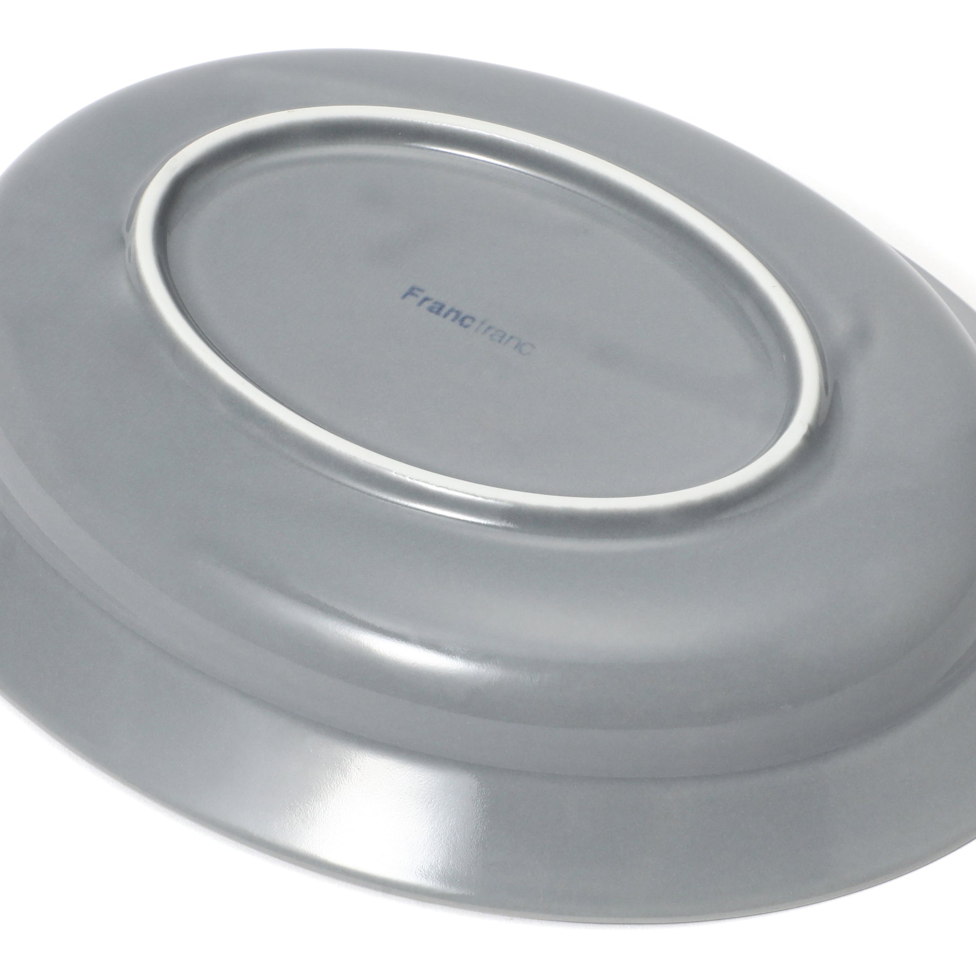 最後のひと口もストレスなくすくえるようにデザインされたボウル。ふちの形状にこだわり、最後まで美味しくいただける一枚です。スプーンやフォークで料理の最後の一口まですくいやすいように、プレートの縁にはリムを付け、内側のカーブを工夫しています。ほどよい重みをもたせることで、片手ですくっても動きにくい、食べている時も安定感のある形状としてデザイン。大人も子どももすくいやすく、食べこぼしなどの食事の時間のストレスをなくしながらも、ならべるとおしゃれな洗練されたデザインのテーブルウェアシリーズです。「オーバルプレート」は、カレーやチャーハン、パスタ、スープなどにぴったりです。裏にはFrancfrancのロゴが印字されています。