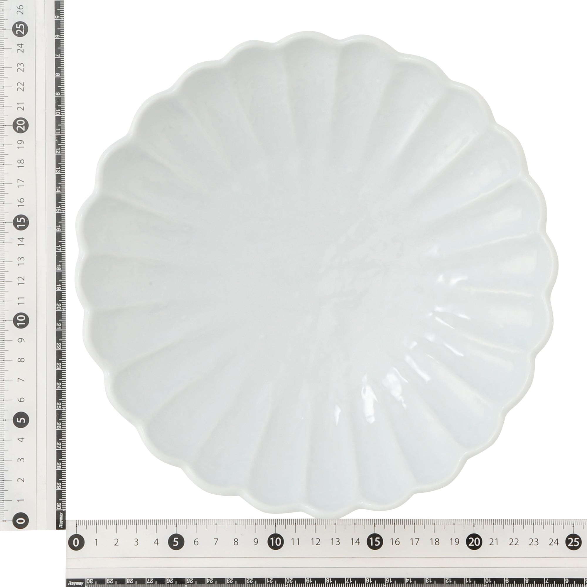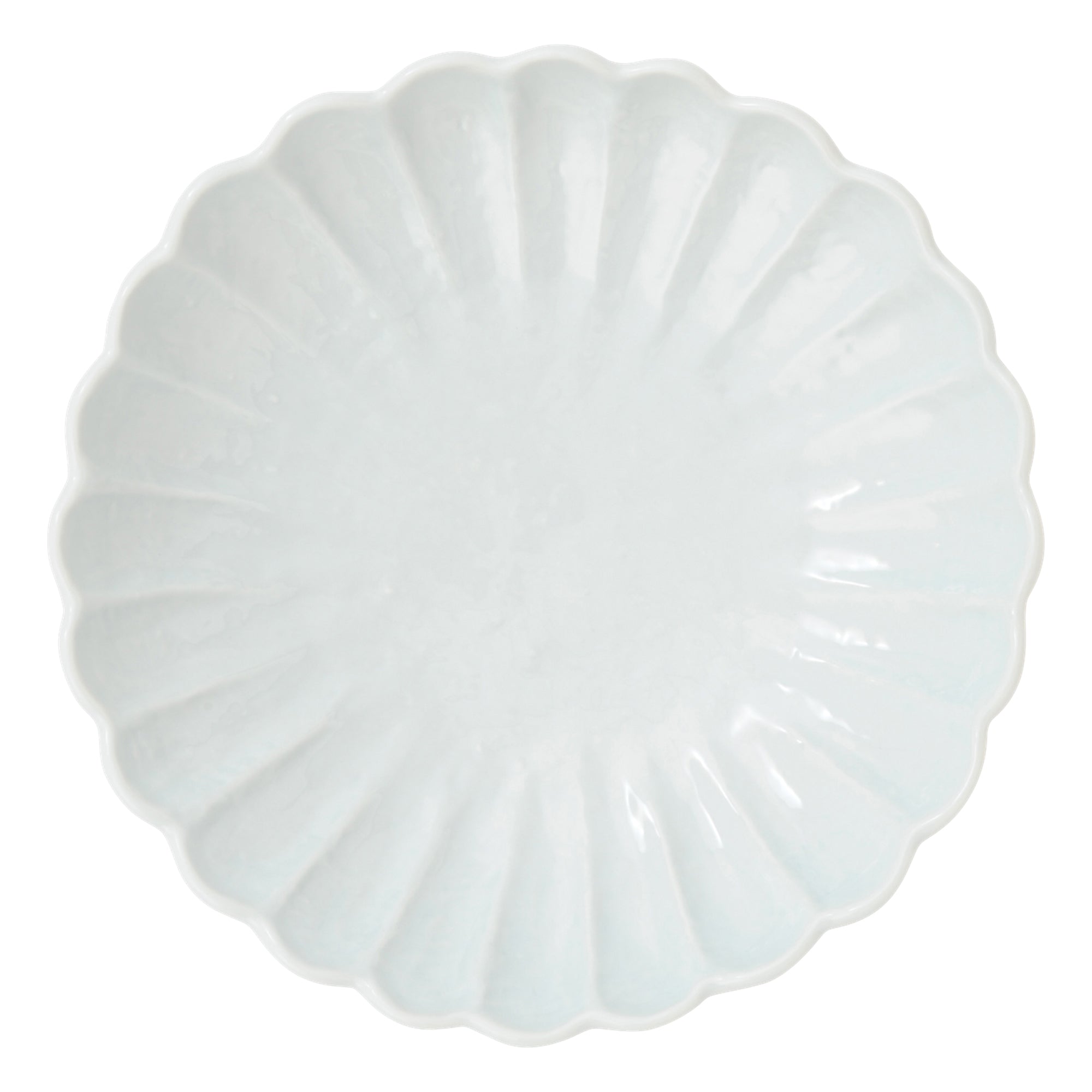 花型のデザインで使いやすいサイズ感の大皿です。清潔感のある青磁の釉薬で、お料理を美味しく引き立ててくれます。