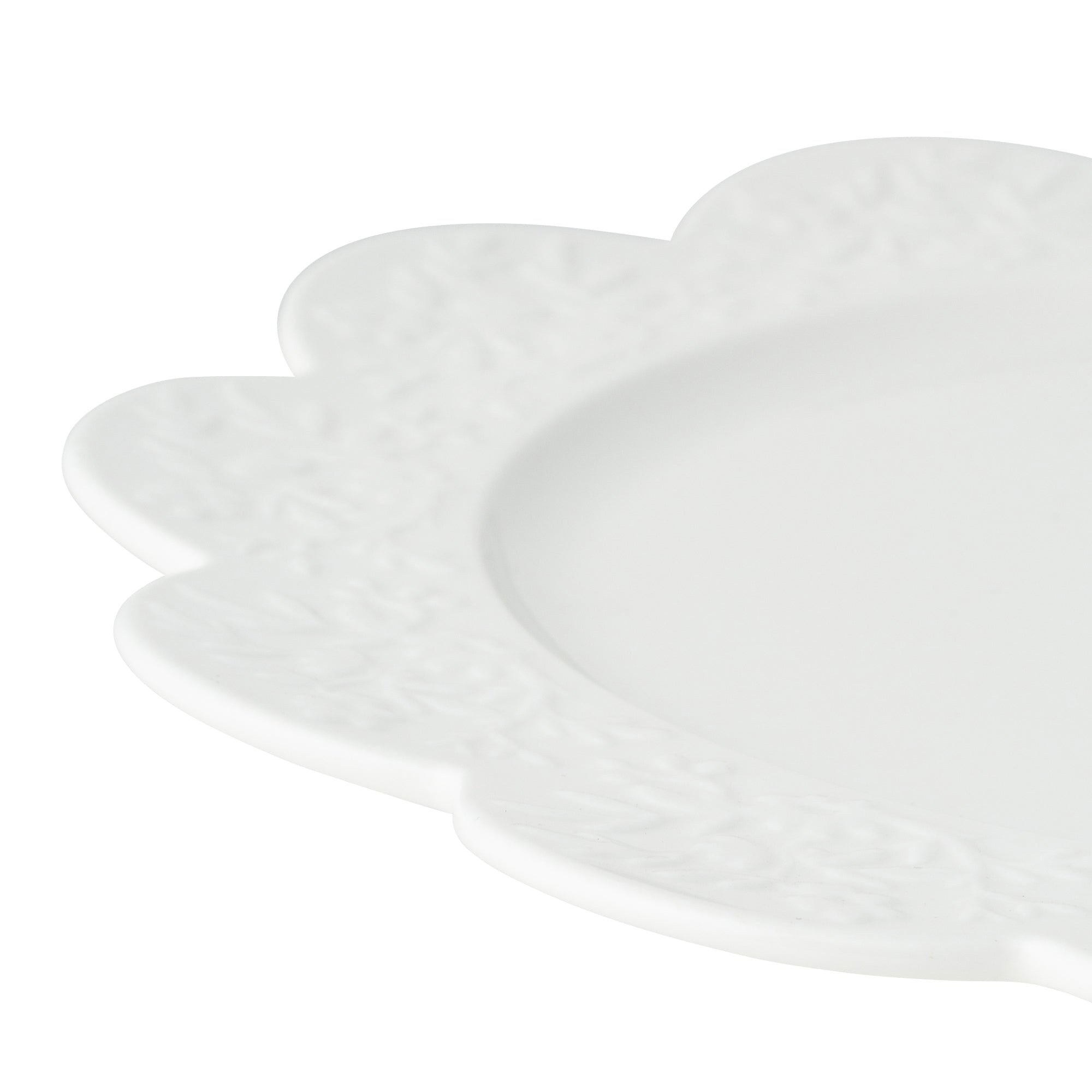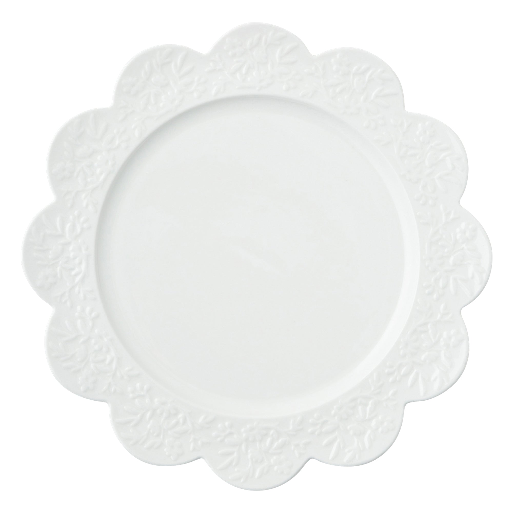 リムのデザインが可憐なプレートです。同じ柄はもちろん、違う柄・形状のものを重ねてお使いいただいても映えるデザインです。シンプルな白のお皿は、どんなジャンルのお料理とも相性抜群でお料理をより美味しそうに見せてくれます。