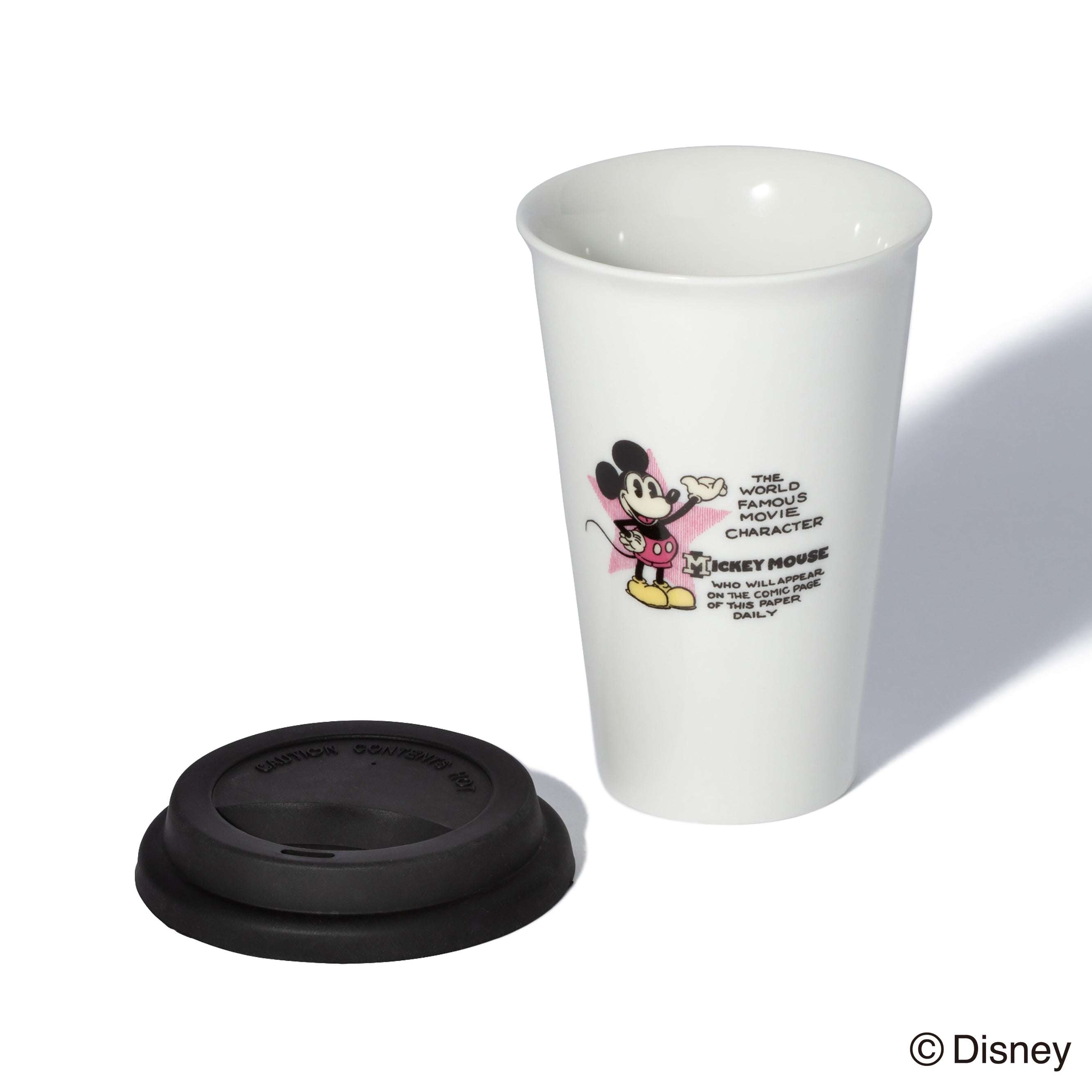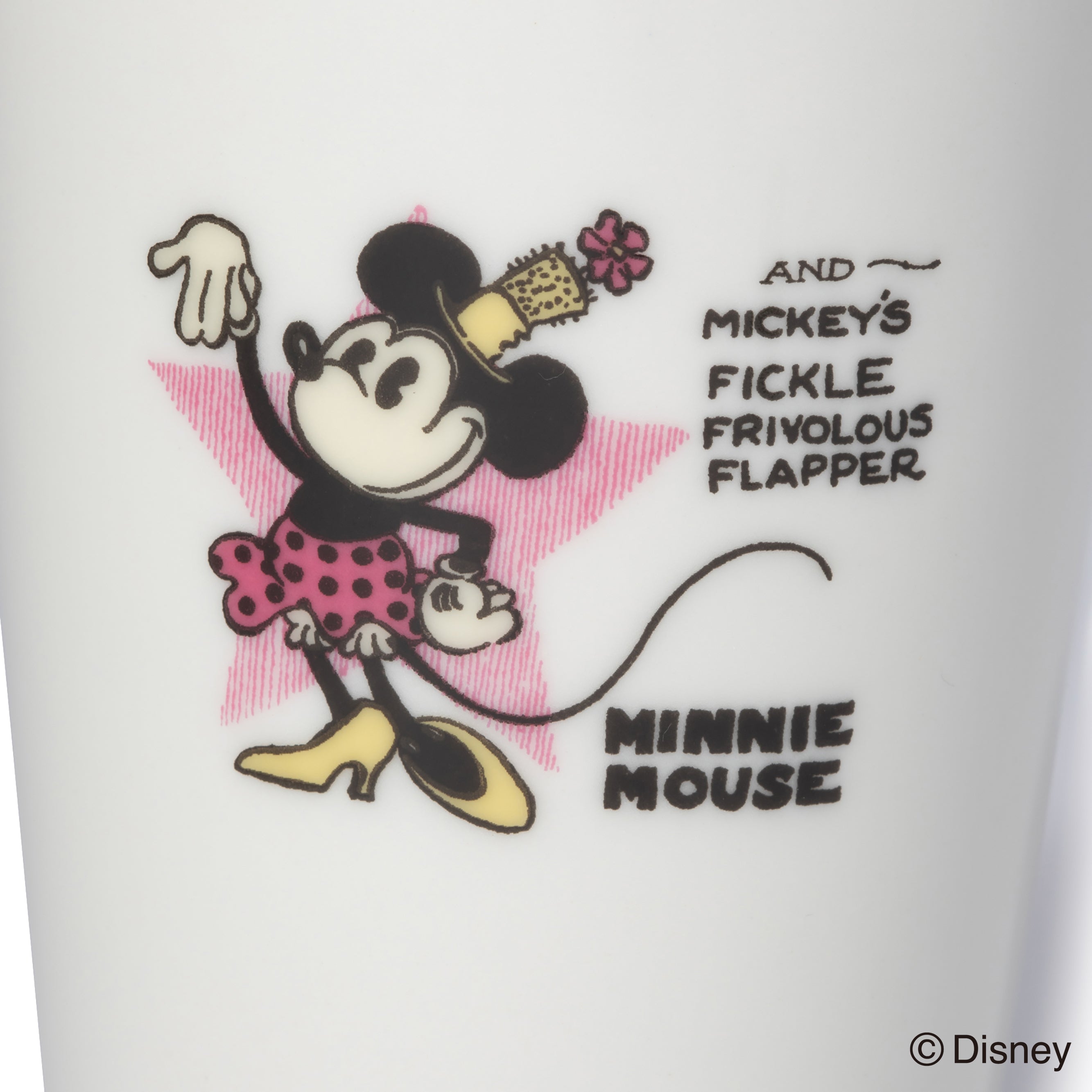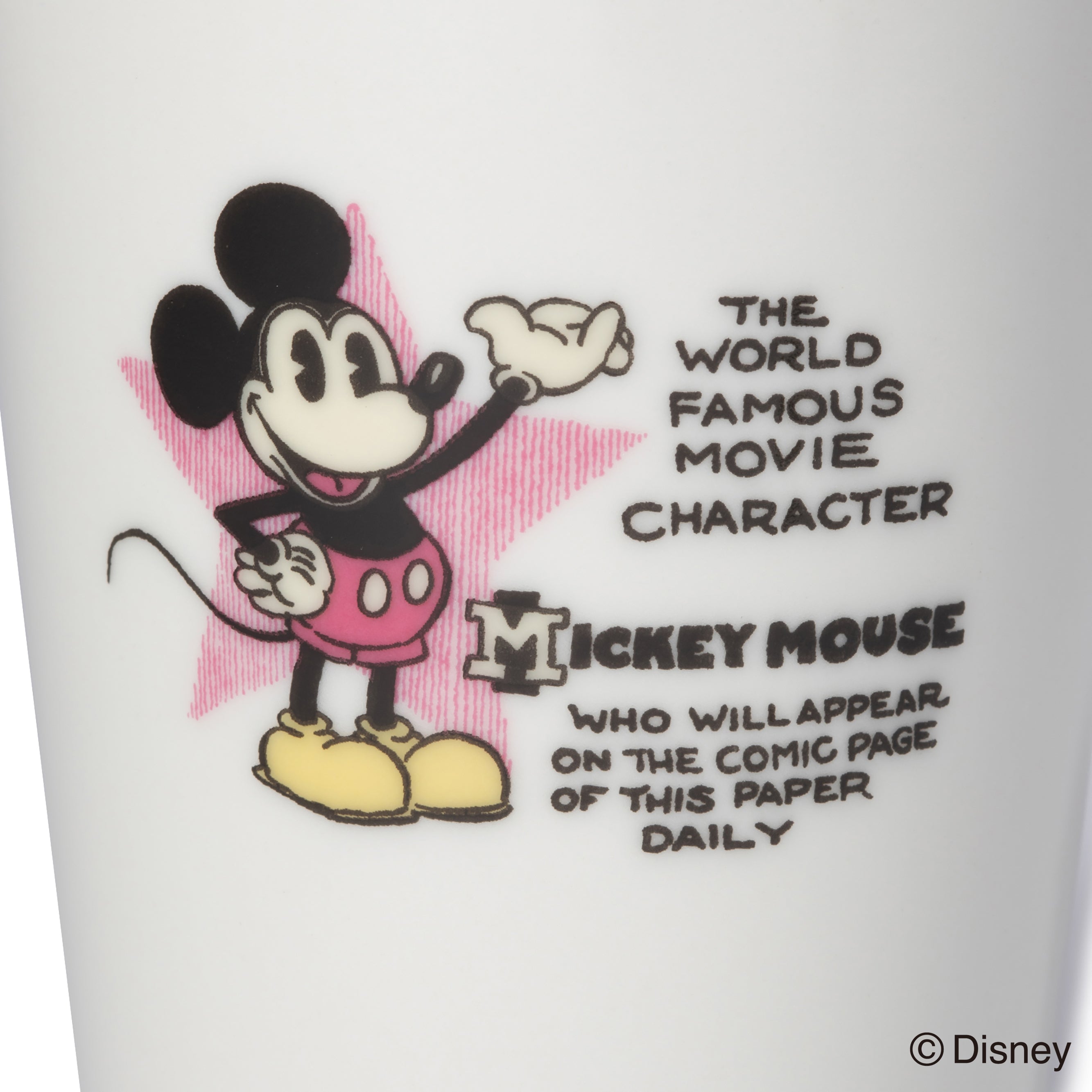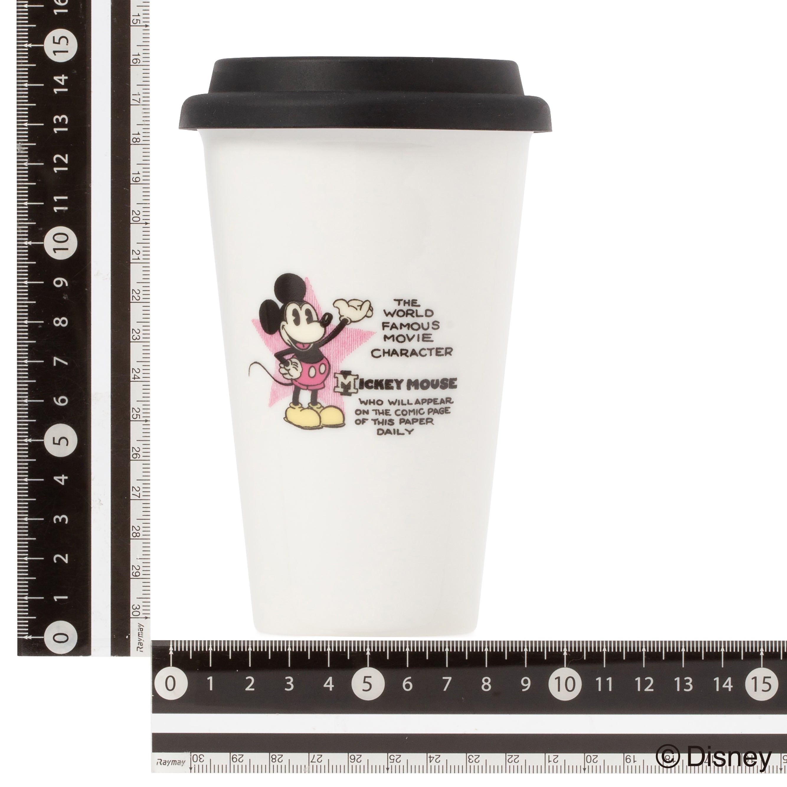 ミッキーとミニーを紹介する漫画のページをデザインした、ダブルウォール(二重構造)のタンブラーです。冷たい飲み物、熱い飲み物が通常のマグに比べ、冷めにくく結露しにくいです。コーヒーショップのカップをイメージした形なので、オフィスやご自宅でもカフェ気分を味わえます。ヴィンテージ風のミッキーたちがワンポイントではいっているので大人っぽく、オフィスでも気兼ねなくお使いいただけます。