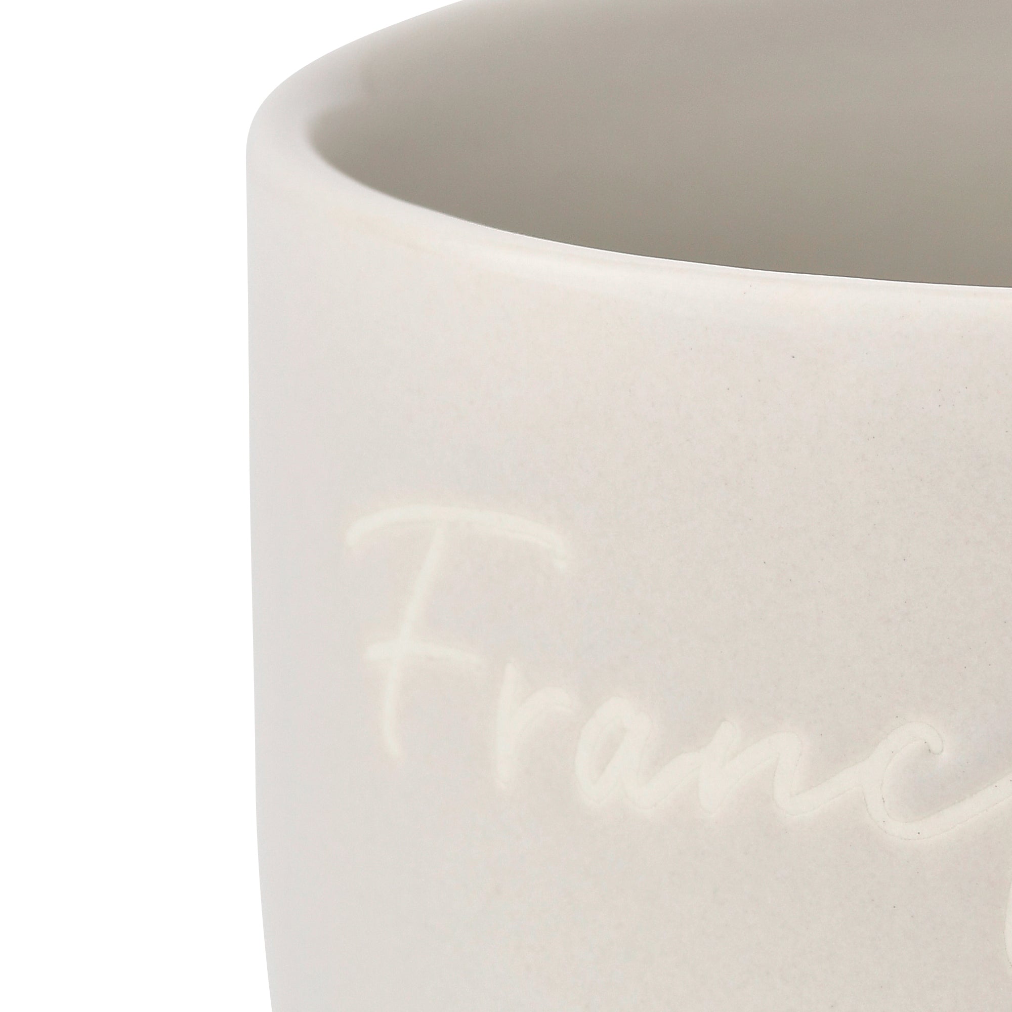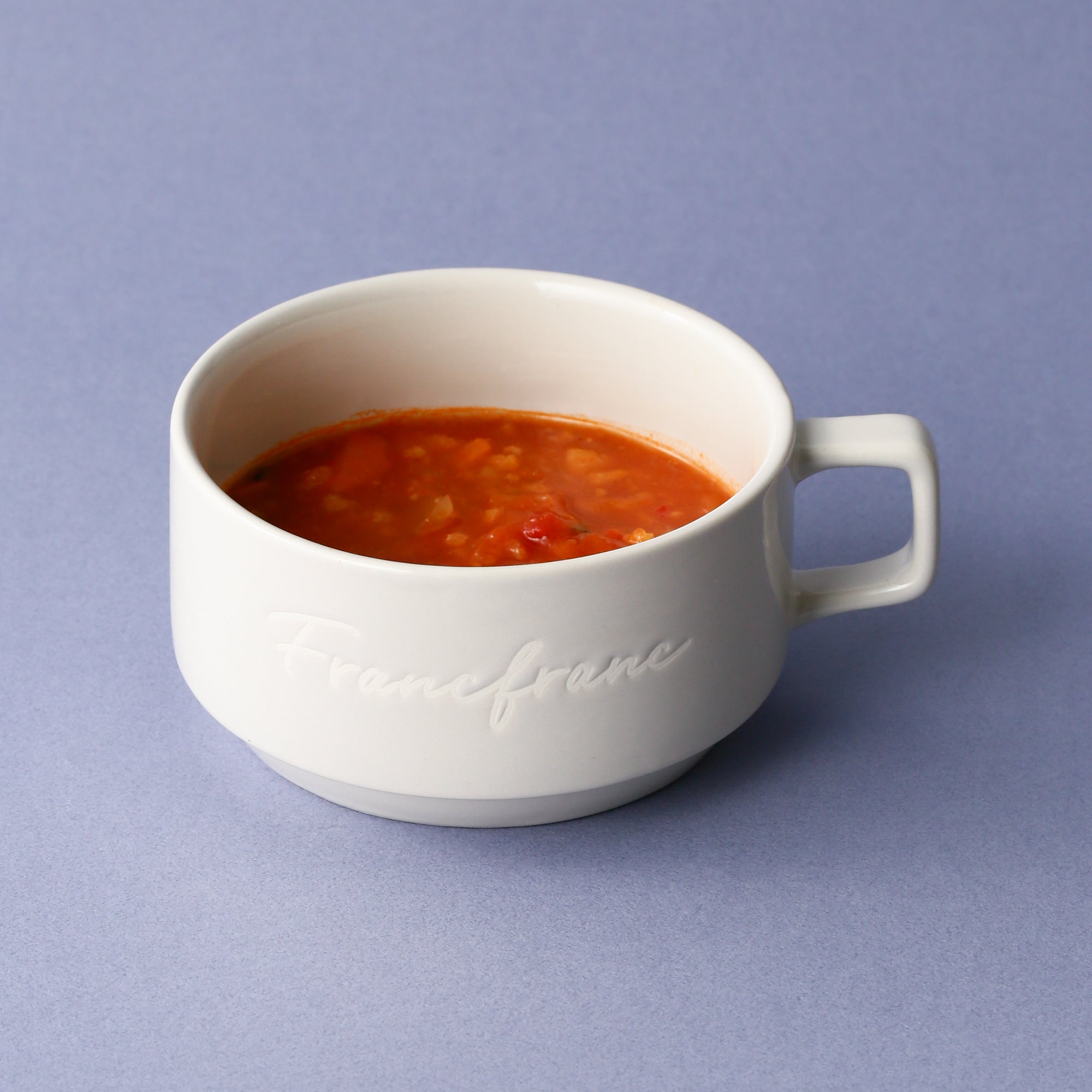 Franfrancの白抜きロゴがかわいい綺麗なカラーのスープカップです。色違いで集めたくなる綺麗なカラーを揃えました。気分やその日の食卓の雰囲気によってカラーを選ぶことができます。グレーカラーは、シンプルなので男女兼用として使用しやすいです。電子レンジも使用できるので、スープが冷めてしまったらそのまま温め直しができます。食器洗浄機も対応で気軽に使えて便利です。毎日の食卓を華やかになります。容量は360mlと大きめなので、スープをたっぷり入れることができます。素材はストーンウェアを使用しているので、耐熱性がありオーブン可なのでグラタン皿としてもお使いいただけます。また耐水性があるので汚れがつきにくく、食材の匂いもつきにくいのです。適度に丸みを帯びた形もとっても持ちやすく、ぬくもりを感じる落ち着いた質感と丈夫さも魅力です。取っ手がついているので持ちやすいです。使い心地が抜群で、毎日食卓に並べたくなります。スタッキング可能で収納にも便利です。淡い色合いで、並べてあるだけでも可愛いです。