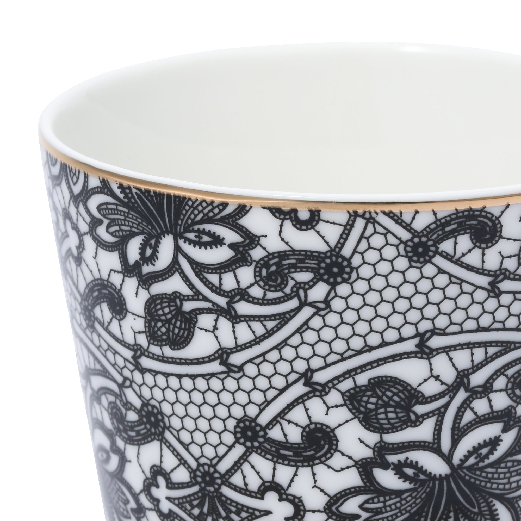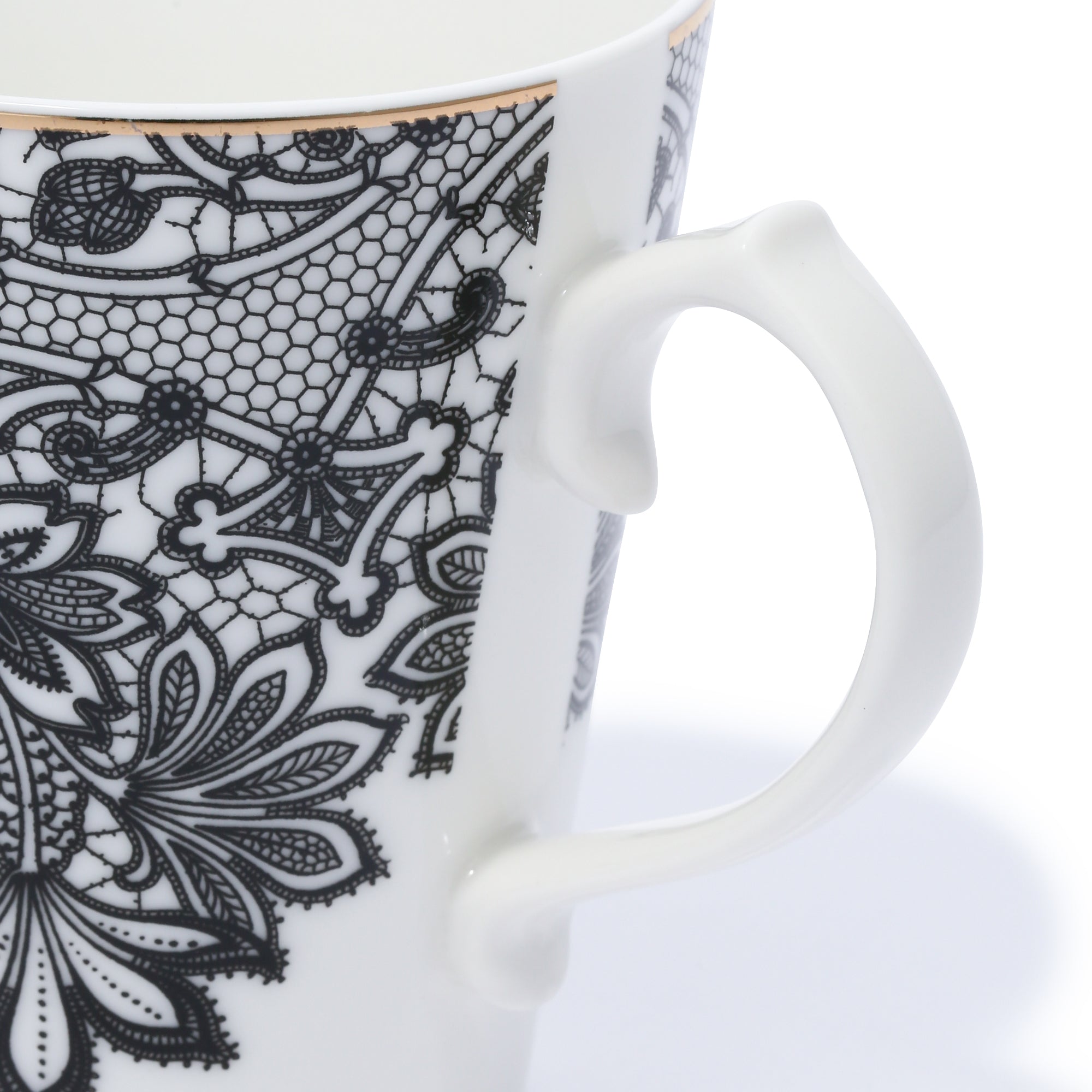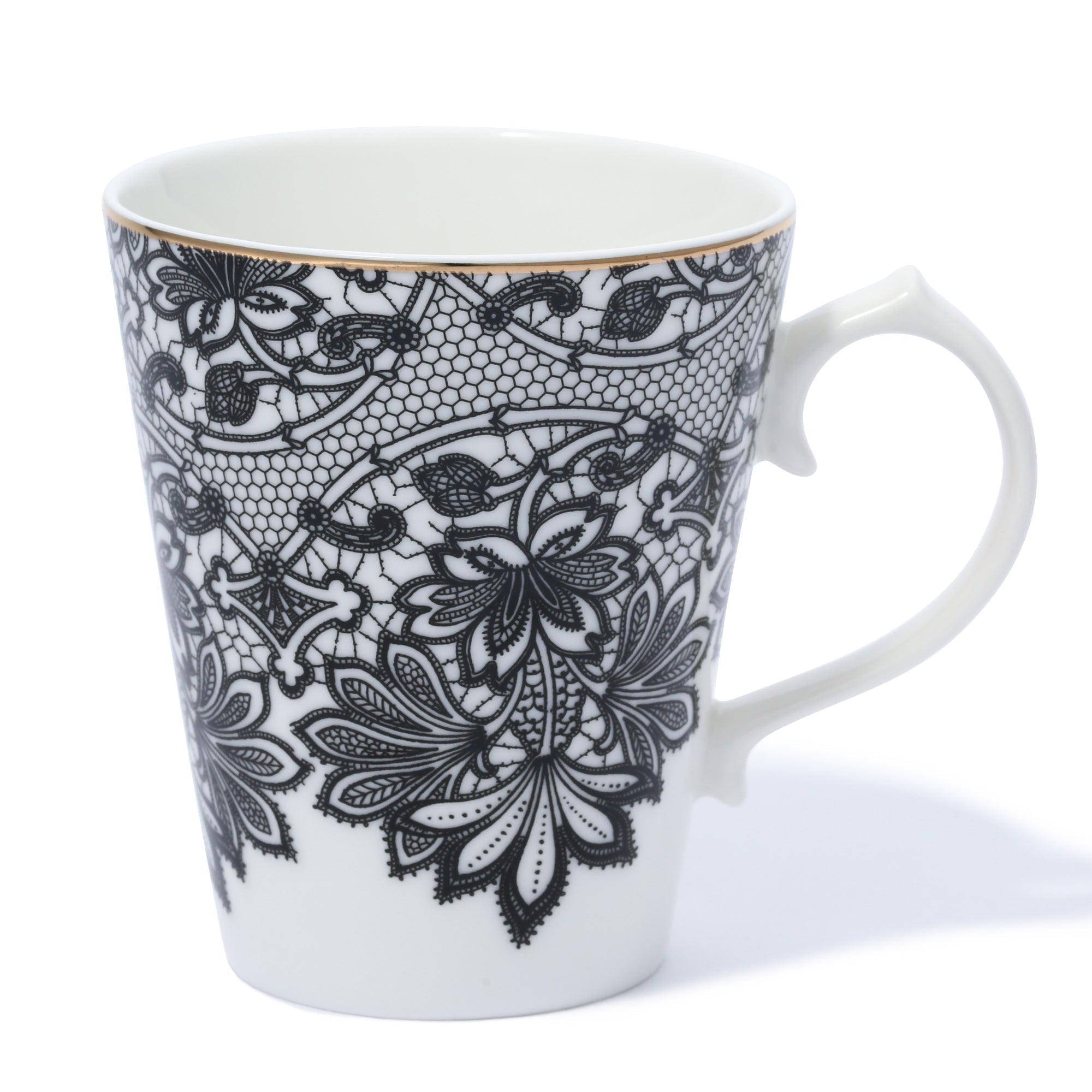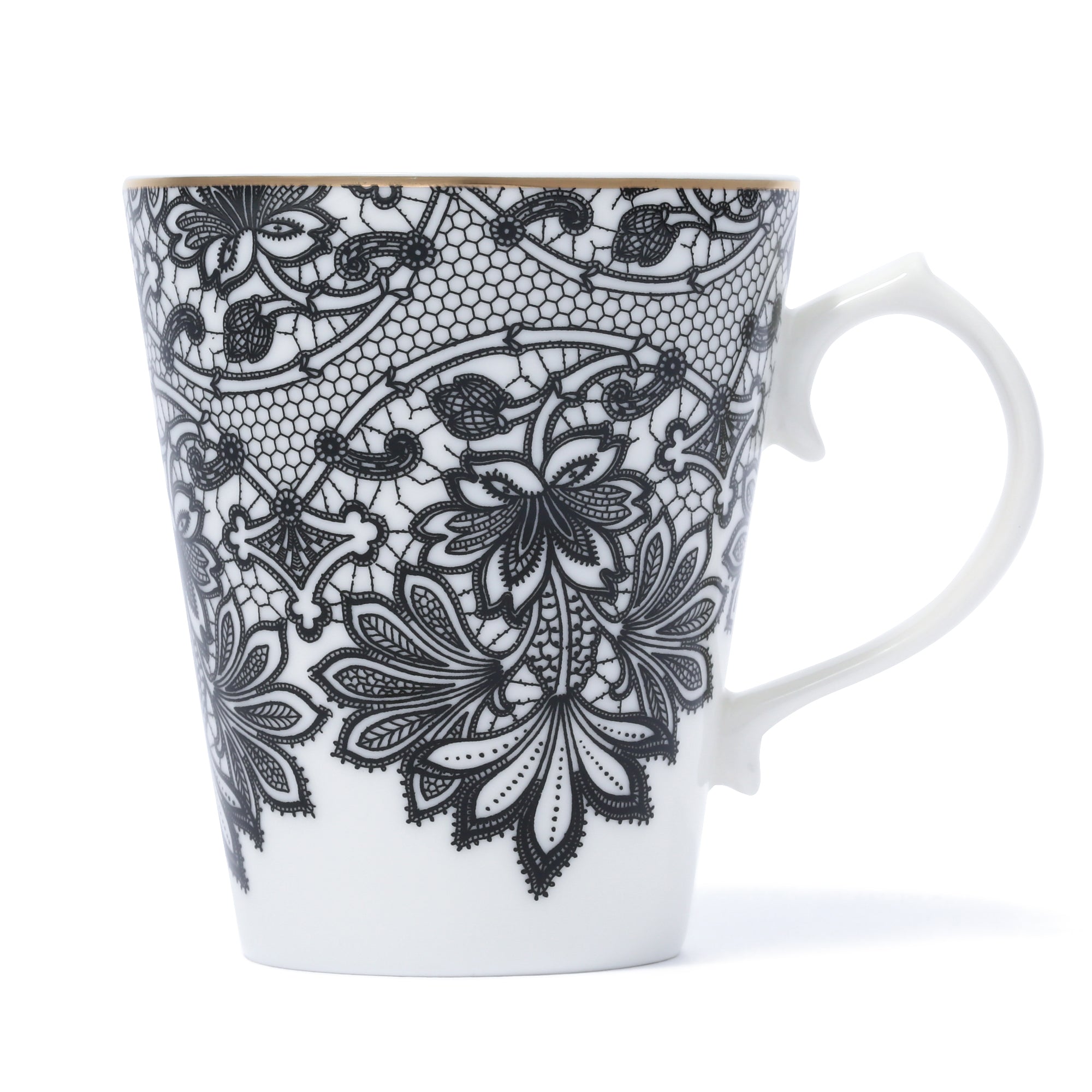 凛としたモノトーンのレース柄がエレガントなマグです。大人な女性へのギフトにぴったりのアイテムです。