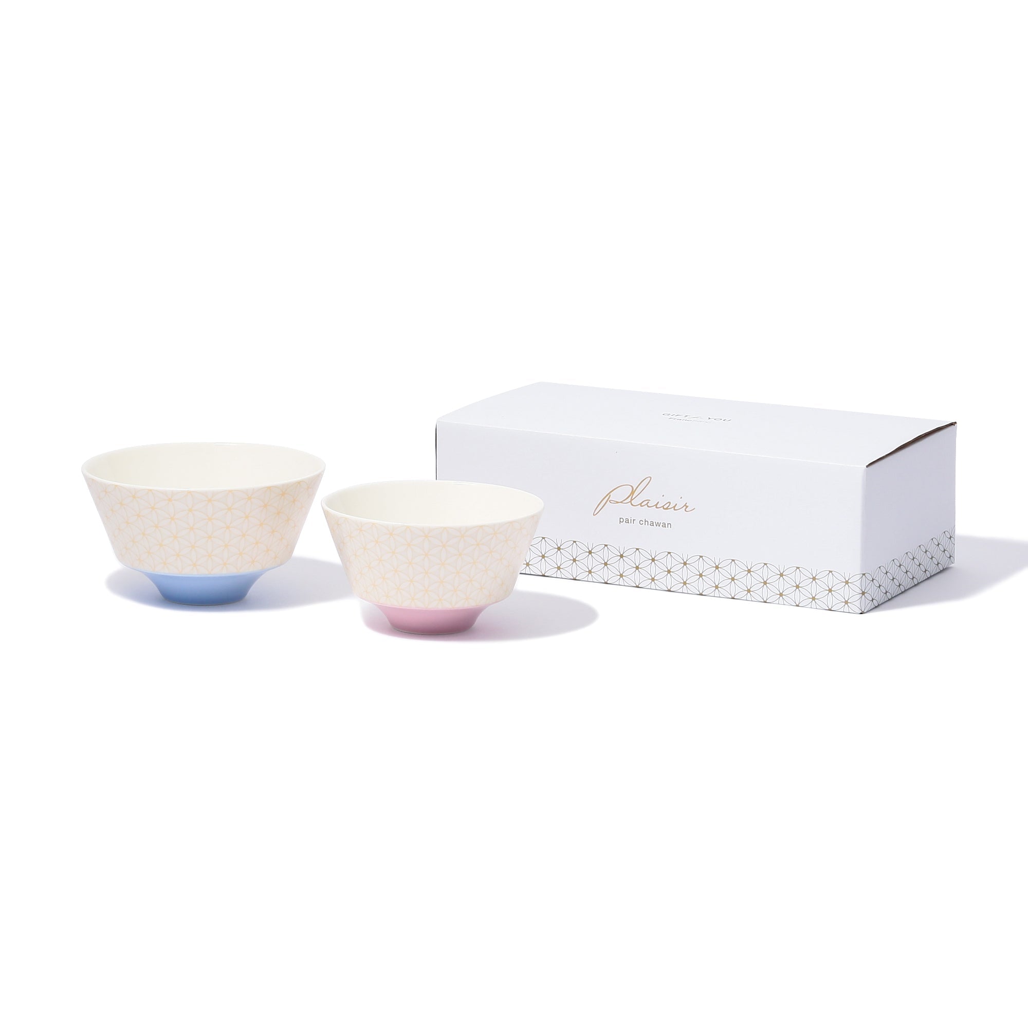 ご結婚のお祝いなどにおすすめのお茶碗セットです。電子レンジや食器洗浄機を使用できる金を使い、普段使いしやすいようにしました。持った時に、キレイな手の形になる形状なので、食事がより一層楽しくなります。Plaisir(プレジール)とは、フランス語で「喜び」という意味です。