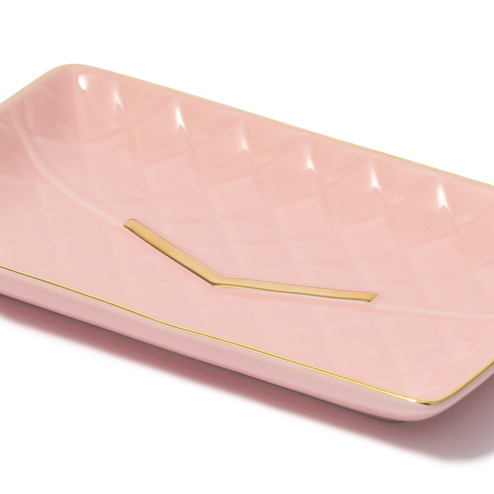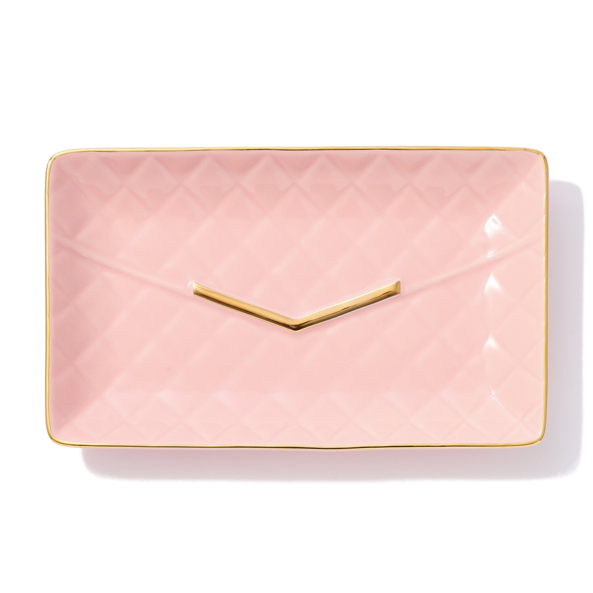 キルティングバッグをモチーフにしたキャッチーなデザインのプレートです。食器としてはもちろん小物用のトレーとしてもお使いいただけます。