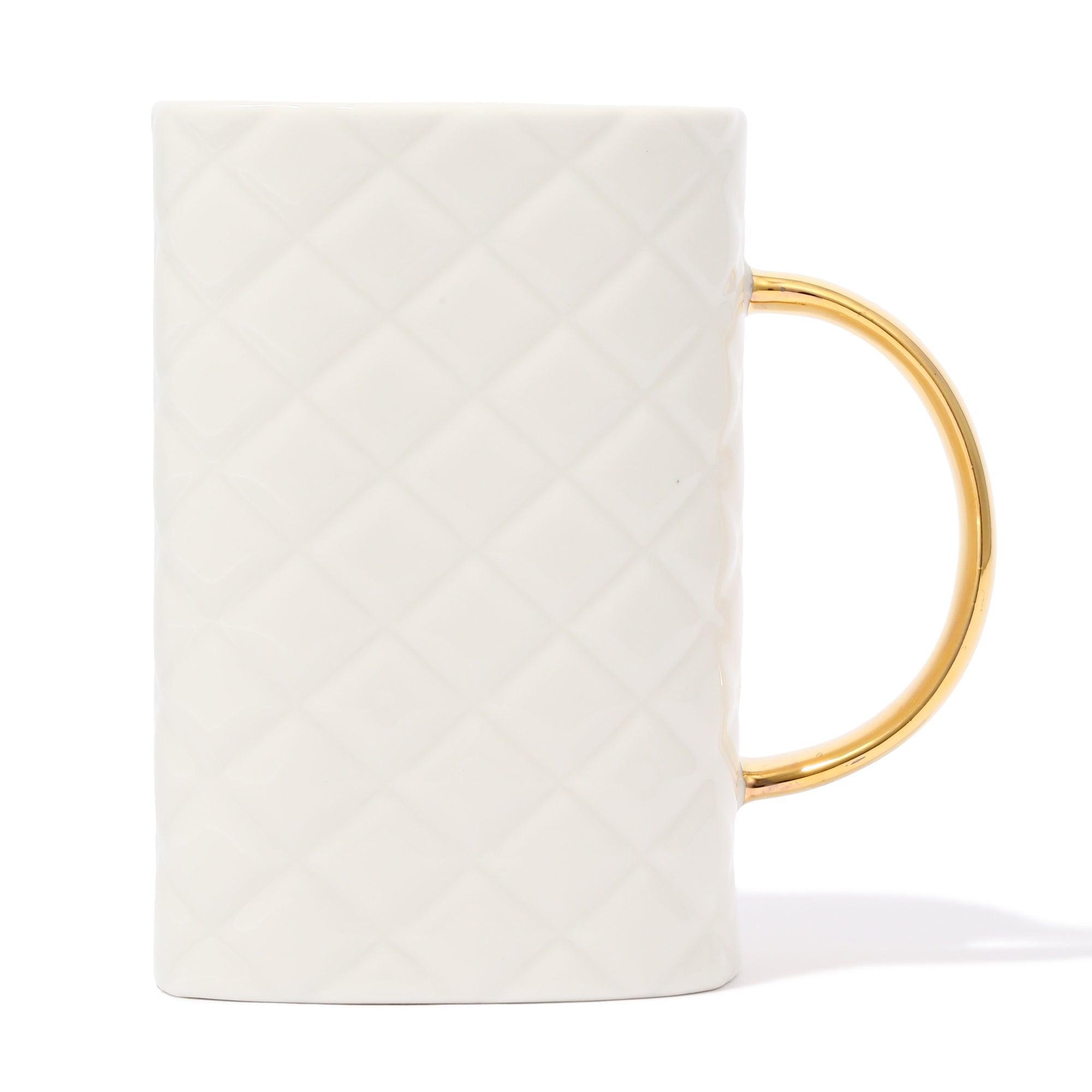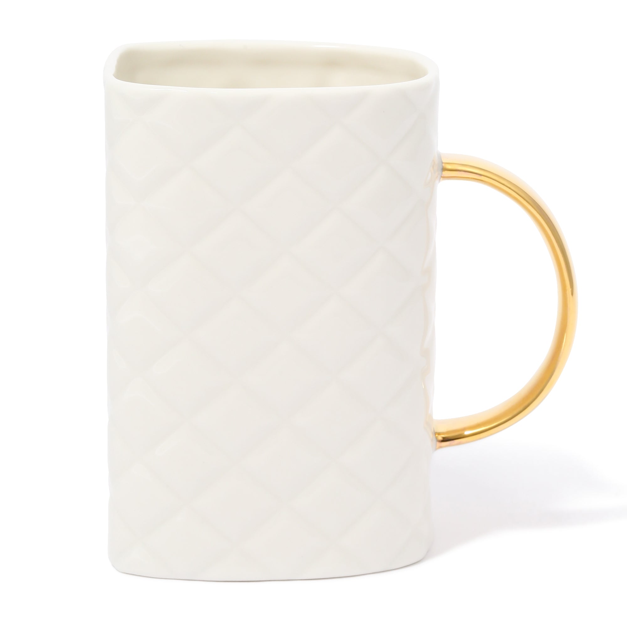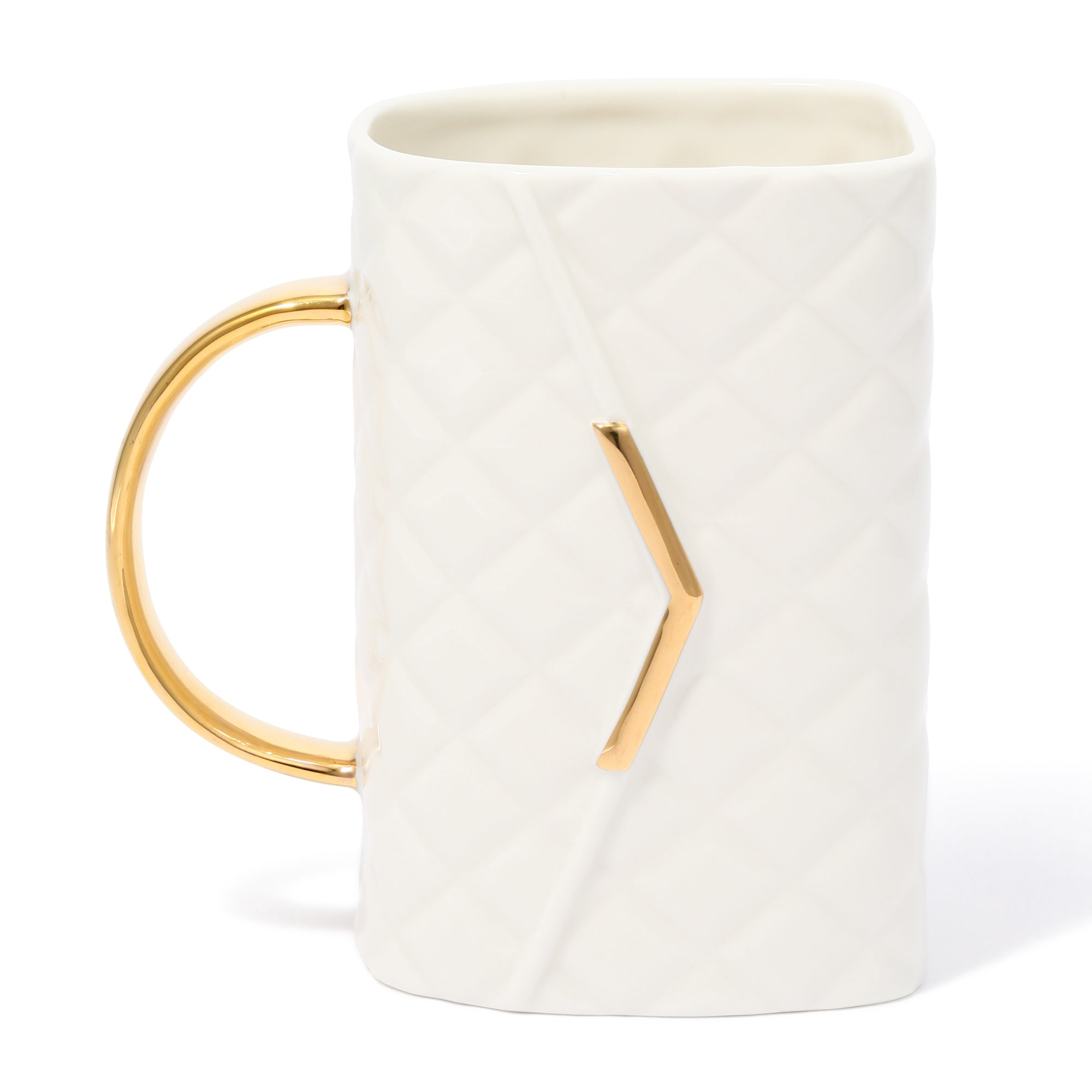 キルティングバッグをモチーフにしたキャッチーなデザインのマグ です。食器としてはもちろんペン立てとしてもお使いいただけます。