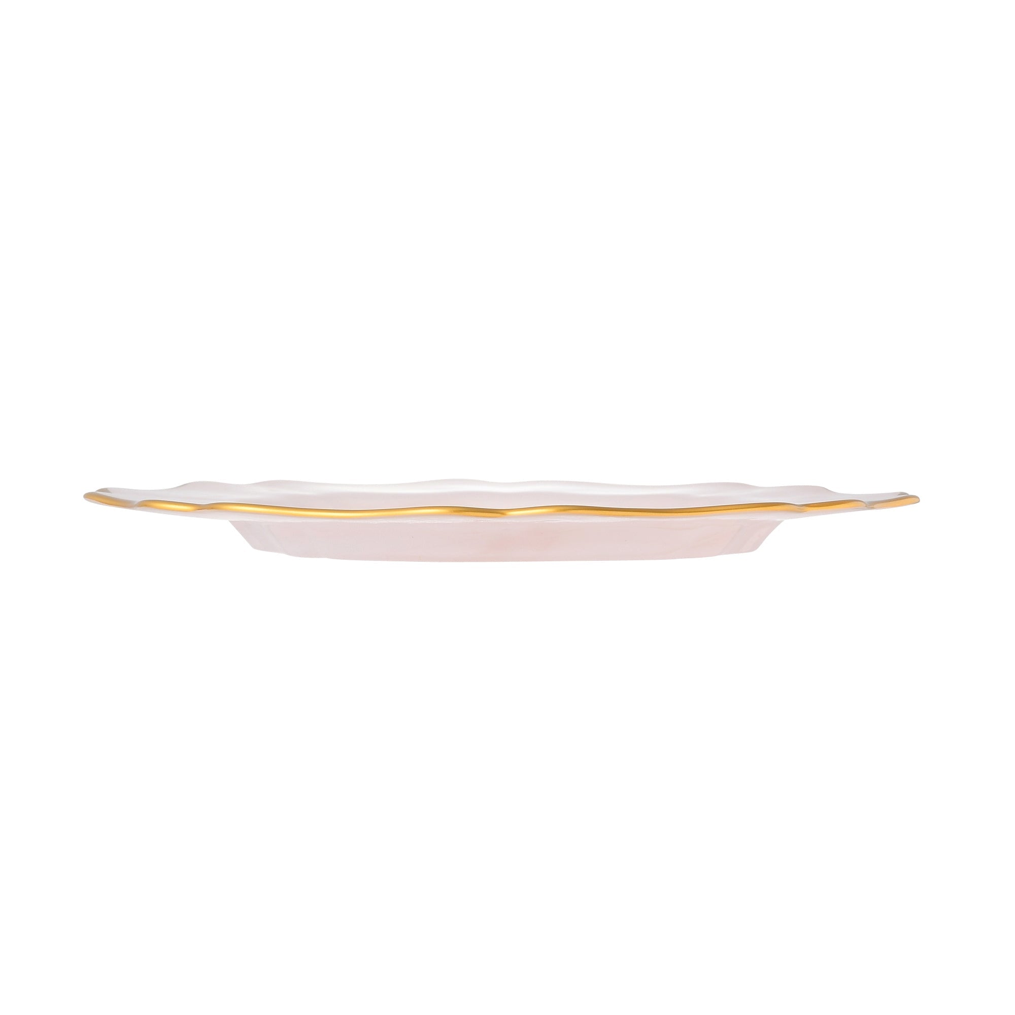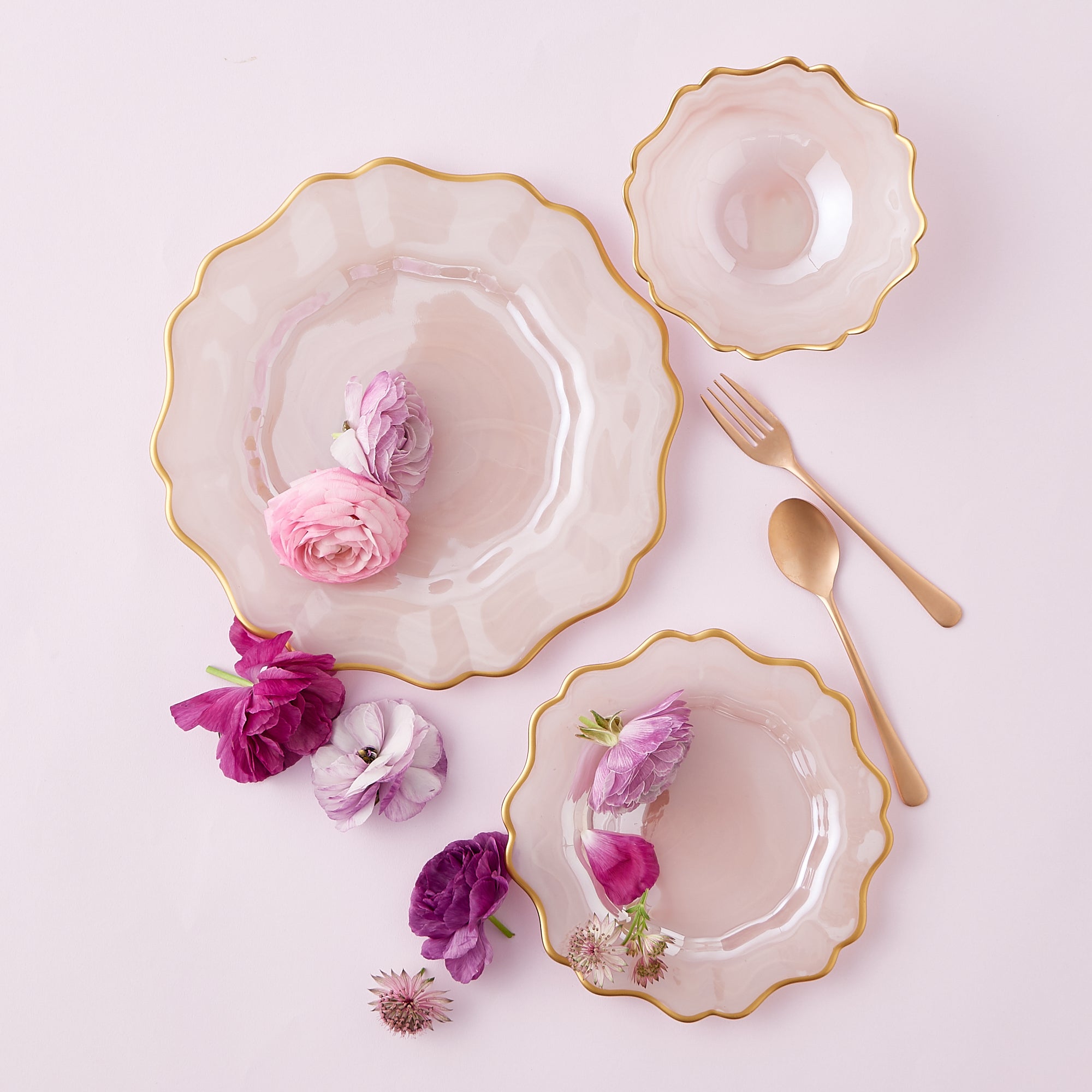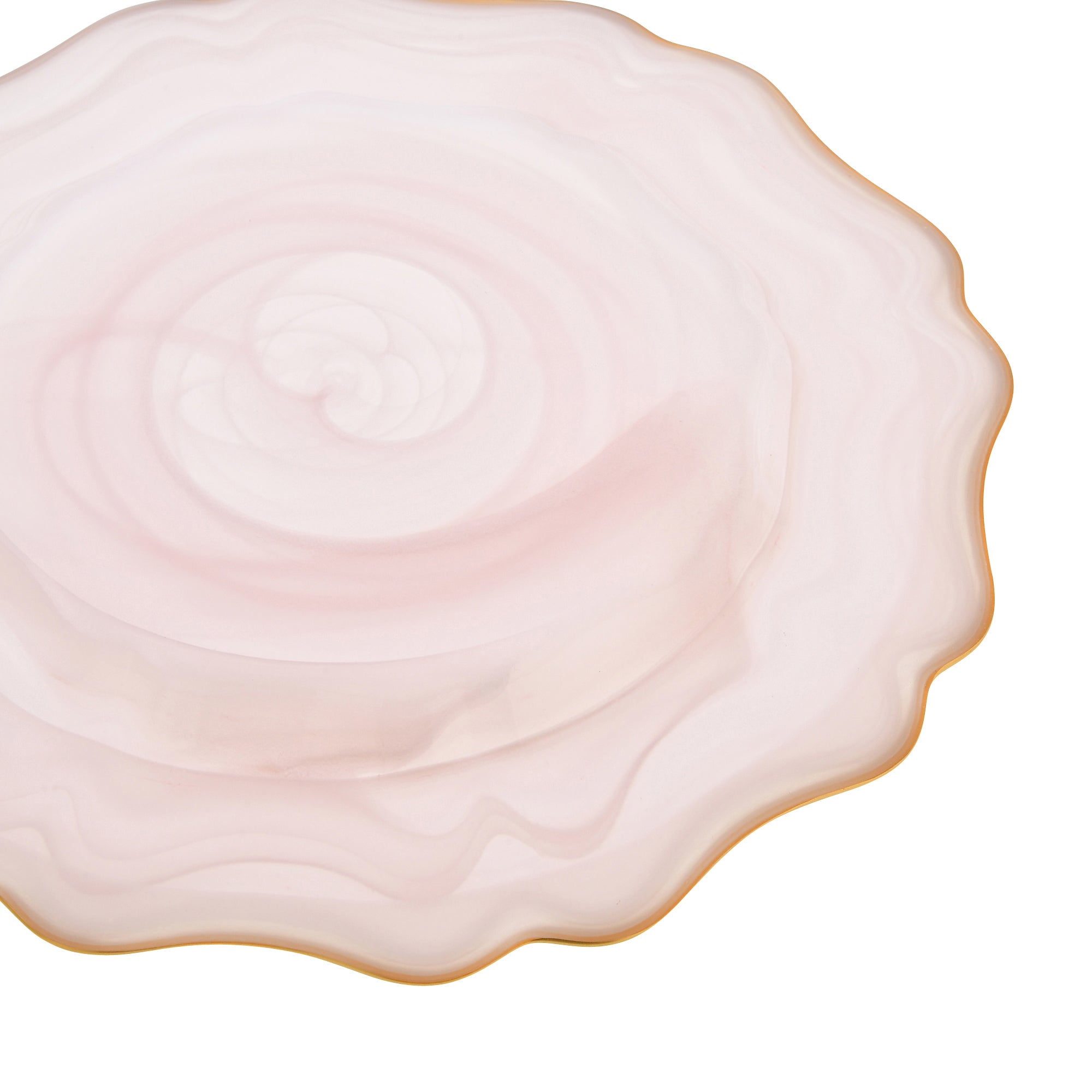 あめ細工のようなマーブル模様が美しいガラスプレートです。優しいミルキーカラーで描かれた味わいのあるハンドメイドのラインが清涼感たっぷり。オパール加工を施して奥行きのある涼しげな佇まいに仕上げました。普段使いから、おもてなしまで幅広くご使用いただけます。優しいピンクの色合いのとゴールドのリムがスイーツやお料理をより素敵に引き立たせてくれます。パーティーシーンにも活躍する大き目サイズです。ゴールドのリムが華やさをプラスして、夏の食卓をおいしくおしゃれに盛り上げます。同シリーズで揃えることで、より写真映えする華やかな食卓になります。清涼感のあるデザインで、素敵なテーブルコーディネートをお楽しみ下さい。