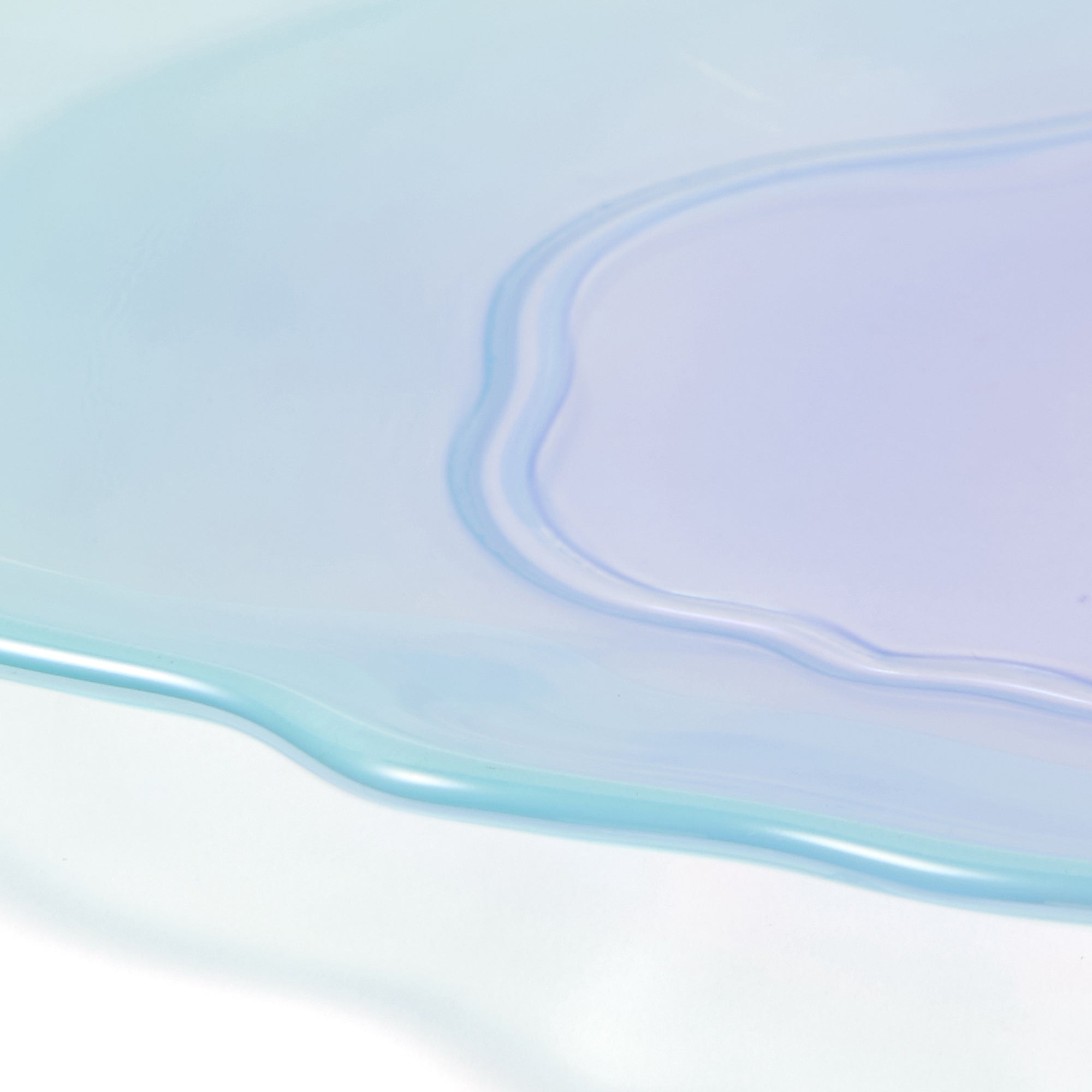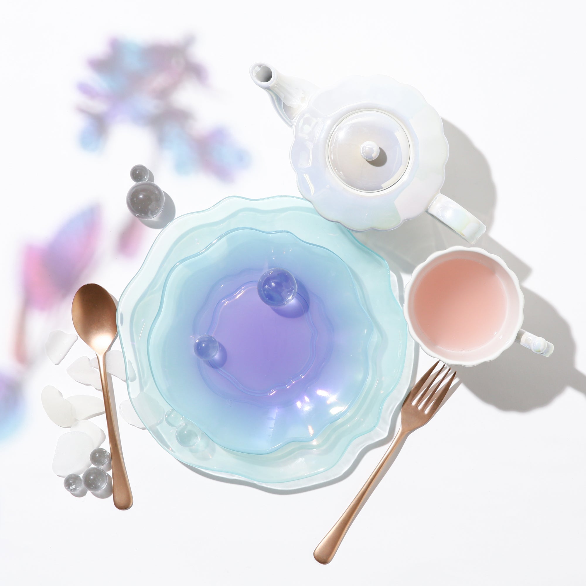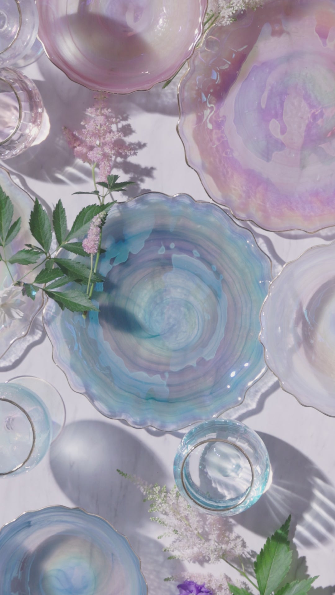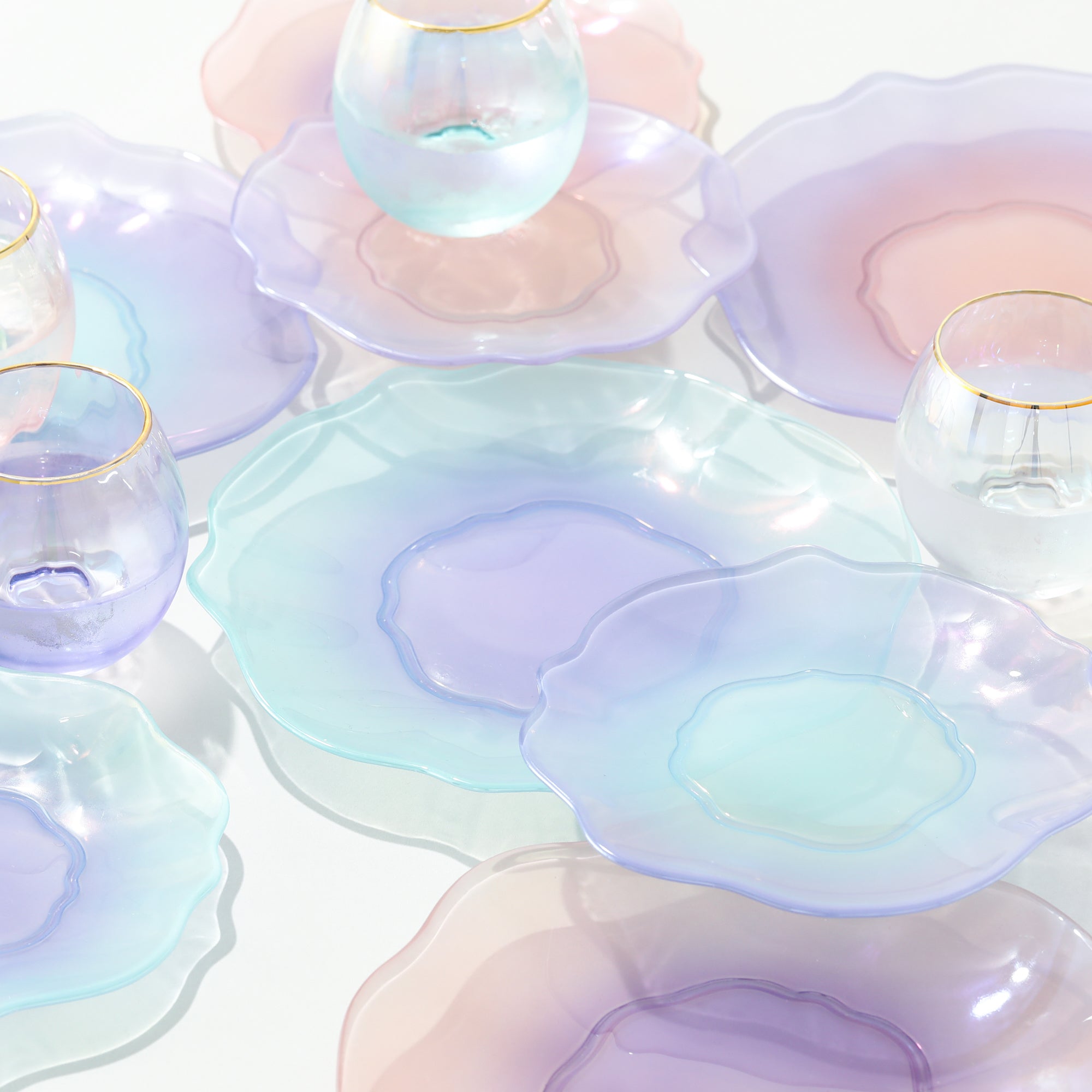 ゆらゆらとした波のようなフォルムのガラスプレートです。優しいグラデーションカラーが甘くて幻想的。仕上げに美しいオパール加工を施しました。スイーツはもちろん、アクセサリーなどを載せてインテリアの一部として楽しむのもおすすめです。