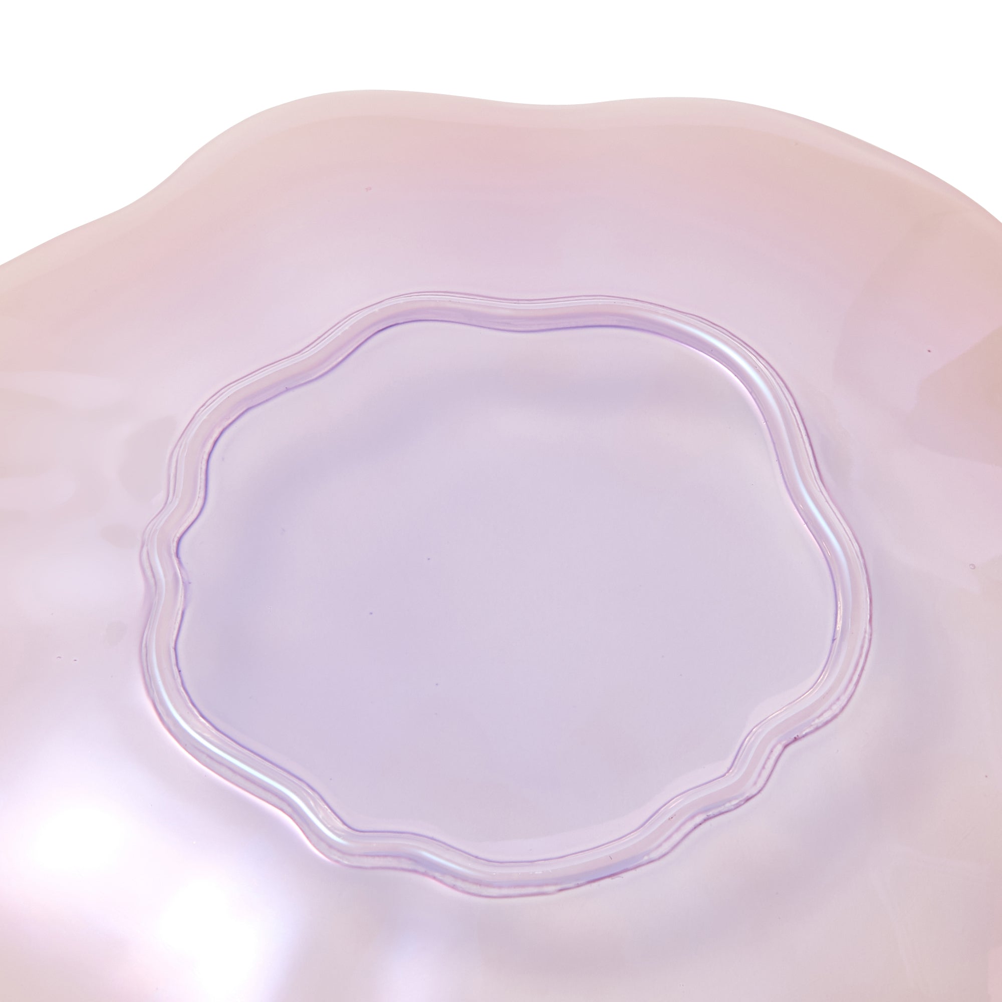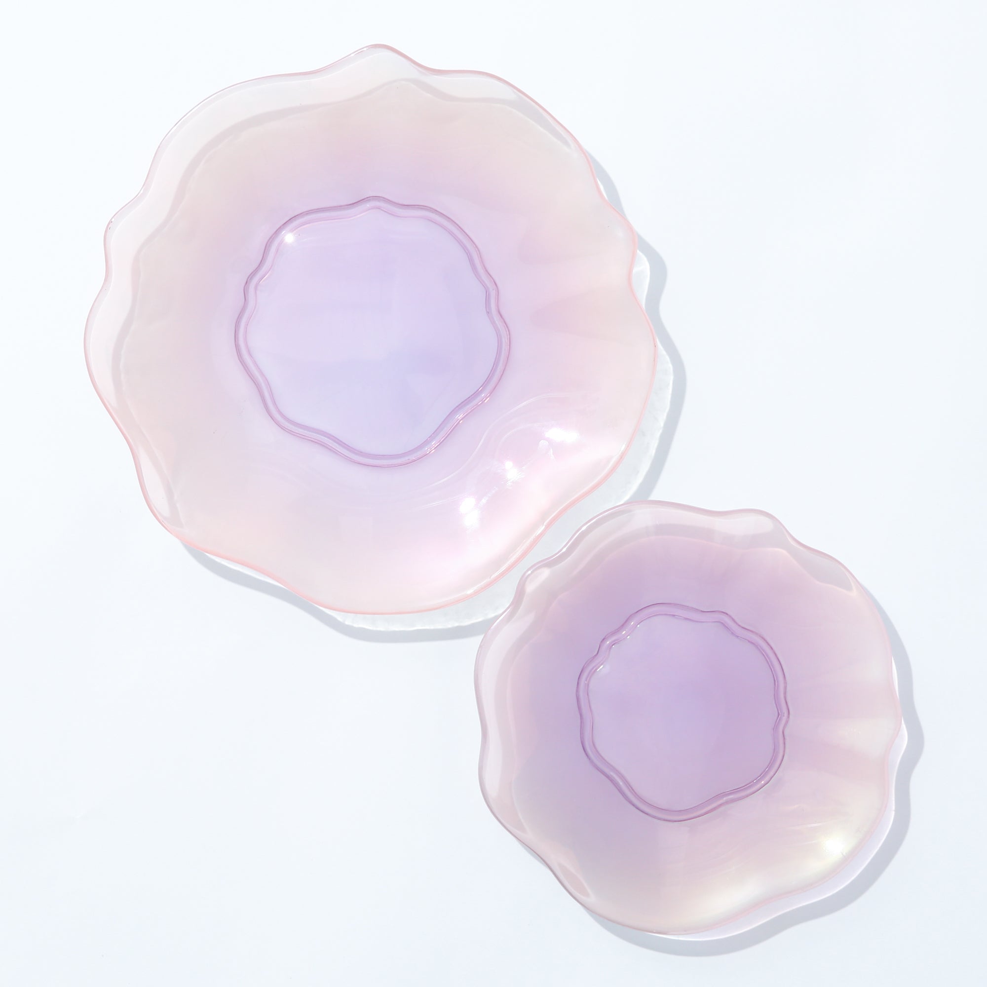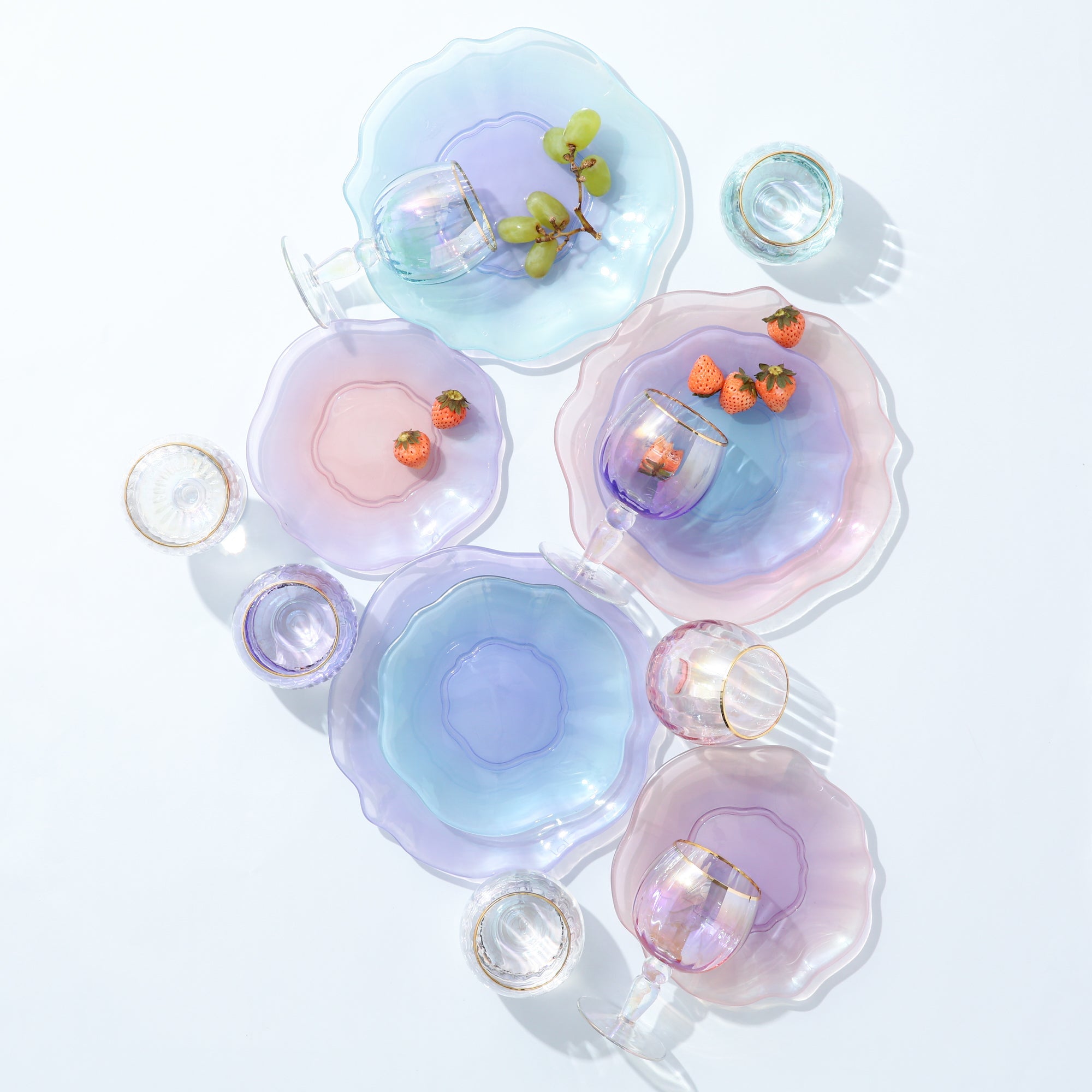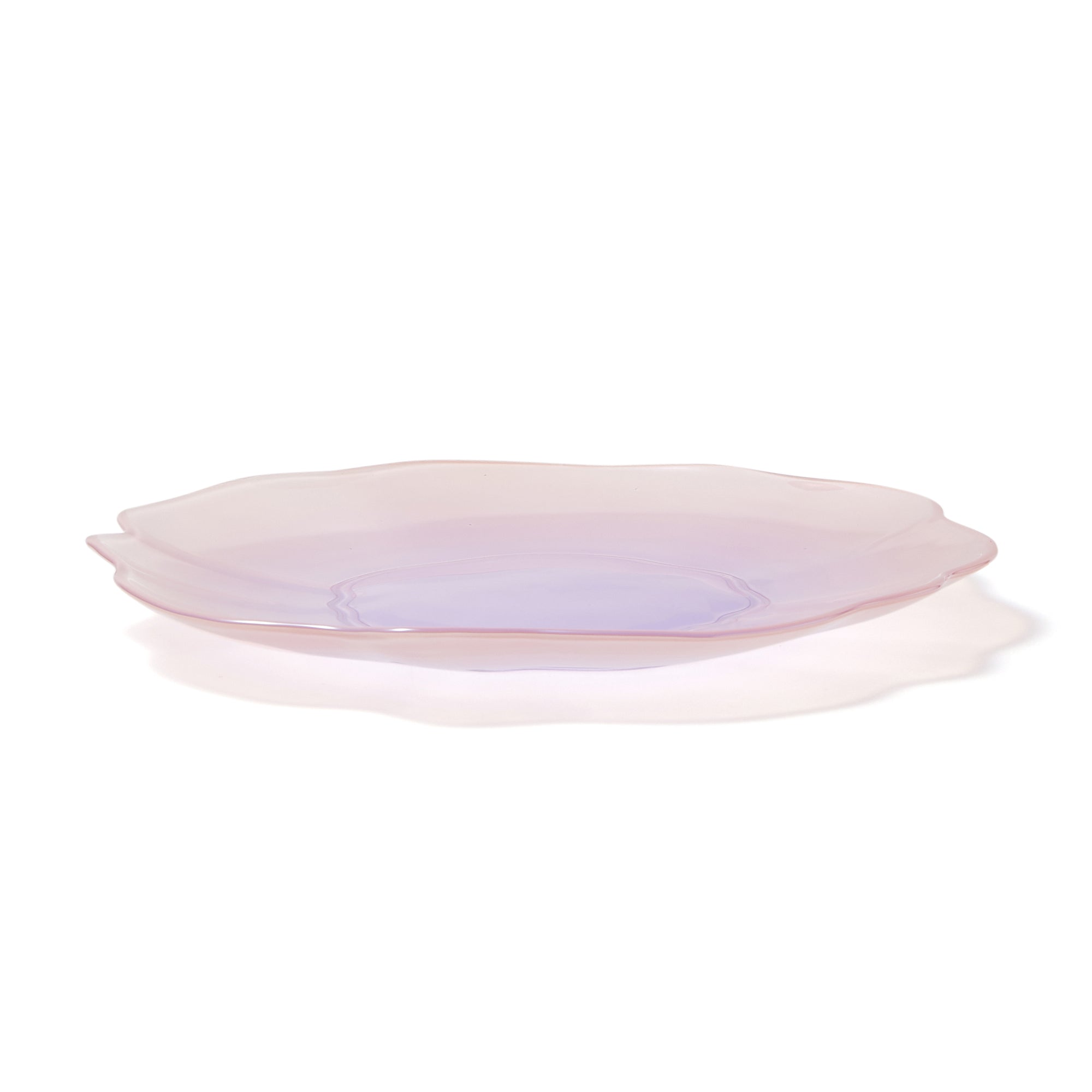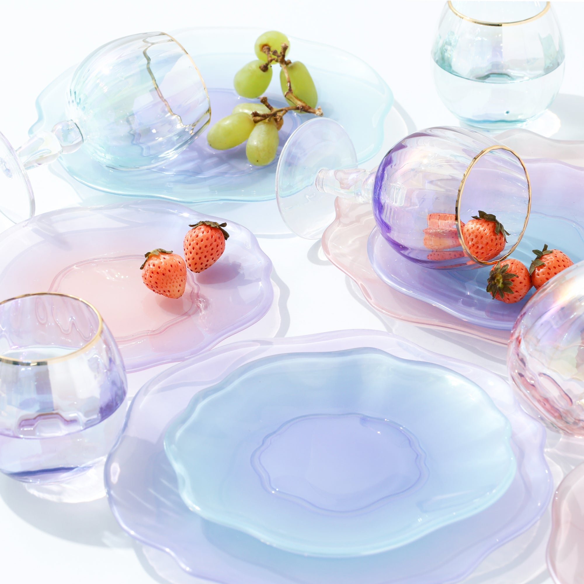 ゆらゆらとした波のようなフォルムのガラスプレートです。優しいグラデーションカラーが甘くて幻想的。仕上げに美しいオパール加工を施しました。スイーツを載せるのはもちろん、モーニングやブランチのワンプレートメニューにも使いやすいサイズです。