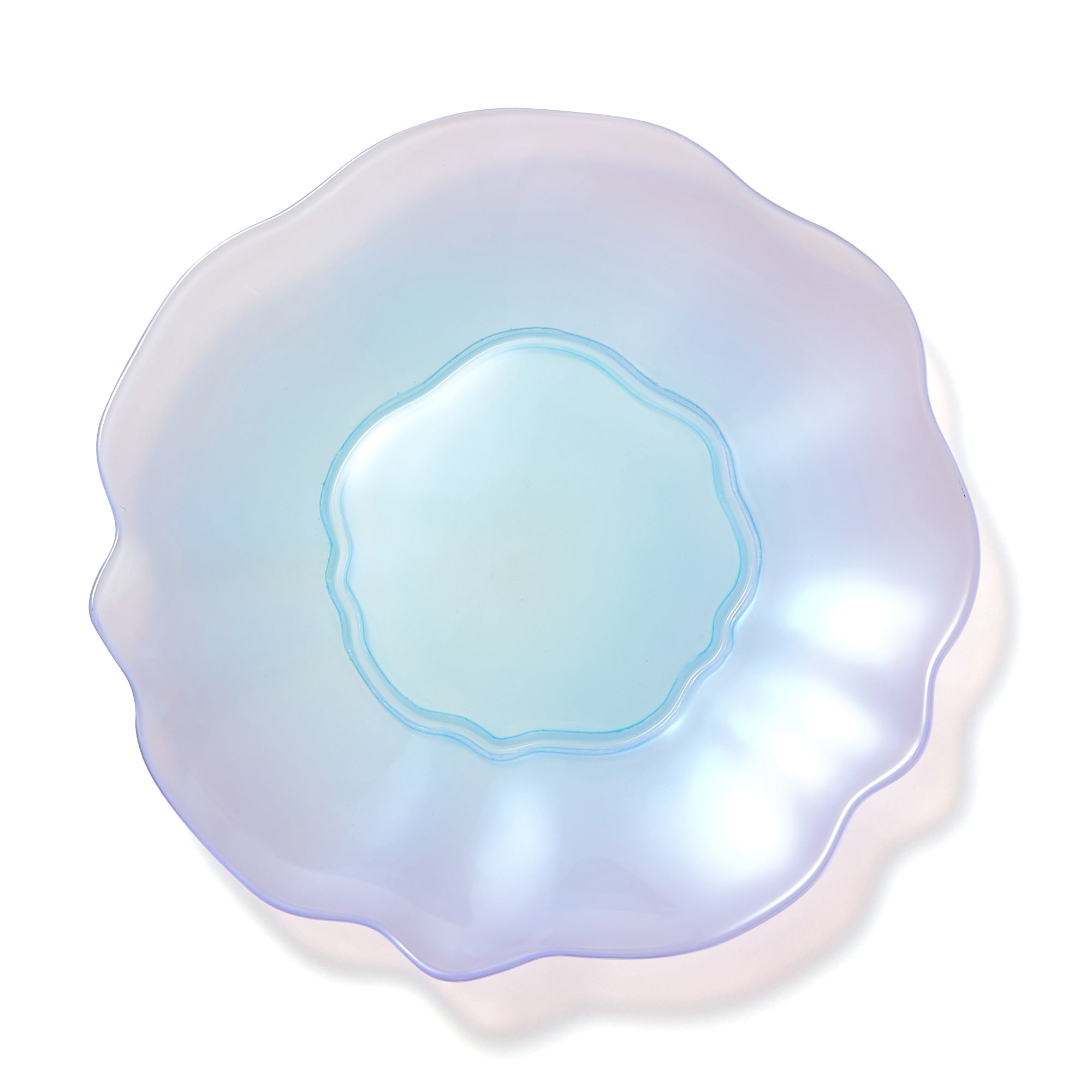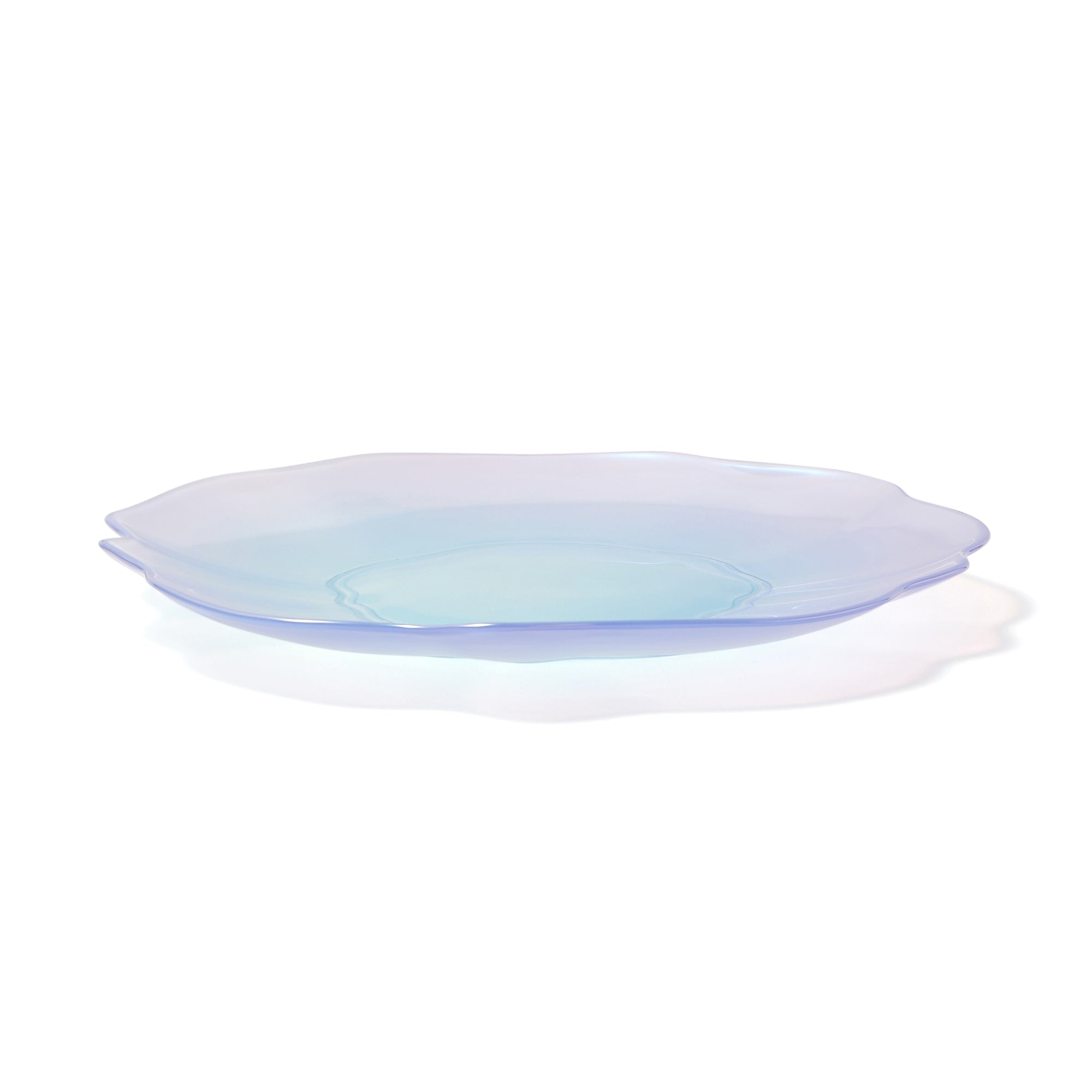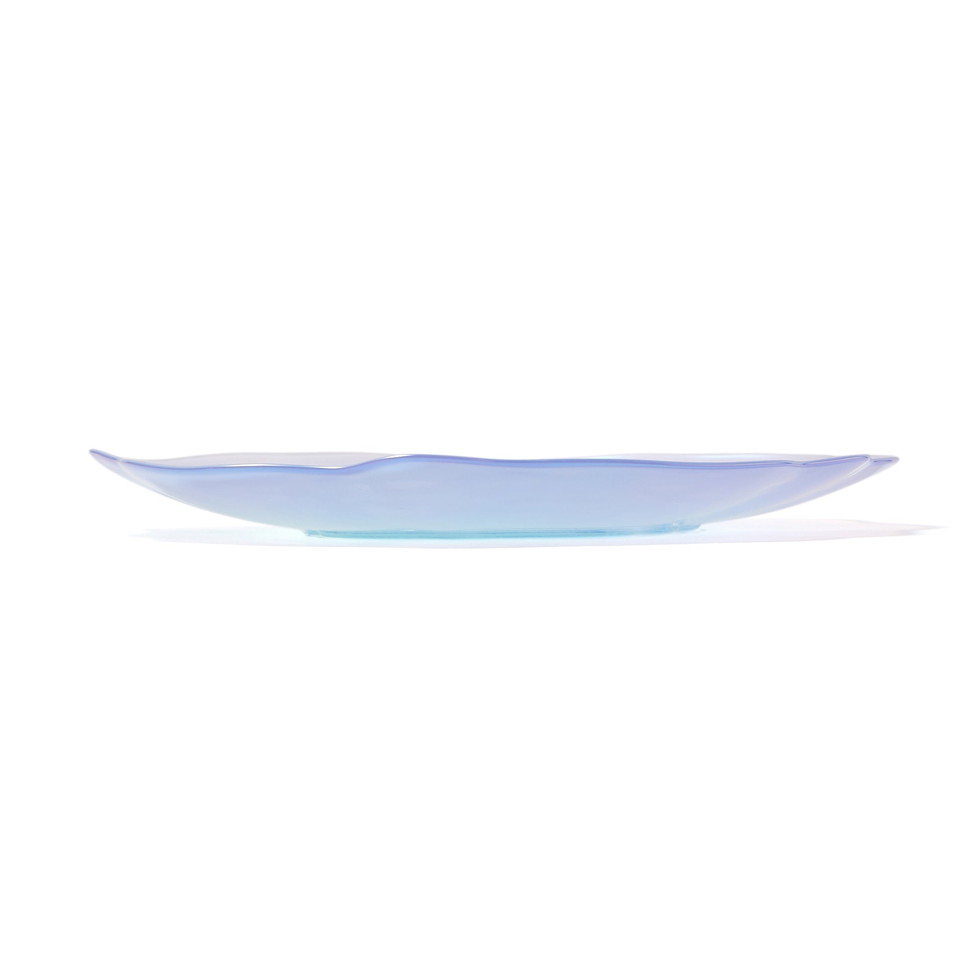 ゆらゆらとした波のようなフォルムのガラスプレートです。優しいグラデーションカラーが甘くて幻想的。仕上げに美しいオパール加工を施しました。スイーツを載せるのはもちろん、モーニングやブランチのワンプレートメニューにも使いやすいサイズです。