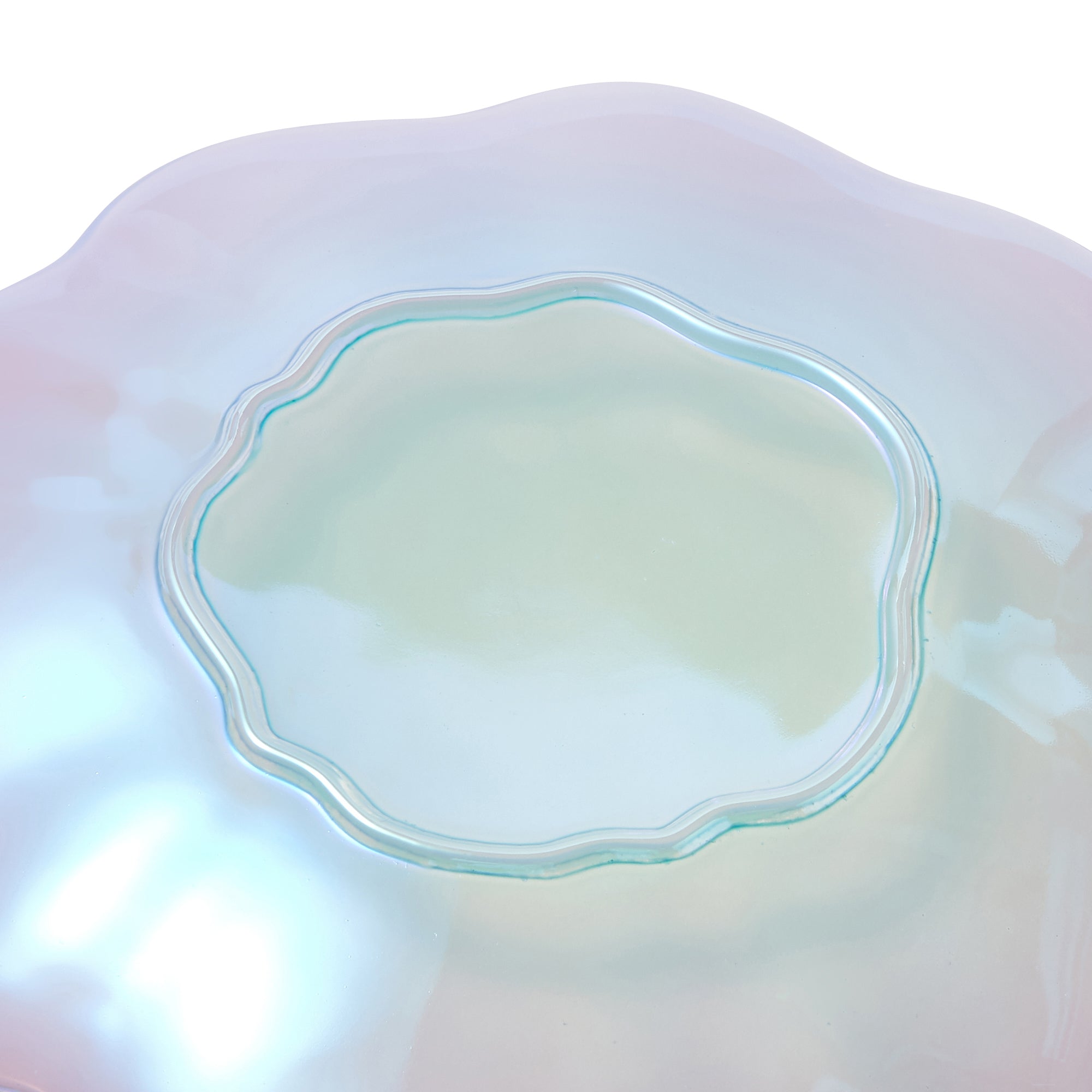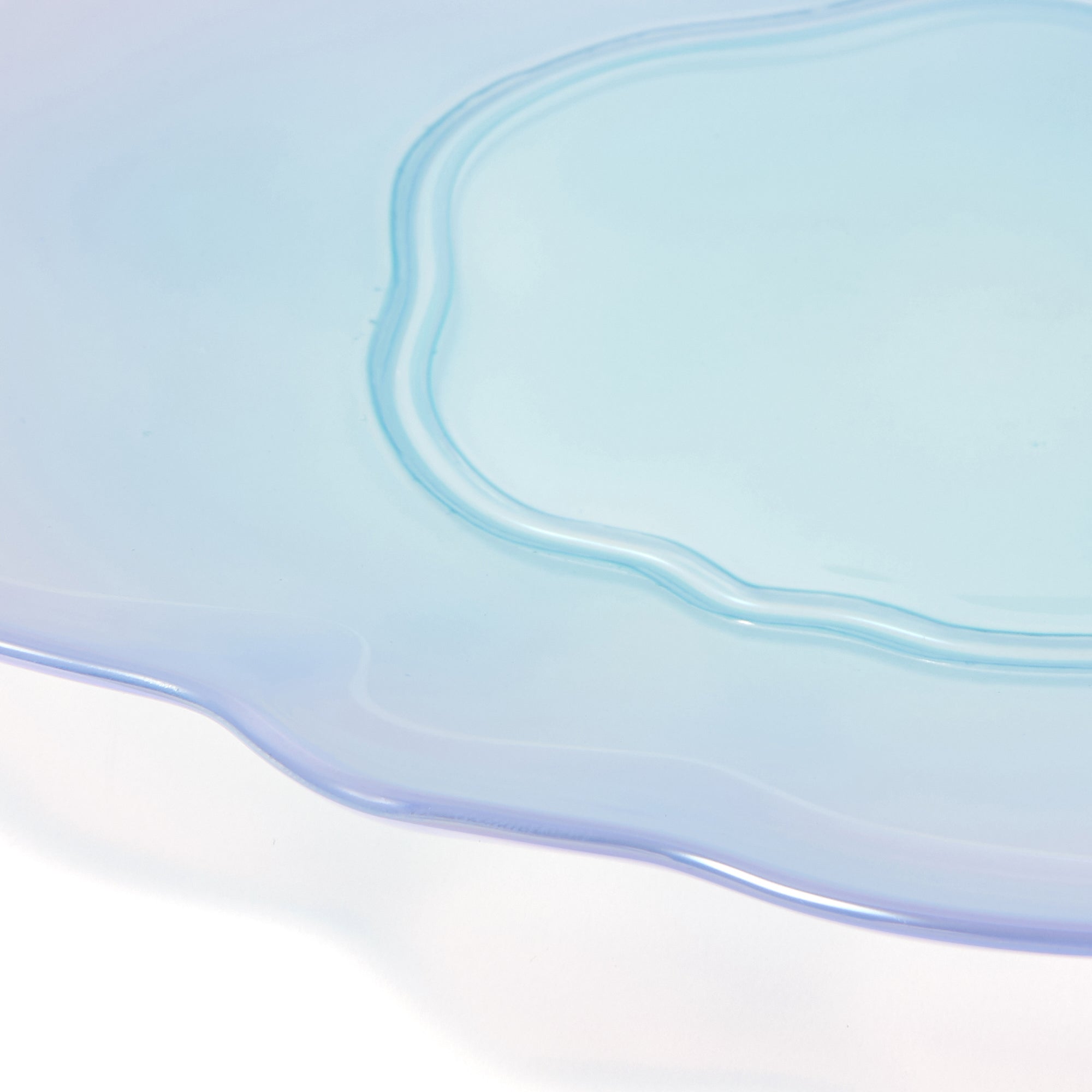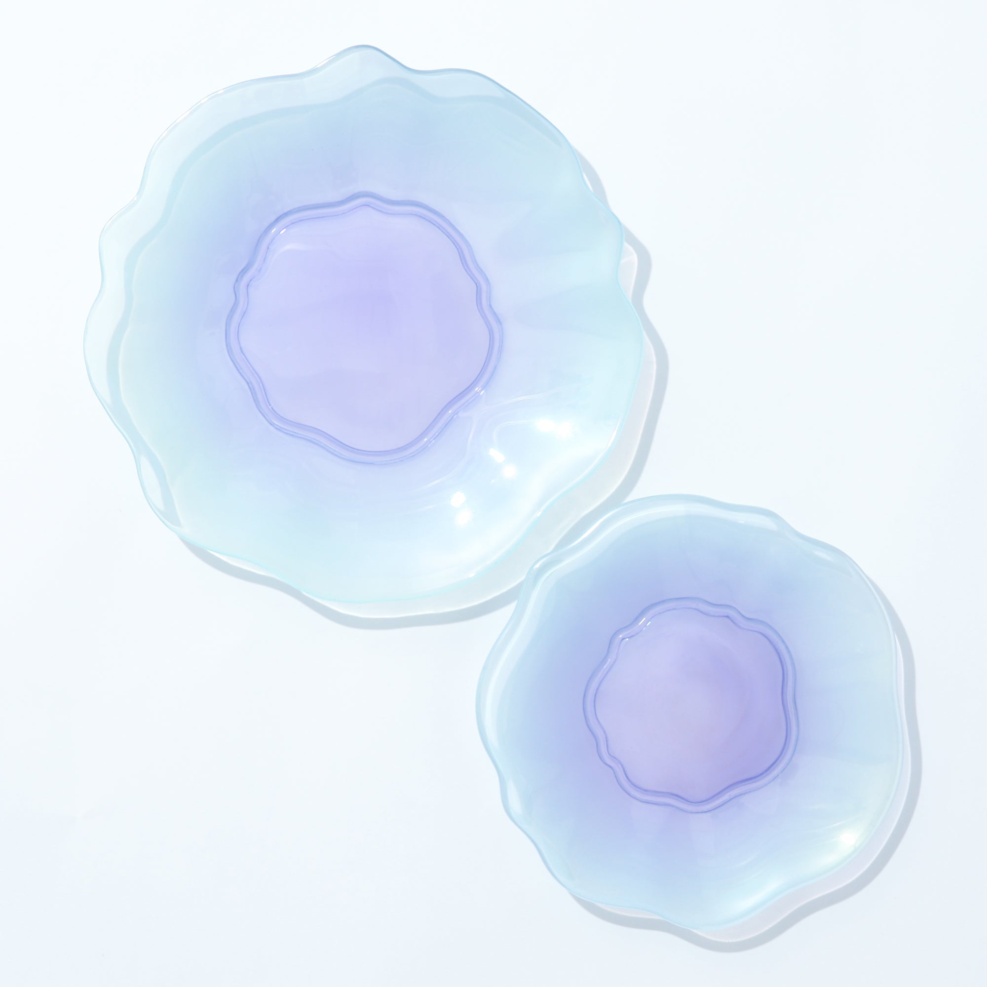 ゆらゆらとした波のようなフォルムのガラスプレートです。優しいグラデーションカラーが甘くて幻想的。仕上げに美しいオパール加工を施しました。スイーツを載せるのはもちろん、モーニングやブランチのワンプレートメニューにも使いやすいサイズです。
