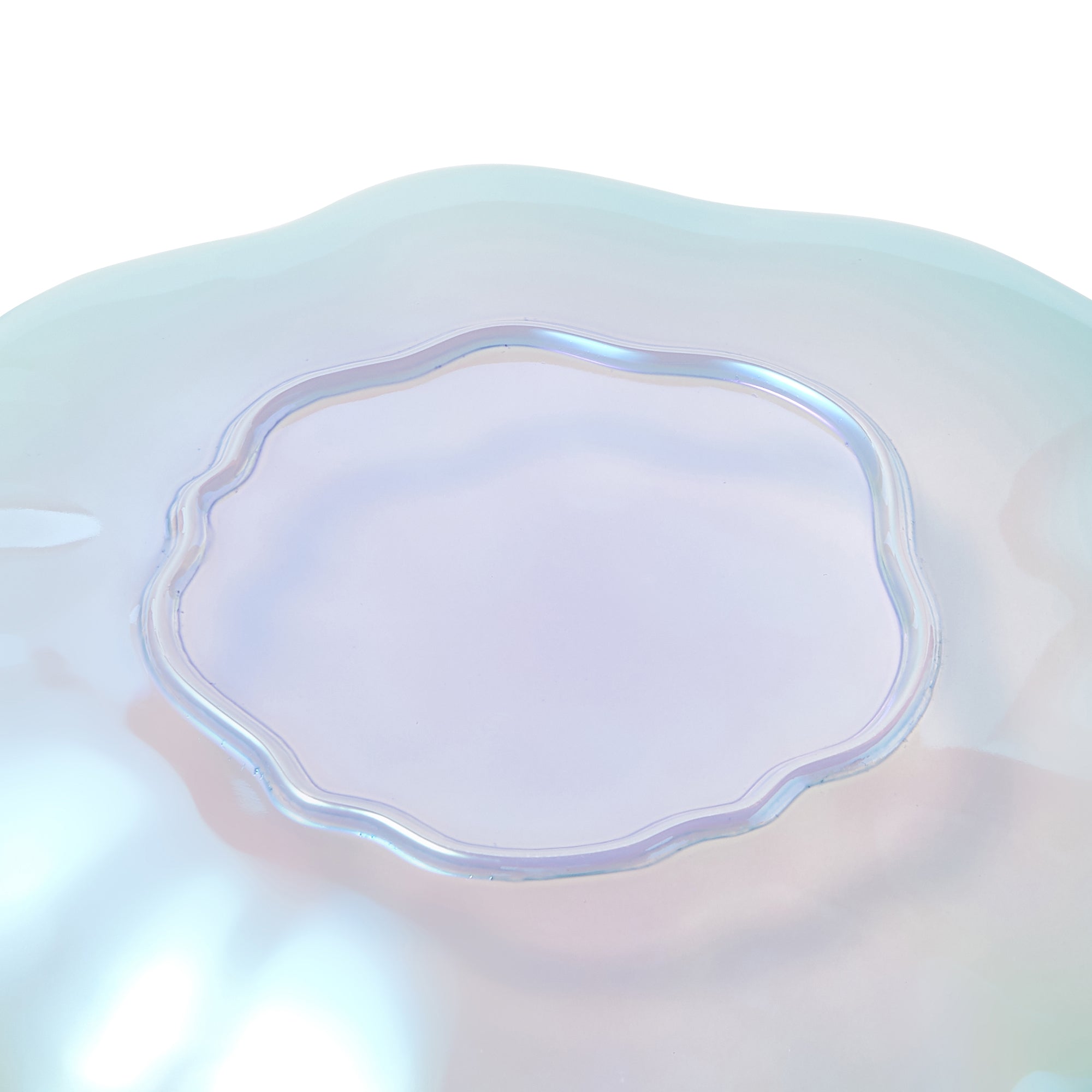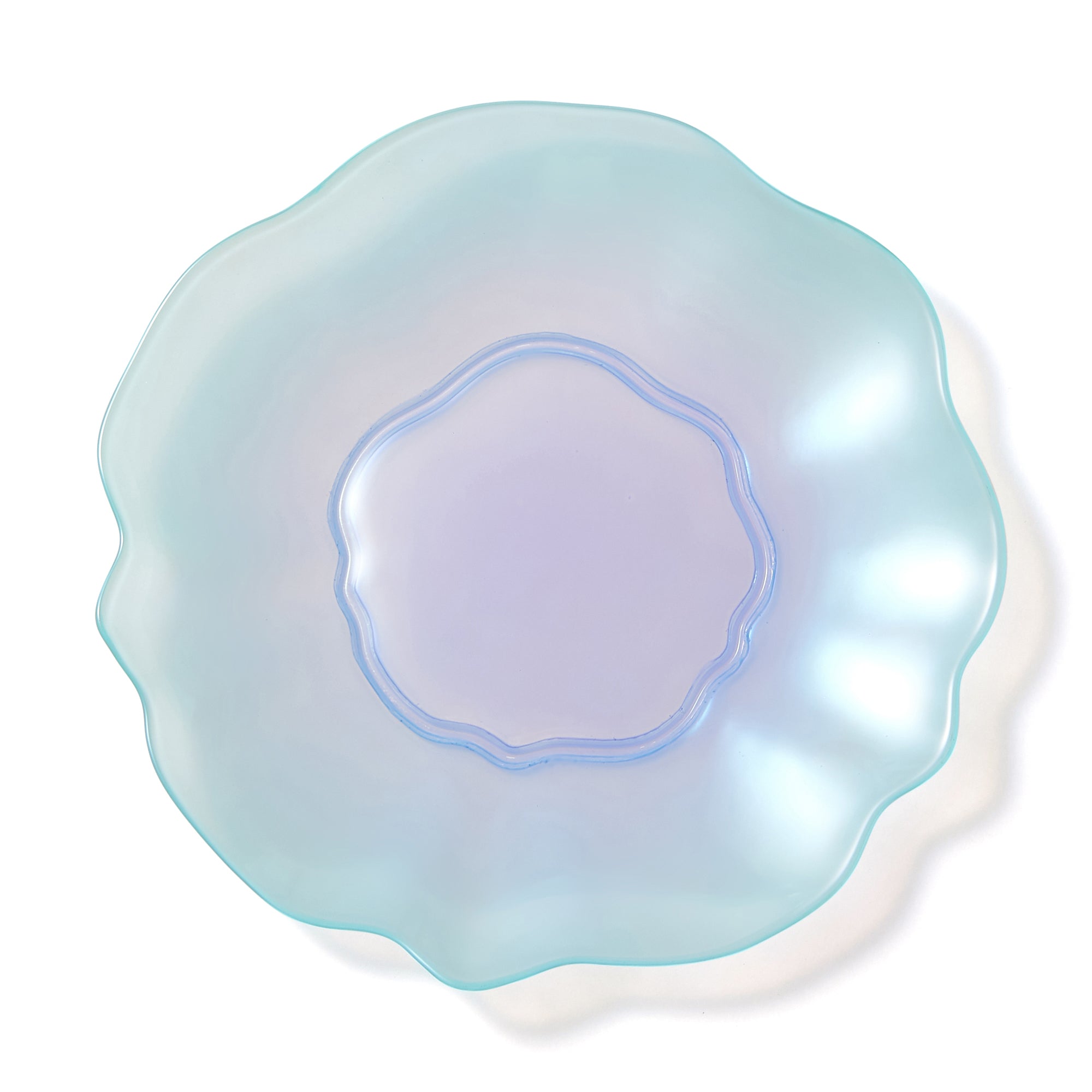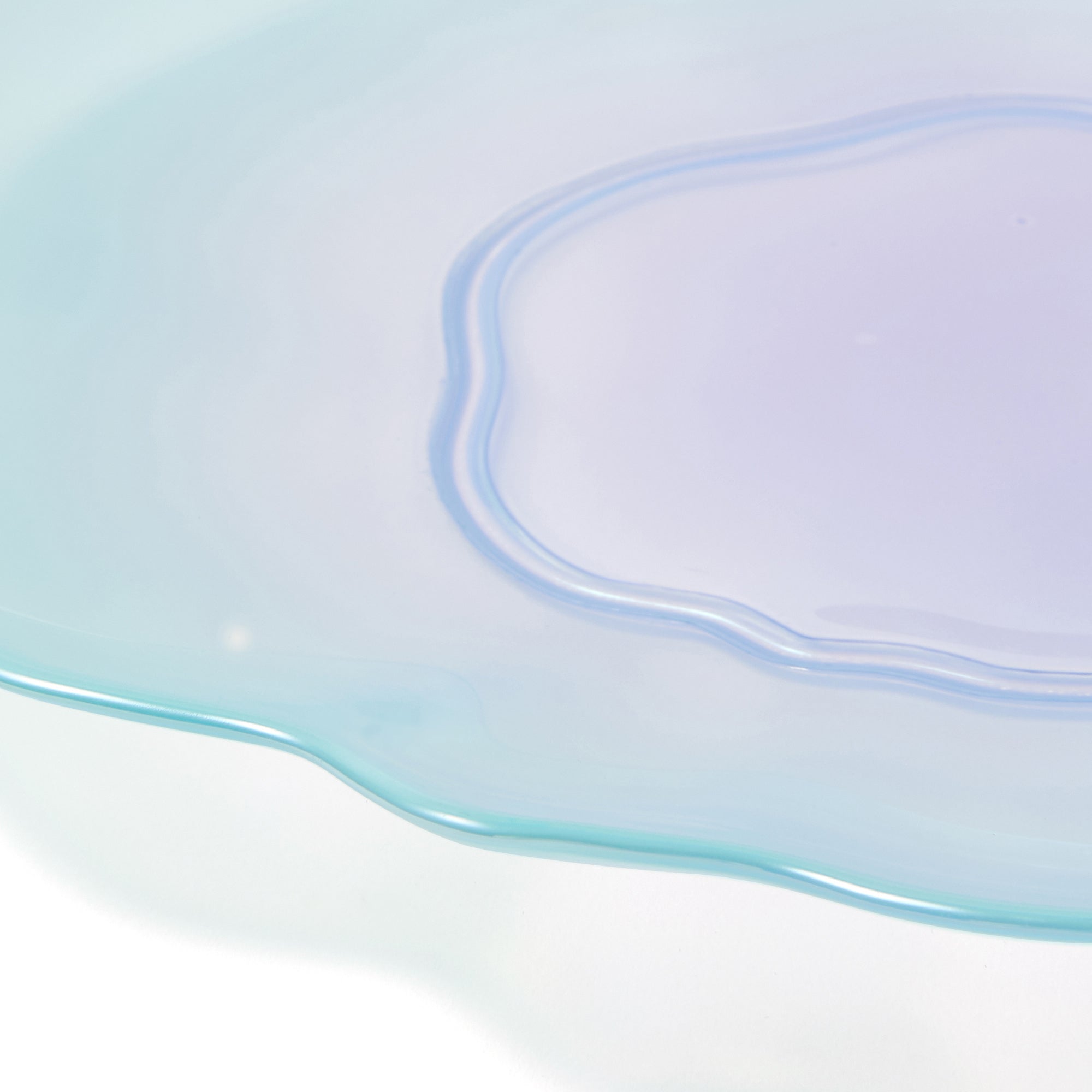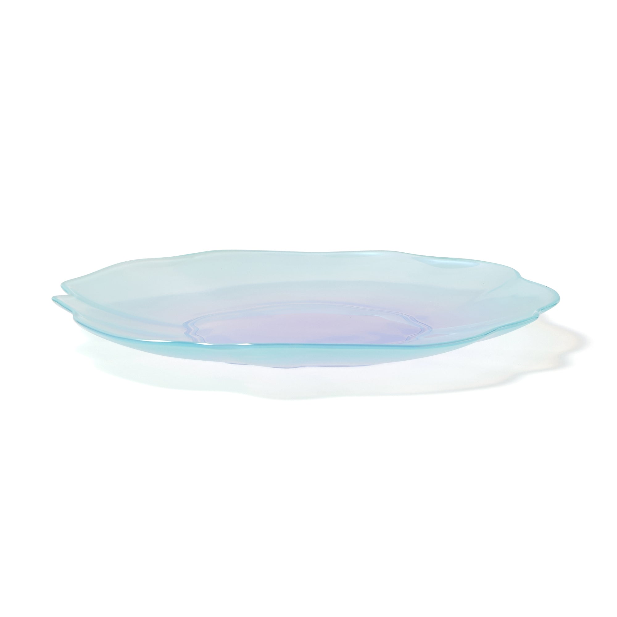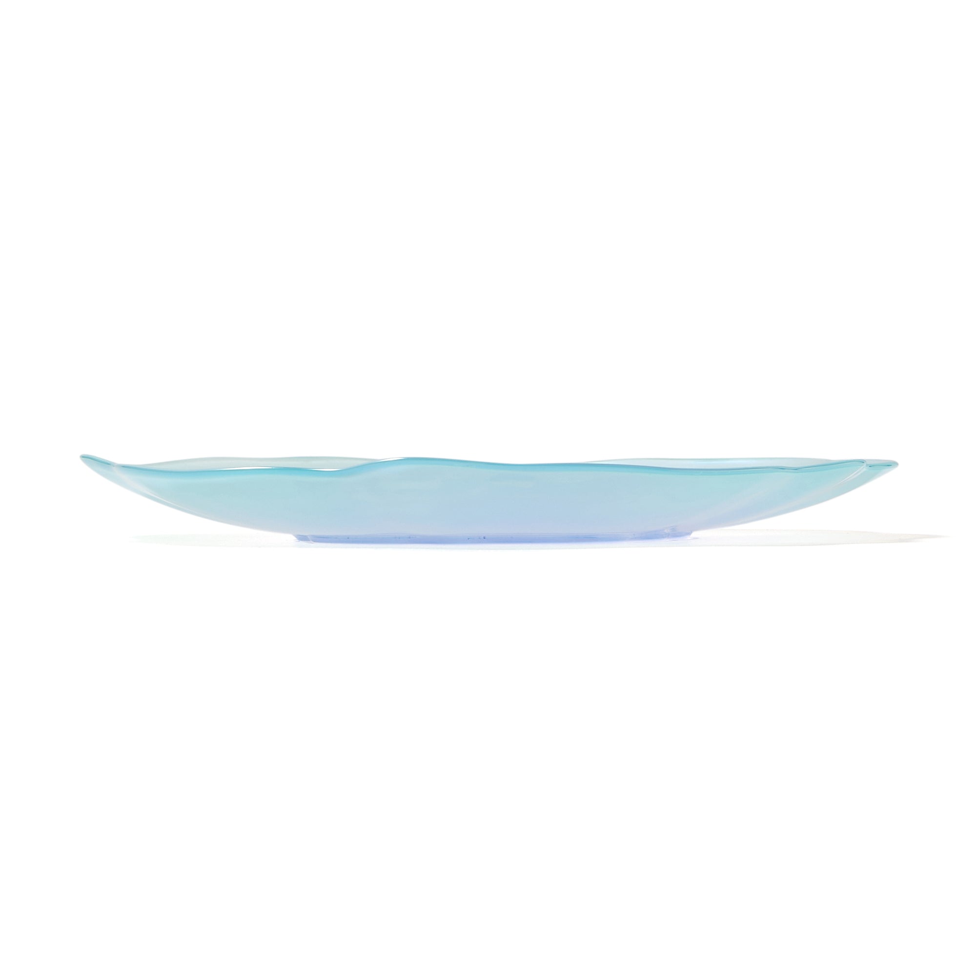 ゆらゆらとした波のようなフォルムのガラスプレートです。優しいグラデーションカラーが甘くて幻想的。仕上げに美しいオパール加工を施しました。スイーツを載せるのはもちろん、モーニングやブランチのワンプレートメニューにも使いやすいサイズです。