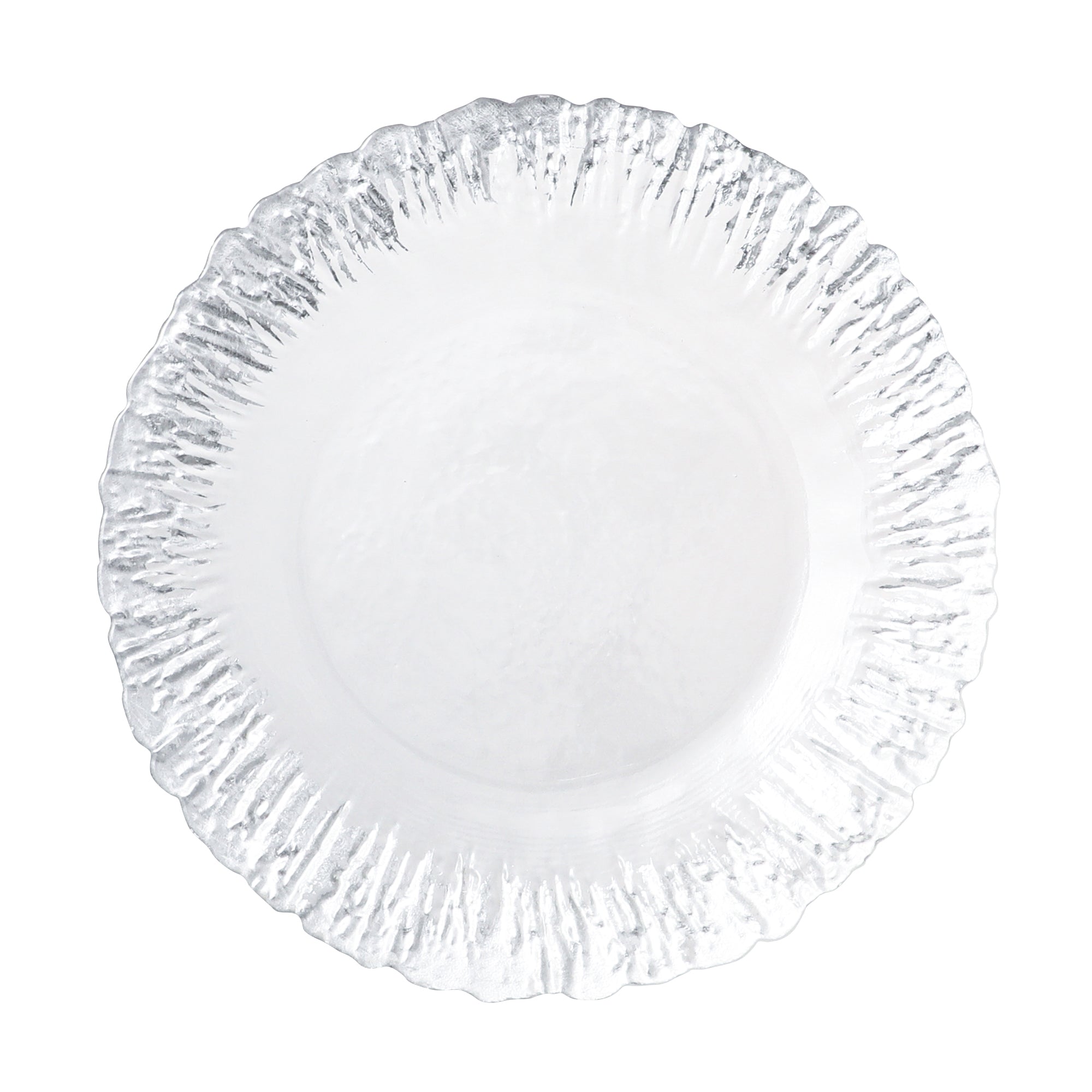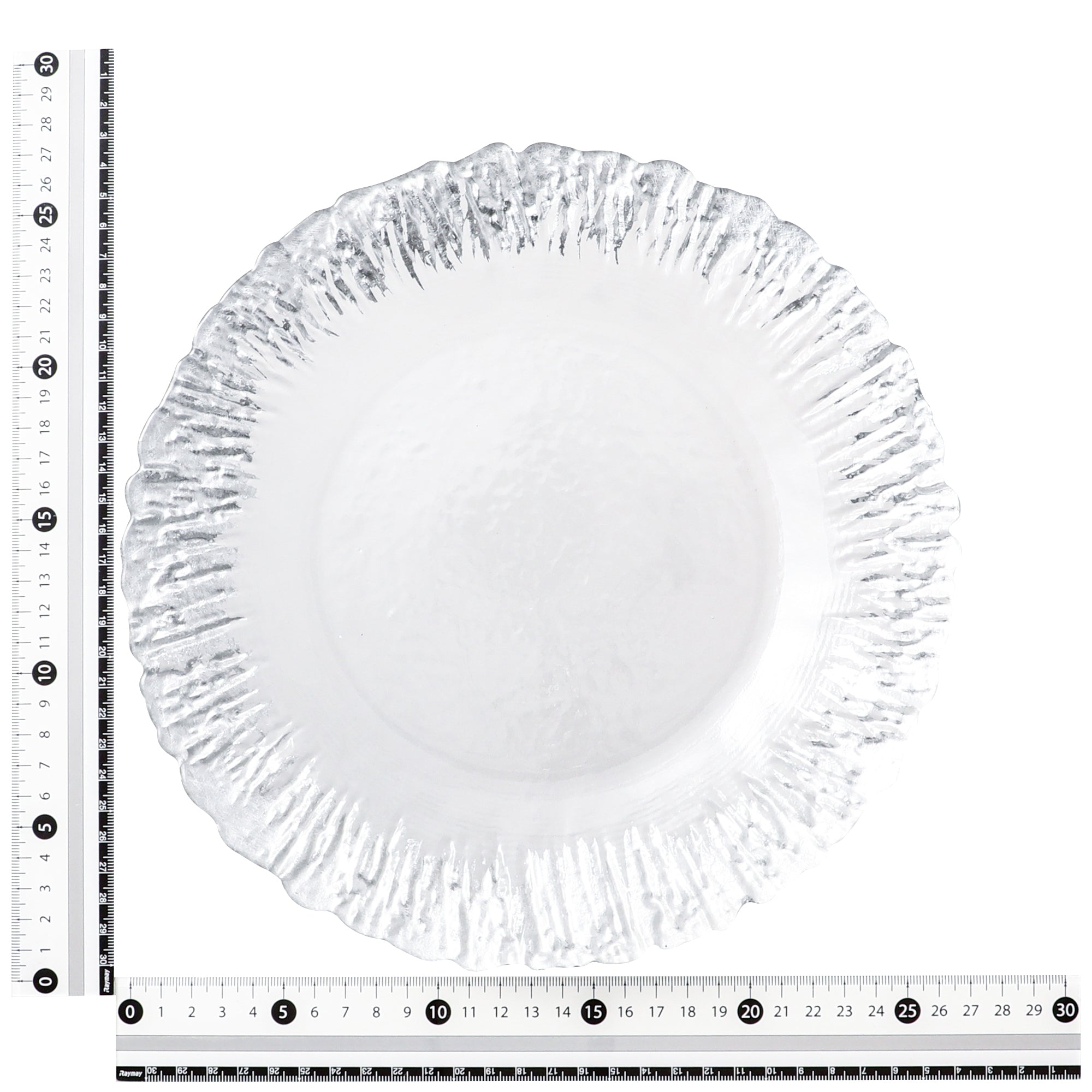 パーティーシーンにぴったりなガラスプレートです。裏面からきらめくカラーを吹き付けて華やかなデザインに仕上げました。サイズの異なるプレートを重ねたり、チャージャープレートとしてお使いいただけます。高級感溢れるテーブルコーディネートをお楽しみください。