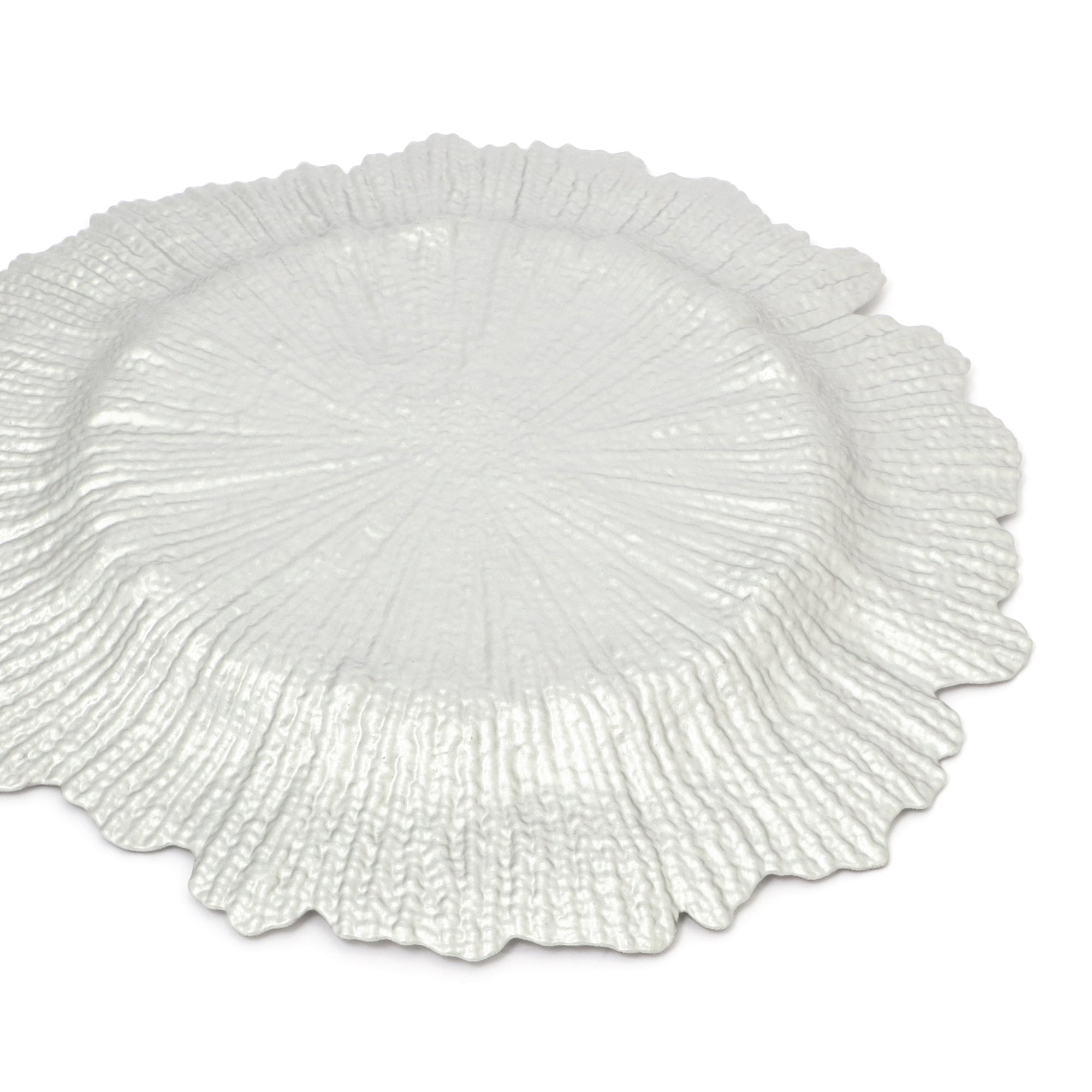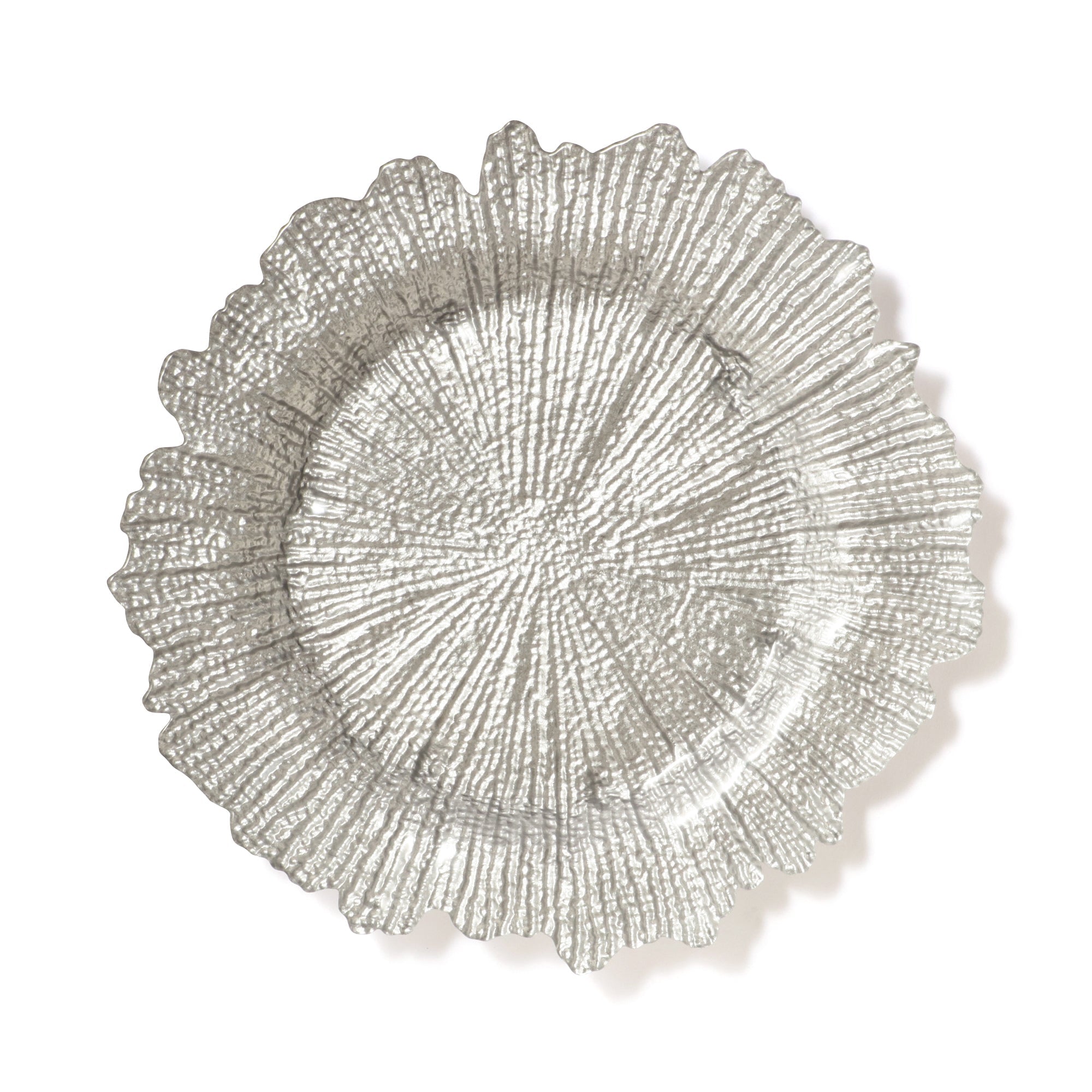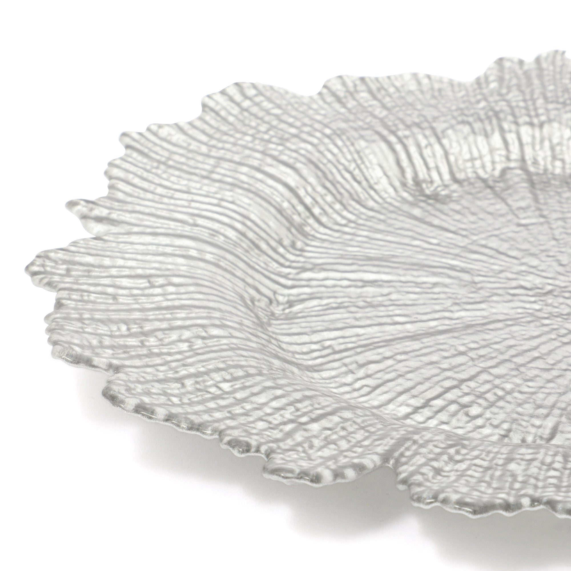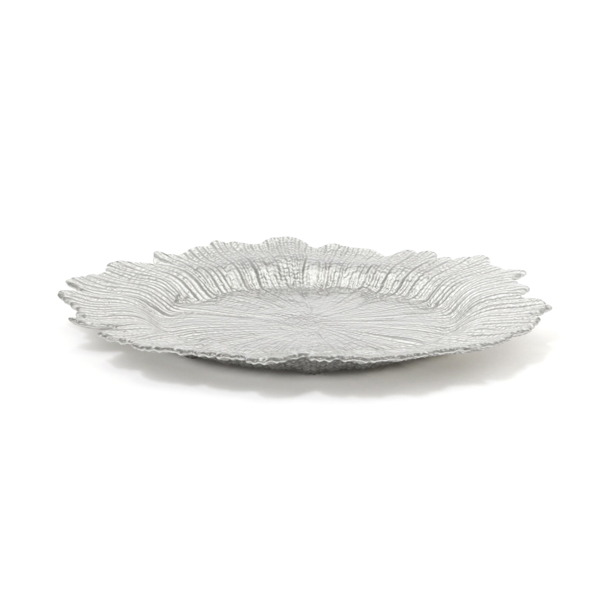 華やかなガラスプレートです。 他のプレートと重ねて使うとテーブルコーディネートがワンランクアップ。 おもてなしの場面でピンチョスを並べたり、ケーキを置いたり、様々な用途にお使いいただけます。