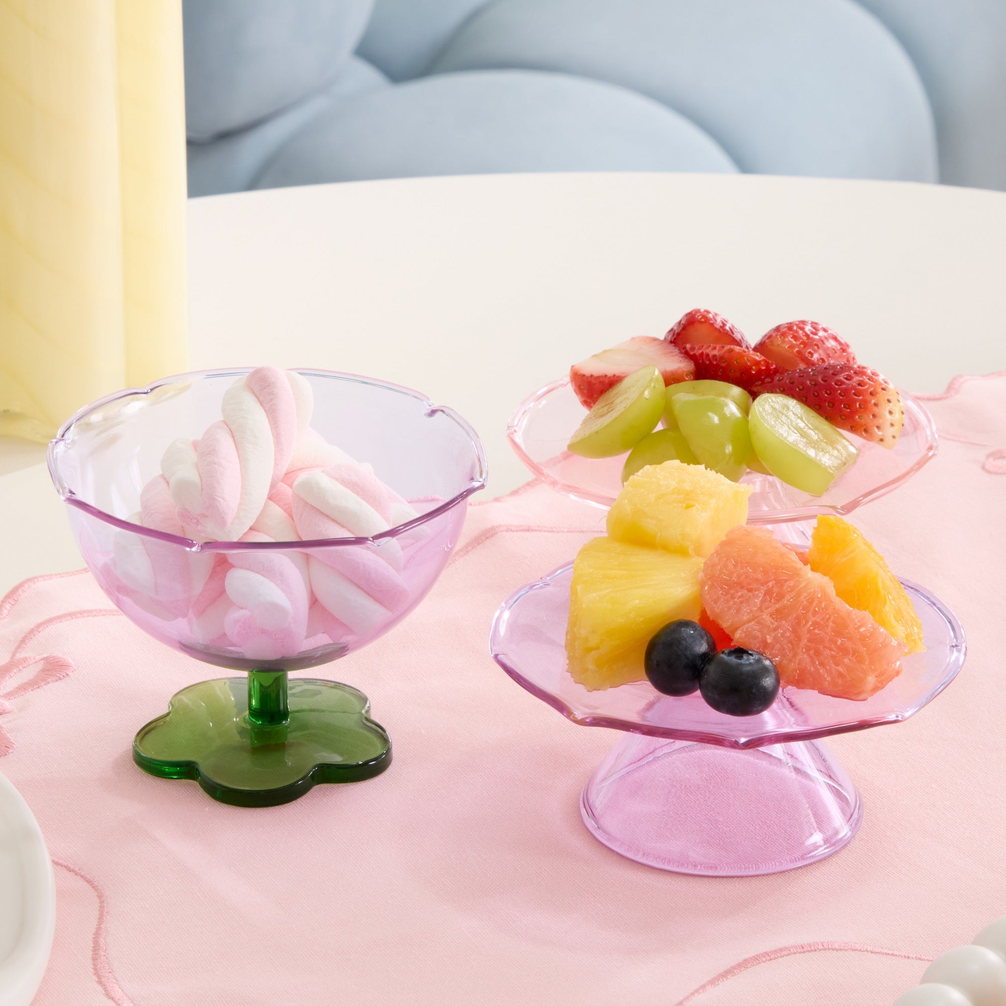 お花モチーフのガラスケーキスタンドです。人気のチューリップグラスや同シリーズのデザートグラスとセットでかわいらしいテーブルコーディネートが楽しめます。