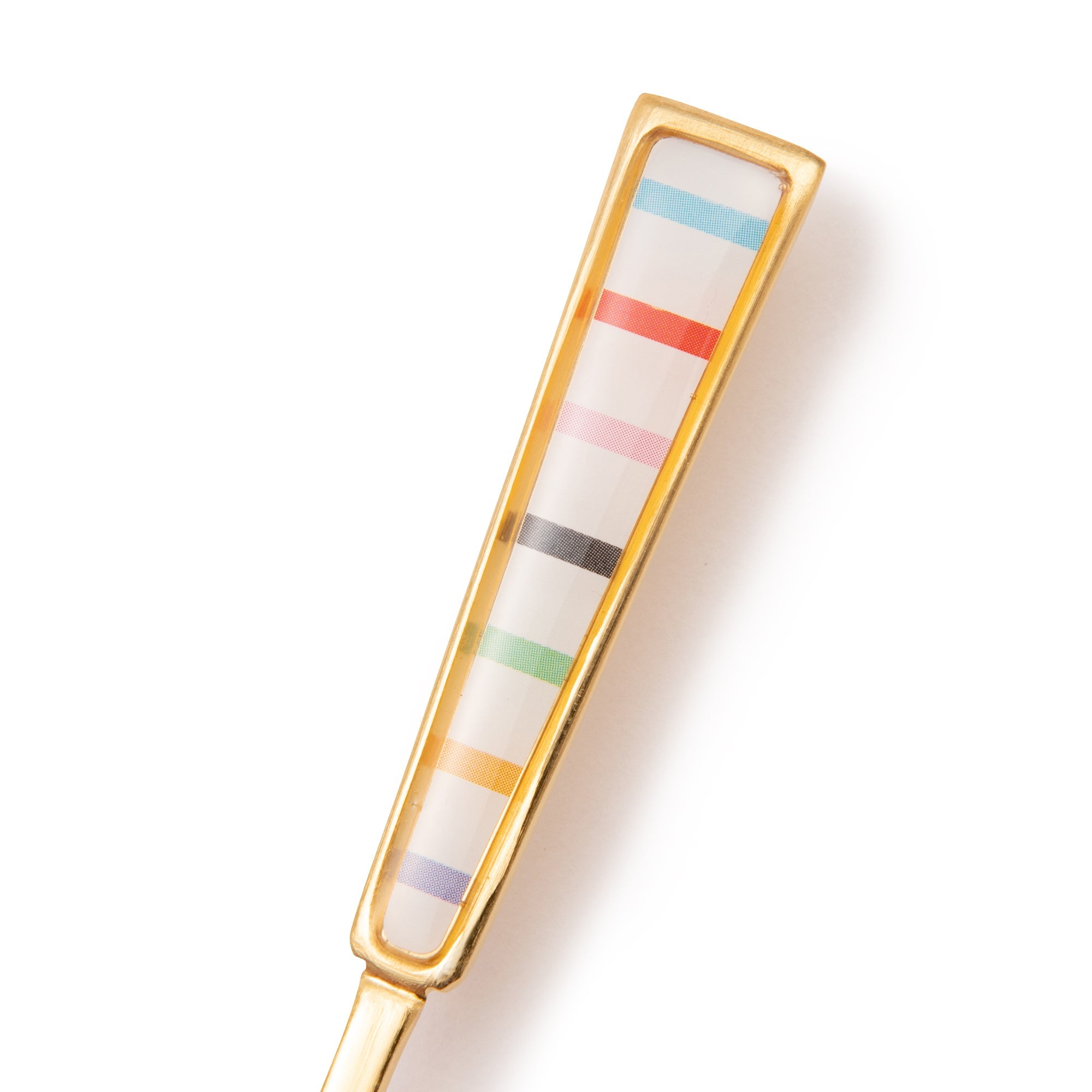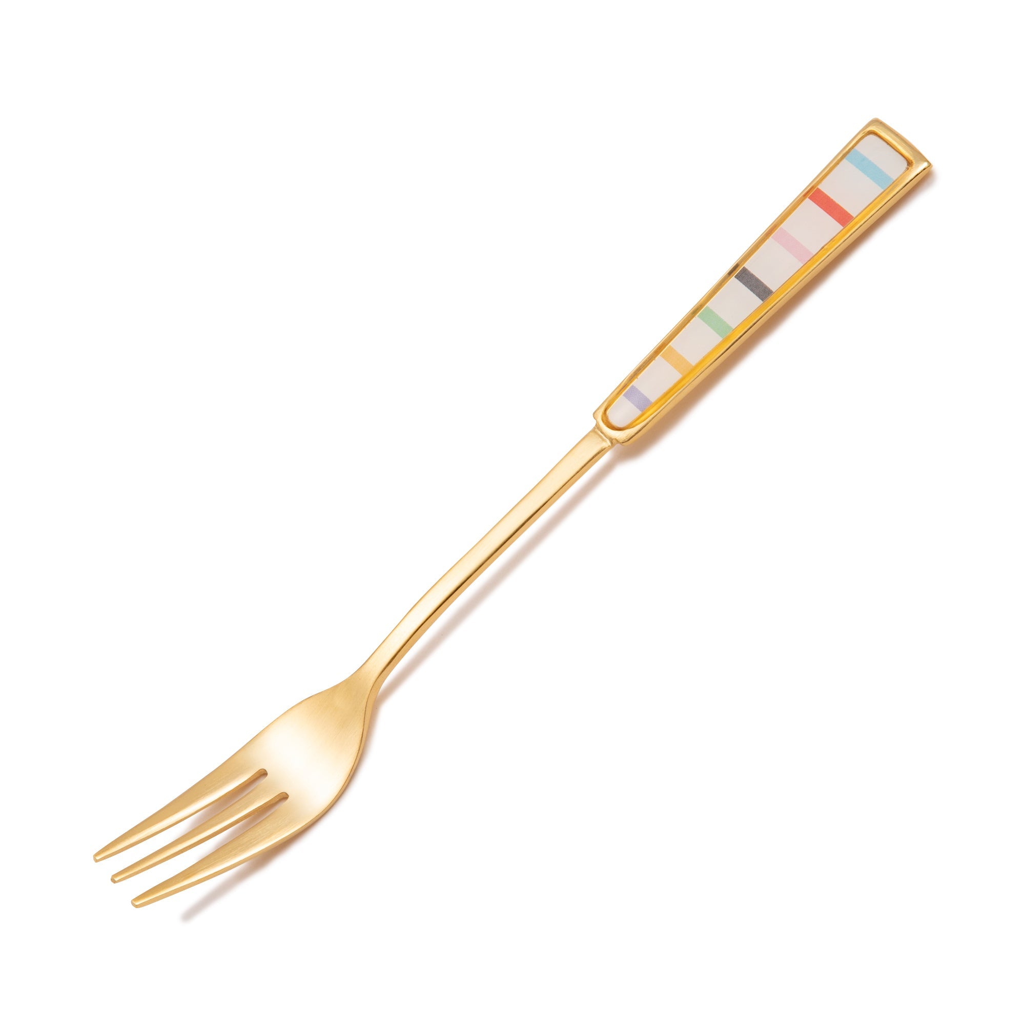 どんな食器ともなじみよくお使いいただける上品なマットゴールド仕上げのケーキフォークです。ハンドルに埋め込まれた鮮やかな絵柄が、ティータイムを華やかに彩ります。