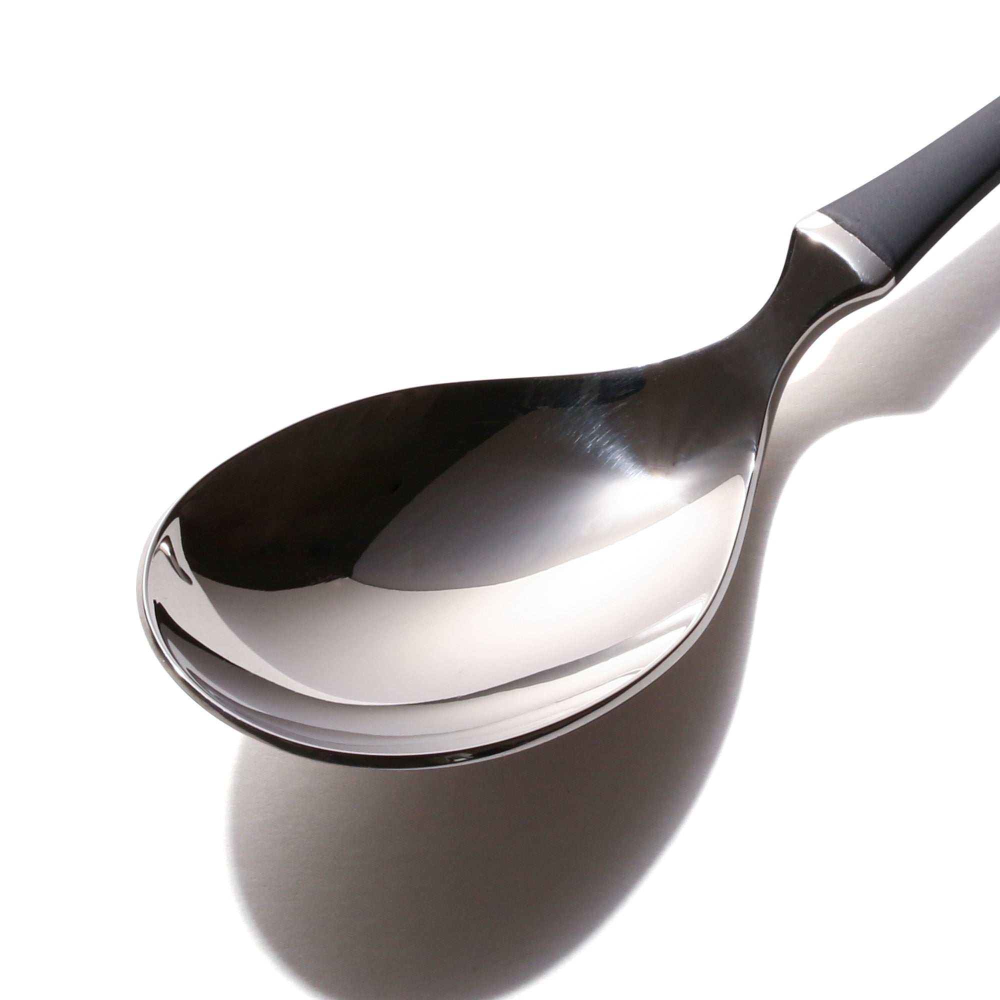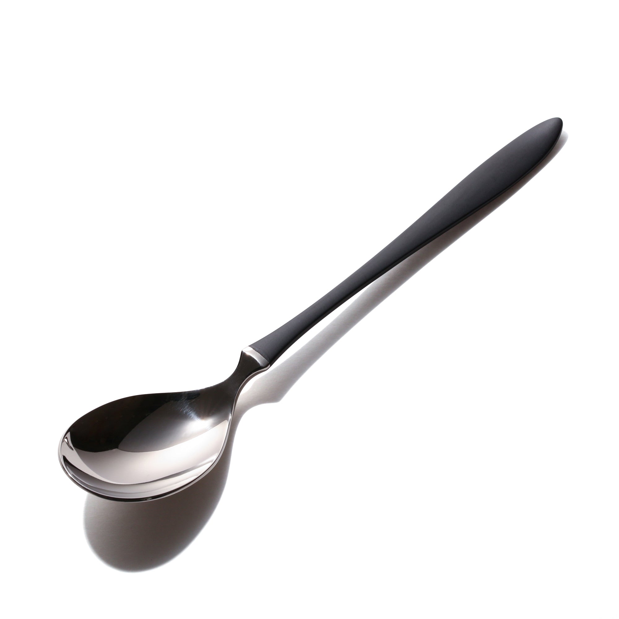 高級感のある仕上げが特徴のディナースプーンです。シルバーとブラックのコントラストが美しく、毎日の食卓を華やかにしてくれます。料理をワンランク上に見せてくれるため、大切な人をおもてなしする際のカトラリーとしてもおすすめです。スプーンの柄のカラーは、シルバーと相性が良いマットブラックです。上品な質感を持つマットブラックは、引き締まった印象を与えます。デザインは手にフィットするように柄の部分から柄尻にかけて太くなっています。食材をすくうツボの部分が滑らかなデザインになっているため、口当たりの良さも特徴です。柄の部分が長めのため、男女問わず使いやすいデザインとなっています。カトラリーレストにピッタリ収まるデザインのため、一緒に使用することでさらに食卓を華やかにしてくれます。※商品画像はイメージです。実際はディナースプーンのみのお届けとなります。
