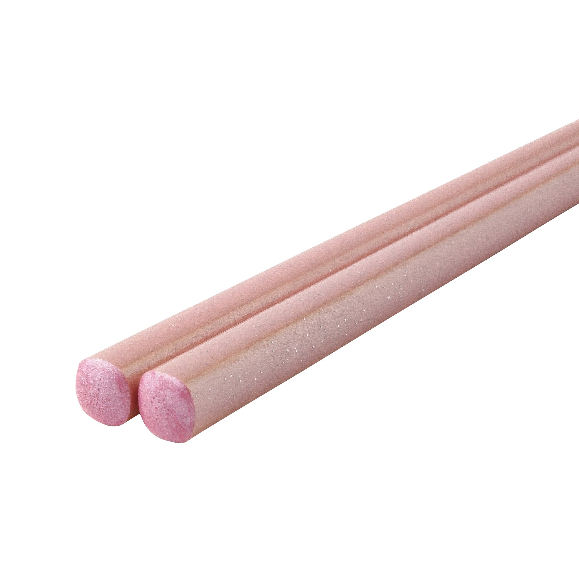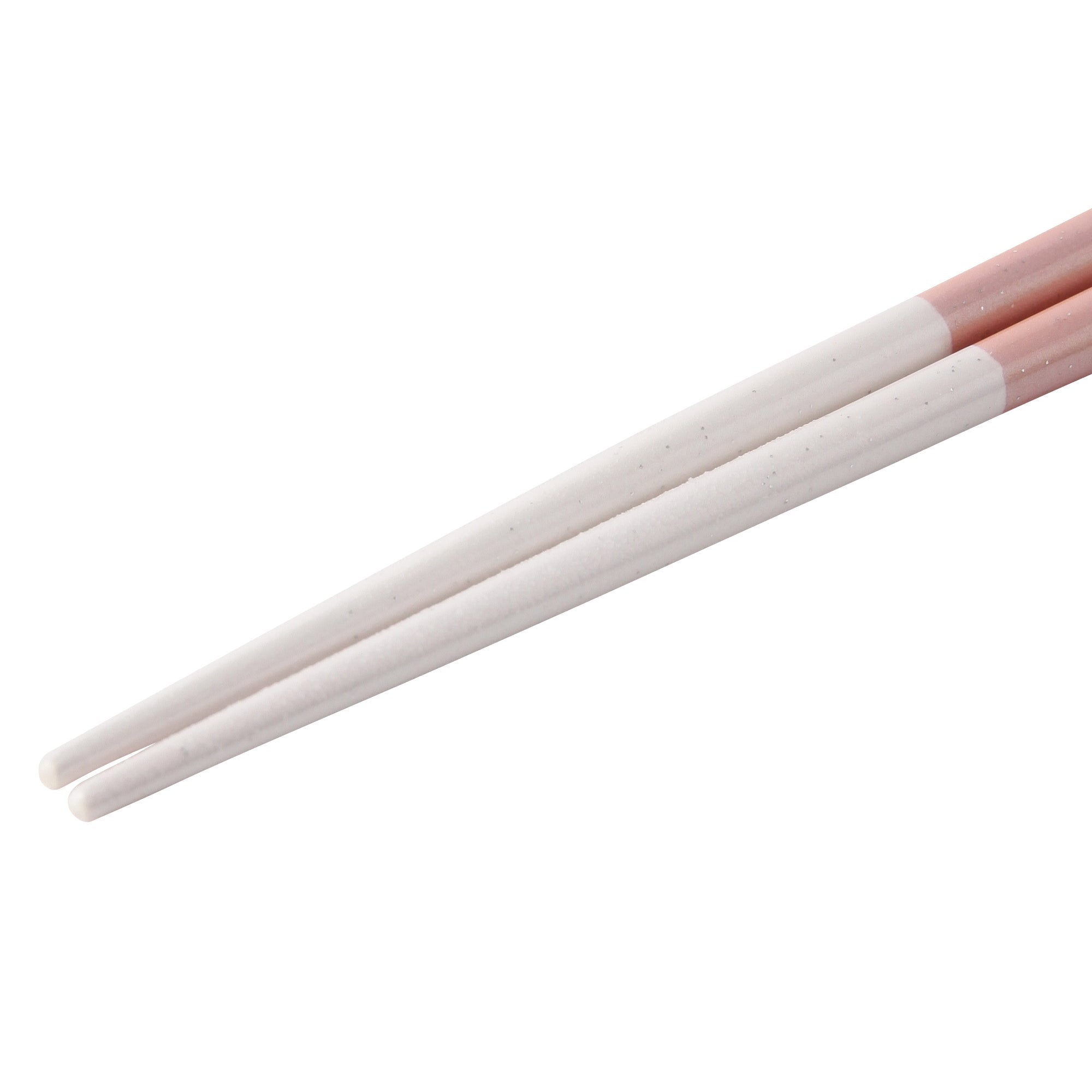 パール加工に小さなラメをちりばめた上品なデザインのお箸。箸先にすべりにくい加工がされています。洋食器にもあわせやすいデザインです。一点一点ハンドメイドのため色むら等ございますが、風合いとしてお楽しみ下さい。