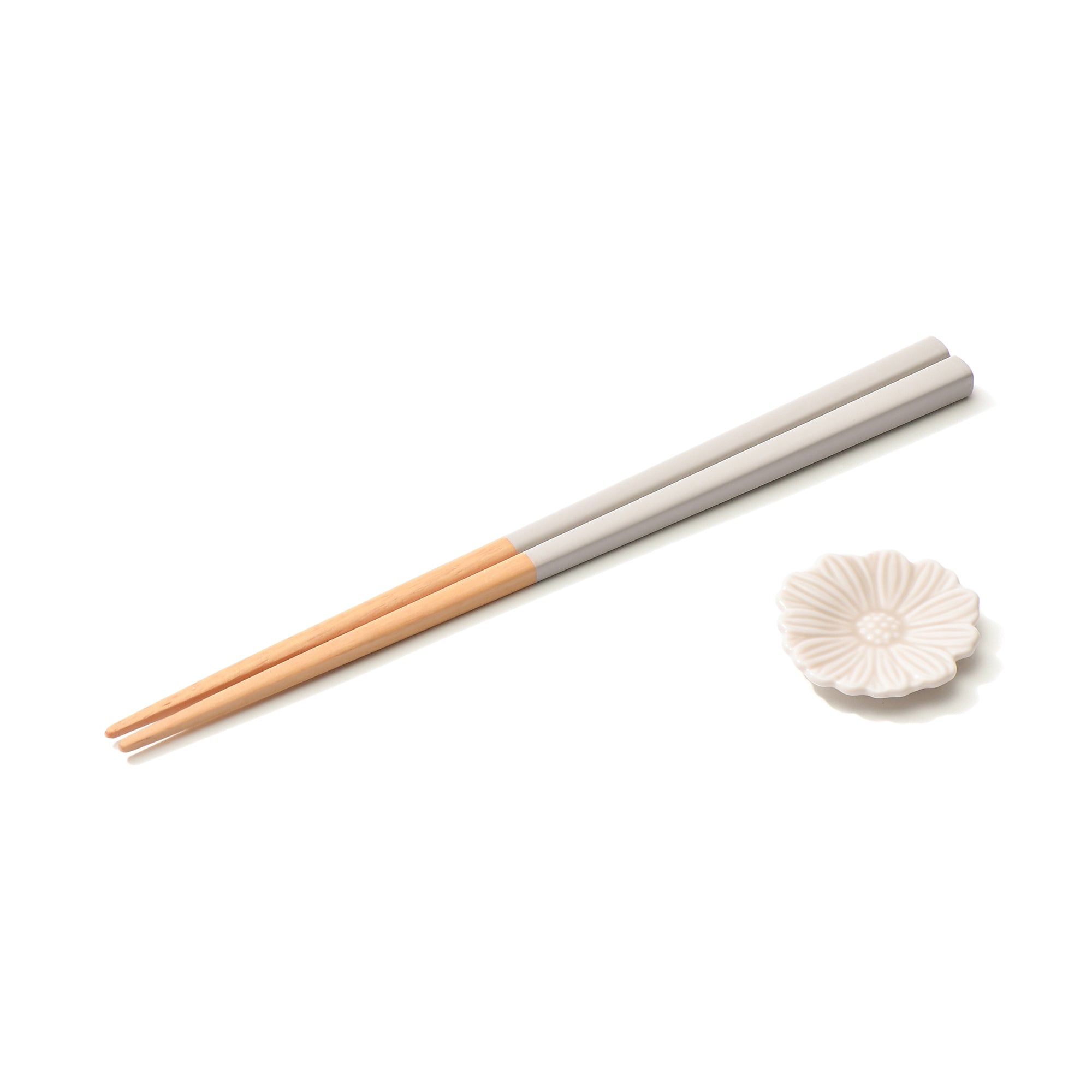 一人用の箸&箸置きのギフトセットです。お箸と箸置きのカラーを合わせた可愛らしいデザインで、パッケージ入りなのでちょっとしたギフトにおすすめ。食器にプラスしてお祝い事など、しっかりとしたギフトにしても喜ばれるアイテムです。お箸の先を四角形にしザラザラ加工を施しているので、ものを掴みやすい仕様。お箸は食器洗浄機も使えて普段使いしやすいので自分用にもおすすめです。
