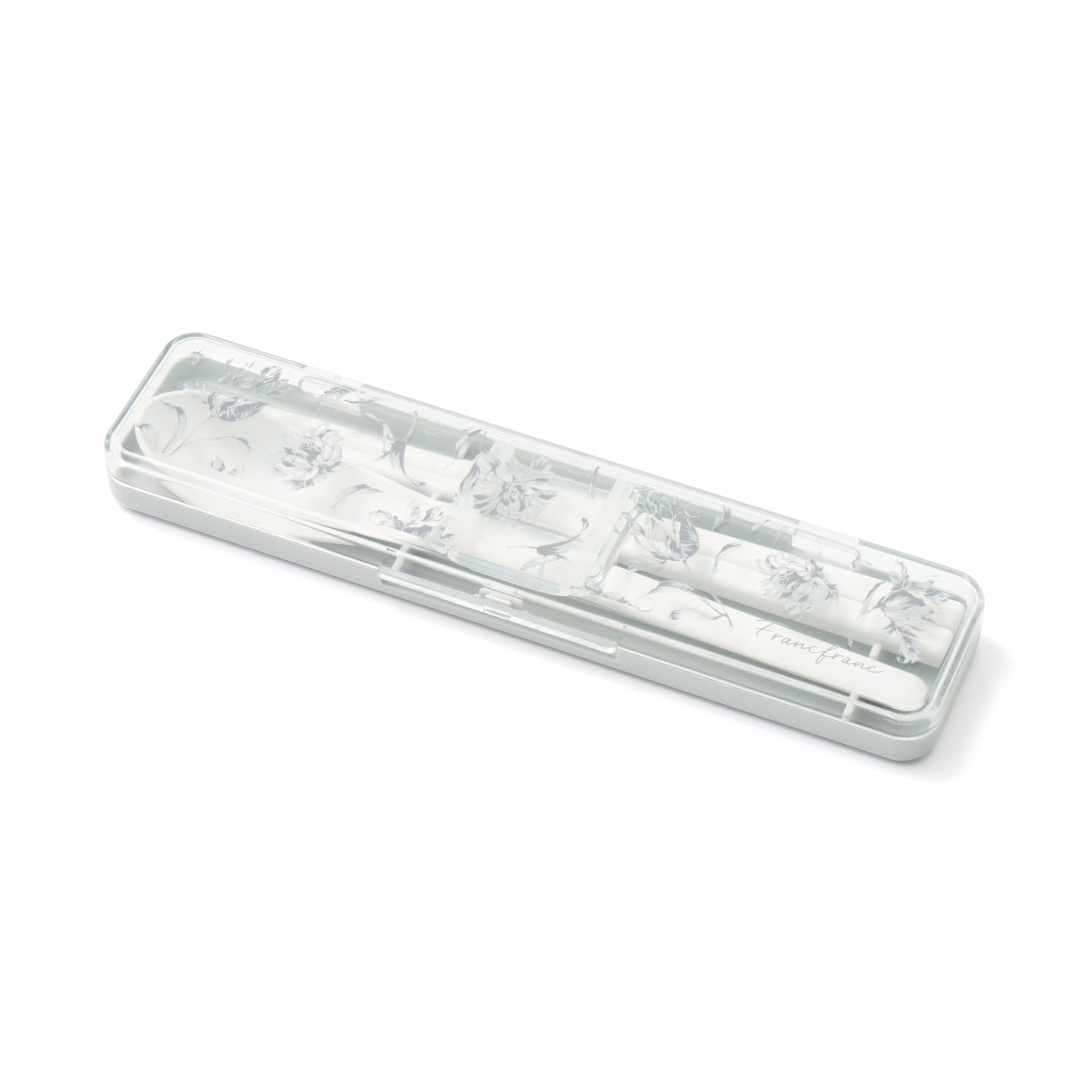 可愛い柄の入ったケース付きランチ箸&スプーンのセットです。 ランチボックスやランチクロスなど、同じ柄のアイテムと揃えてランチタイムをお楽しみください。 カチャカチャと中でお箸とスプーンが鳴らない仕様になっています。 日本製で抗菌加工がついており、食器洗浄機にも対応しています。