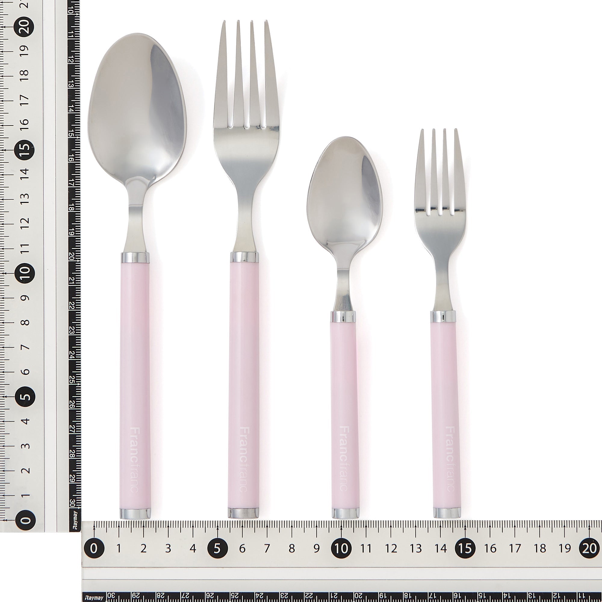 テーブルが華やかになるカラフルなカトラリーセットです。ディナースプーン、フォーク、ティースプーン、ケーキフォークが各1本ずつ入っており、新生活を始める方におすすめのセットです。