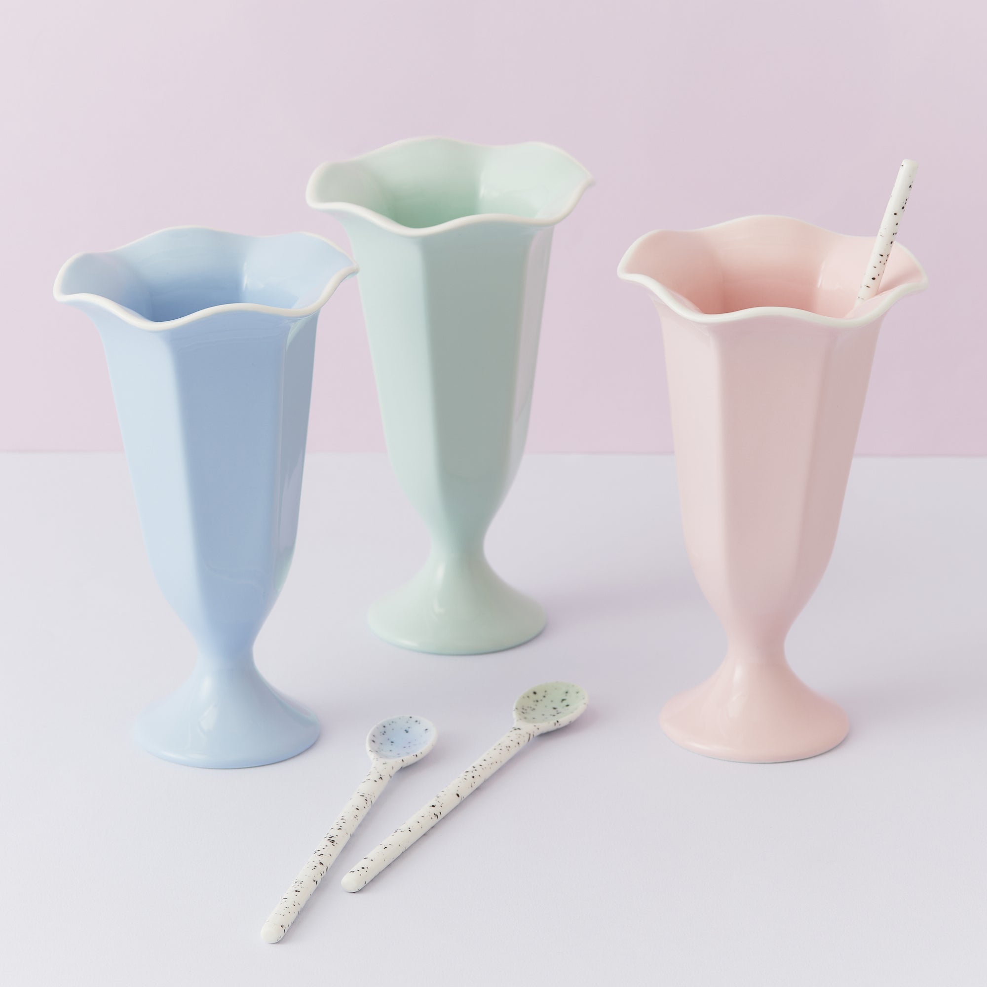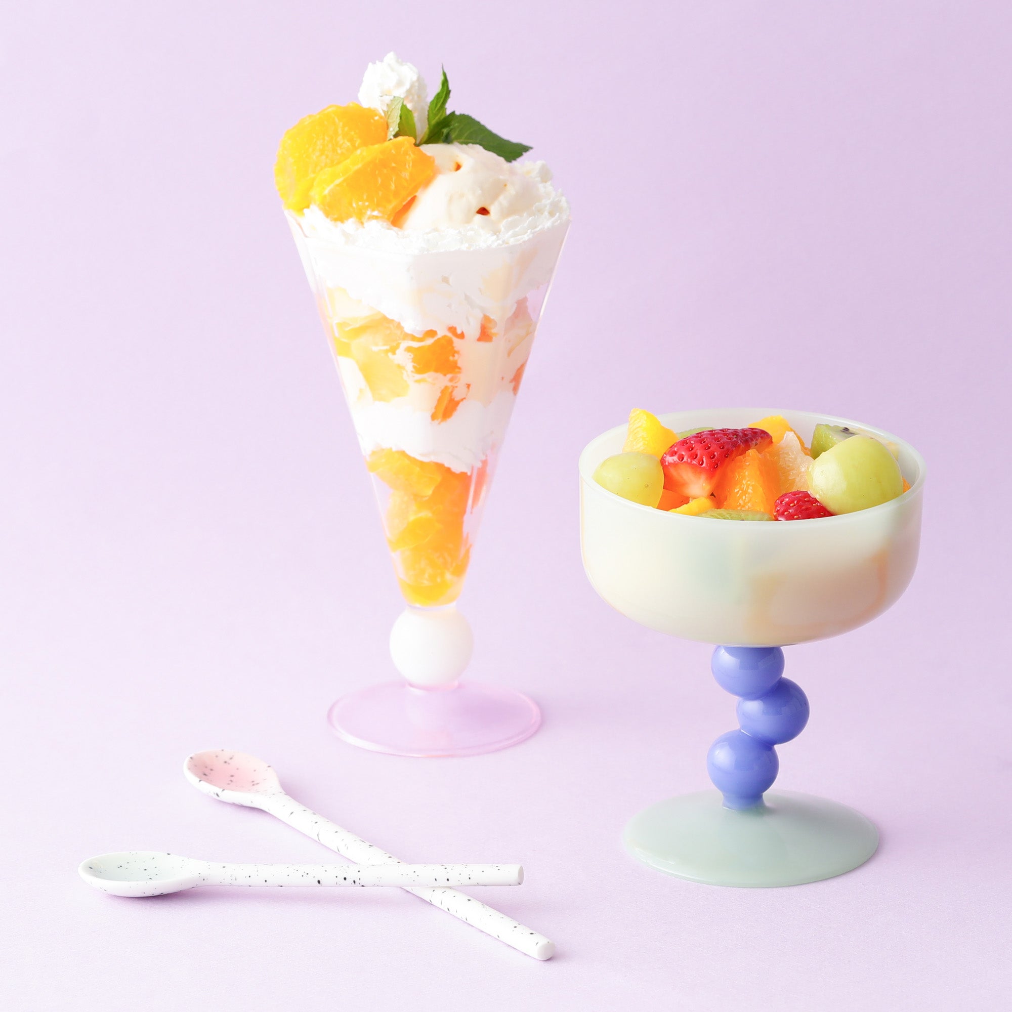 セラミック パフェタンブラーに合わせて使いたい、パフェスプーンです。スプラッター柄をあしらい、バニラアイスにパフェソースがかかったイメージに仕上げました。デザートスプーンとお揃いで揃えるとより可愛らしいデザートタイムが楽しめます。