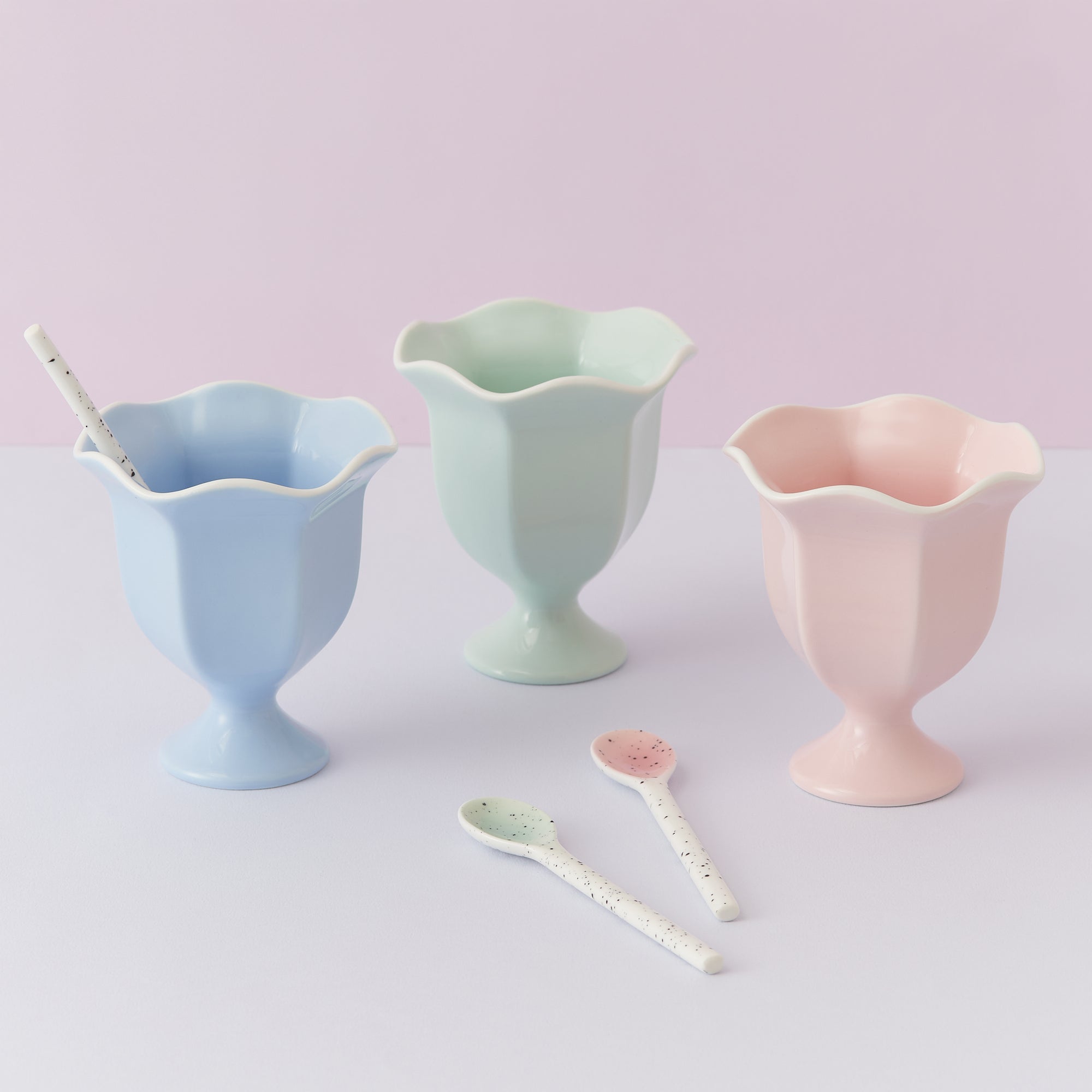 セラミック パフェタンブラーに合わせて使いたい、デザートスプーンです。スプラッター柄をあしらい、バニラアイスにパフェソースがかかったイメージに仕上げました。パフェスプーンとお揃いで揃えるとより可愛らしいデザートタイムが楽しめます。