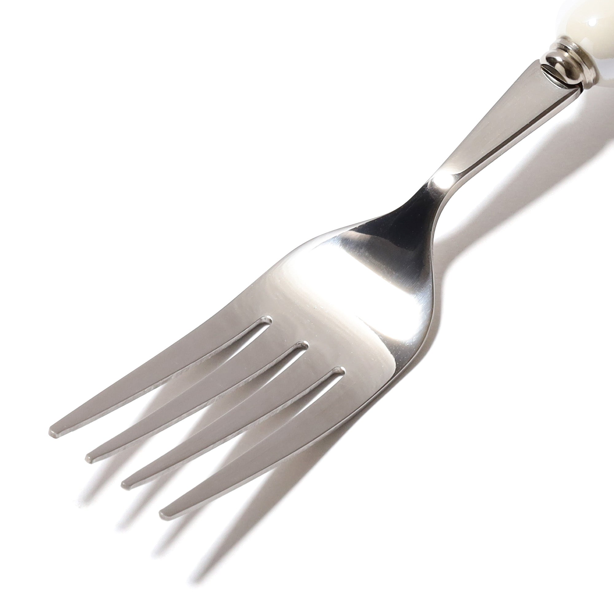 個性的なハンドルのデザインが華やかなディナーフォークです。セラミックの持ち手が高級感あふれるテーブルコーディネートを演出。セラミック製のパールシリーズの食器と合わせれば、パーティーシーズンらしい華やかなテーブルコーディネートが楽しめます。