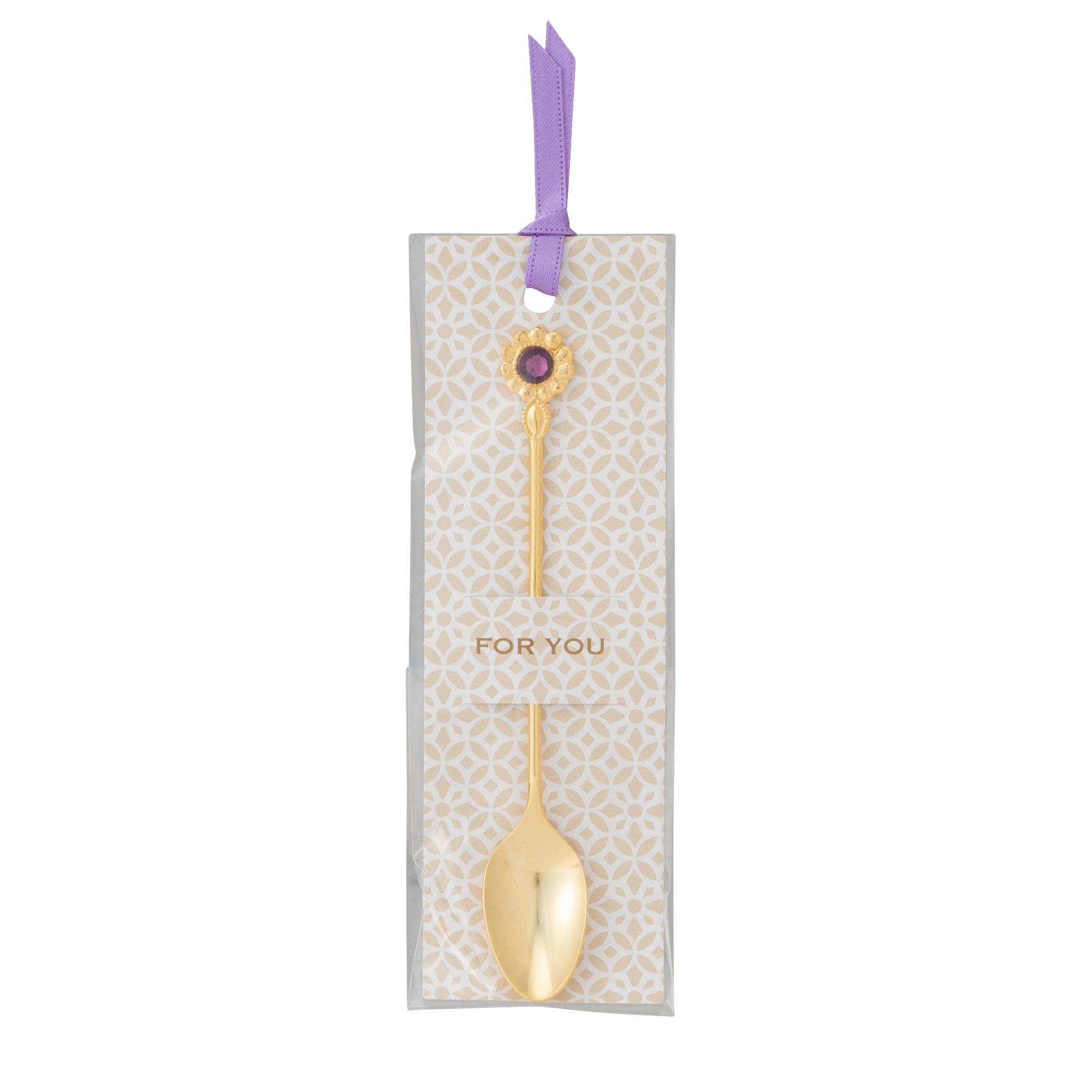 キラッとしたラインストーンが目を引く、上品なデザインのティースプーンです。「FORYOU」というメッセージ入りのパッケージは、しおりのようなデザインで、マグカップやグラスとセットでのギフトにおすすめです。
