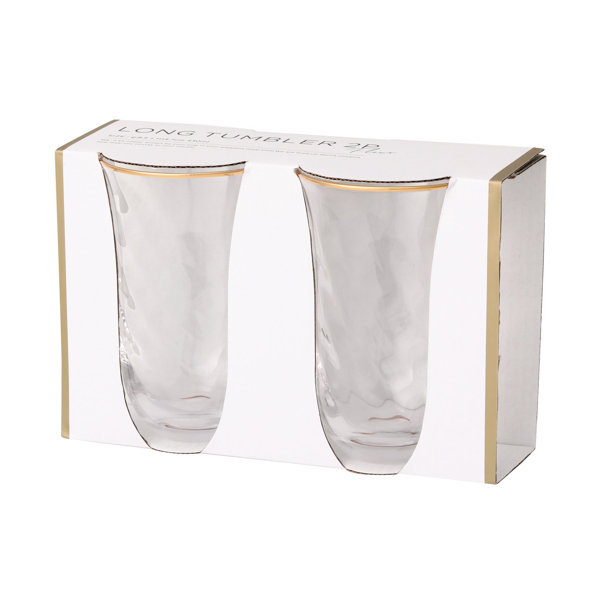 新生活にぴったりなロンググラス2個セットです。Francfranc人気の形状とシンプルなカラーがどんな飲み物にも合わせやすいデザイン。430mlとたっぷりめの容量も嬉しいポイントです。リムのゴールドがほどよく高級感を演出し、普段使いはもちろん、来客時にも活躍してくれるアイテムです。