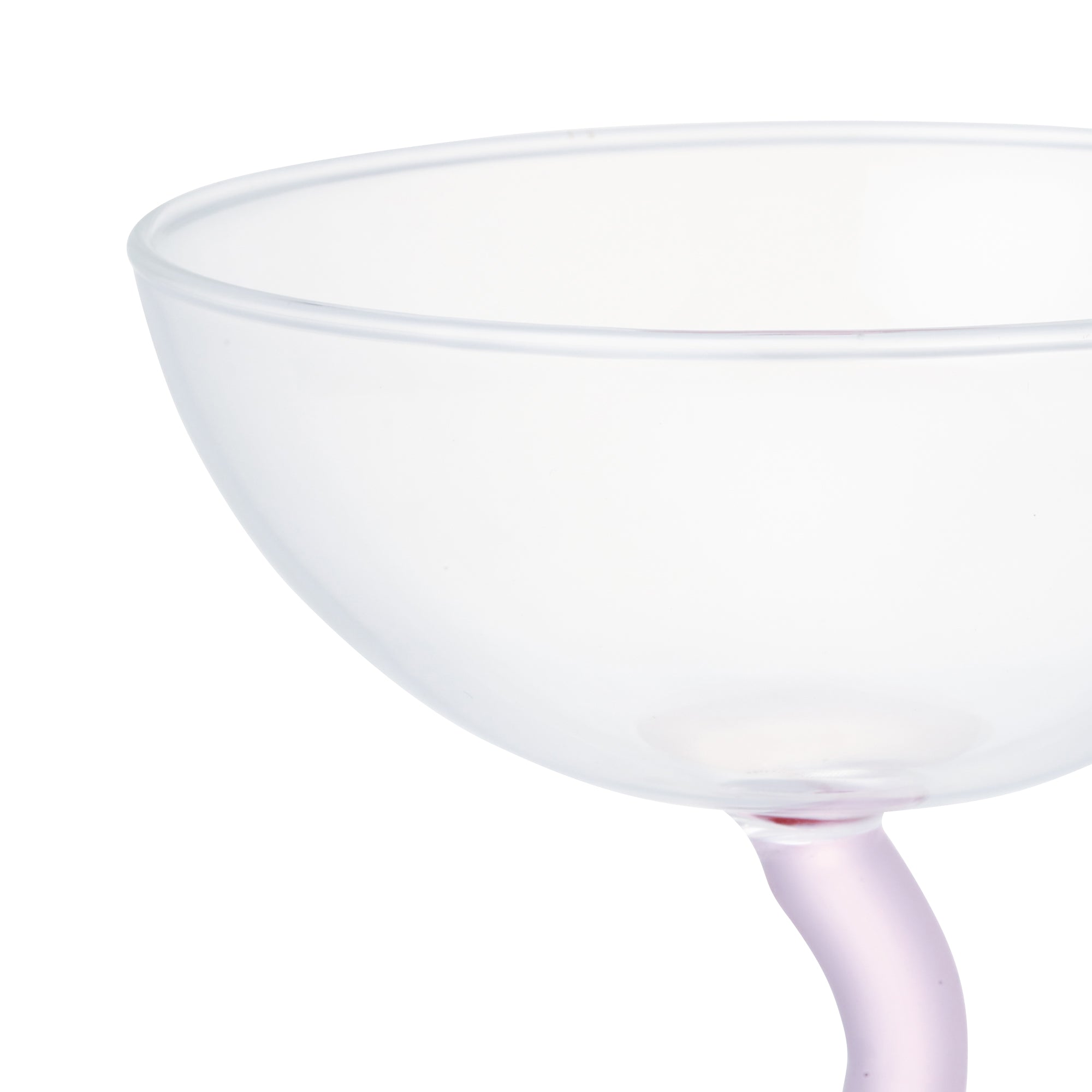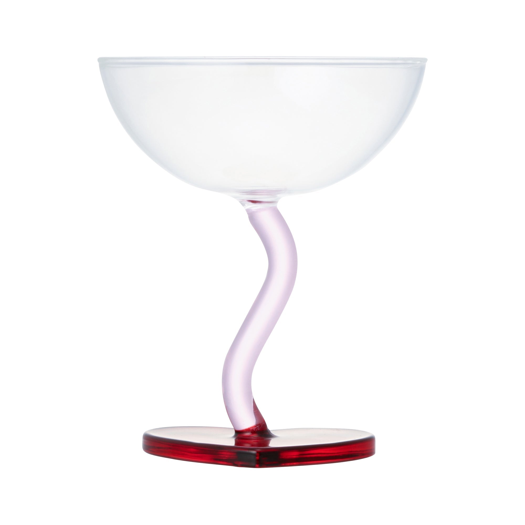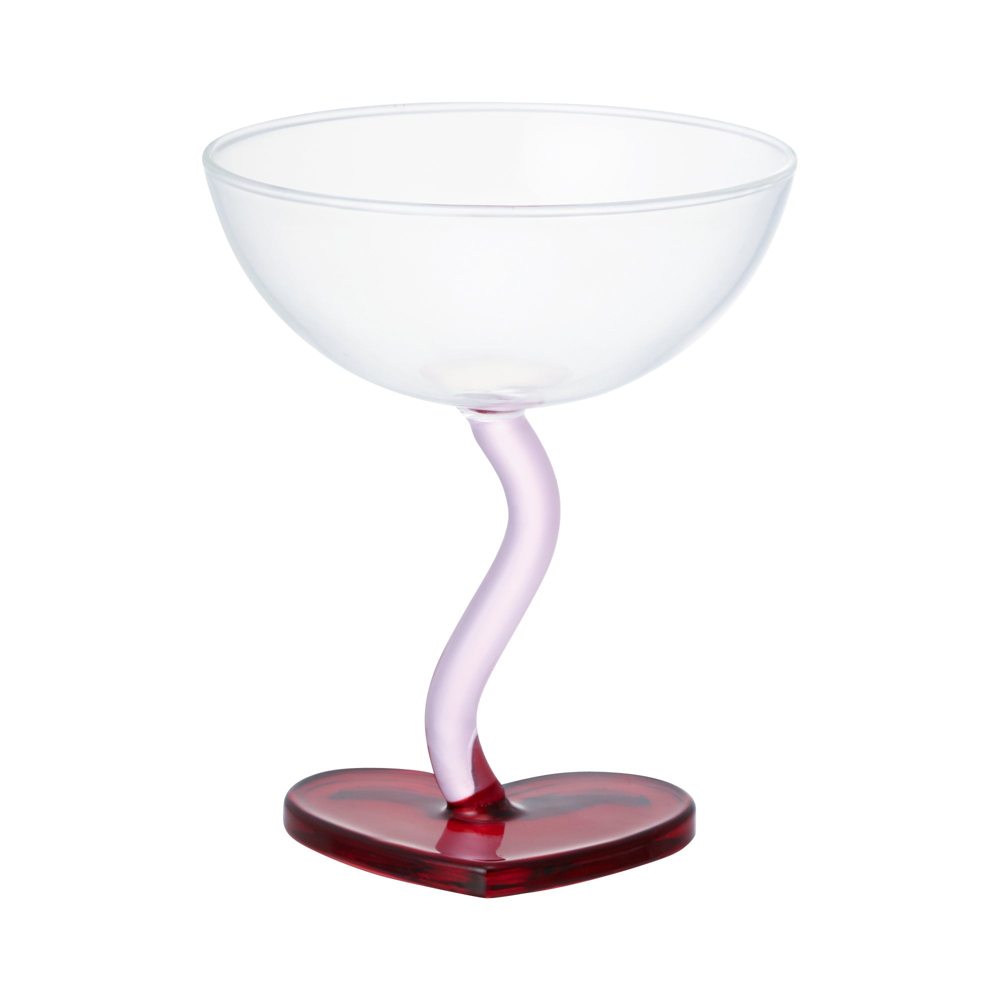 ハートモチーフがトレンド感いっぱいのデザートグラスです。 カラフルなハートとうねうねとしたステムのデザインがキュート。カクテルやシャンパンを飲むのにぴったりなクープ型のボウルを小ぶりで可愛いらしいイメージに仕上げました。 耐熱ガラス素材なので温かい飲み物も入れられます。