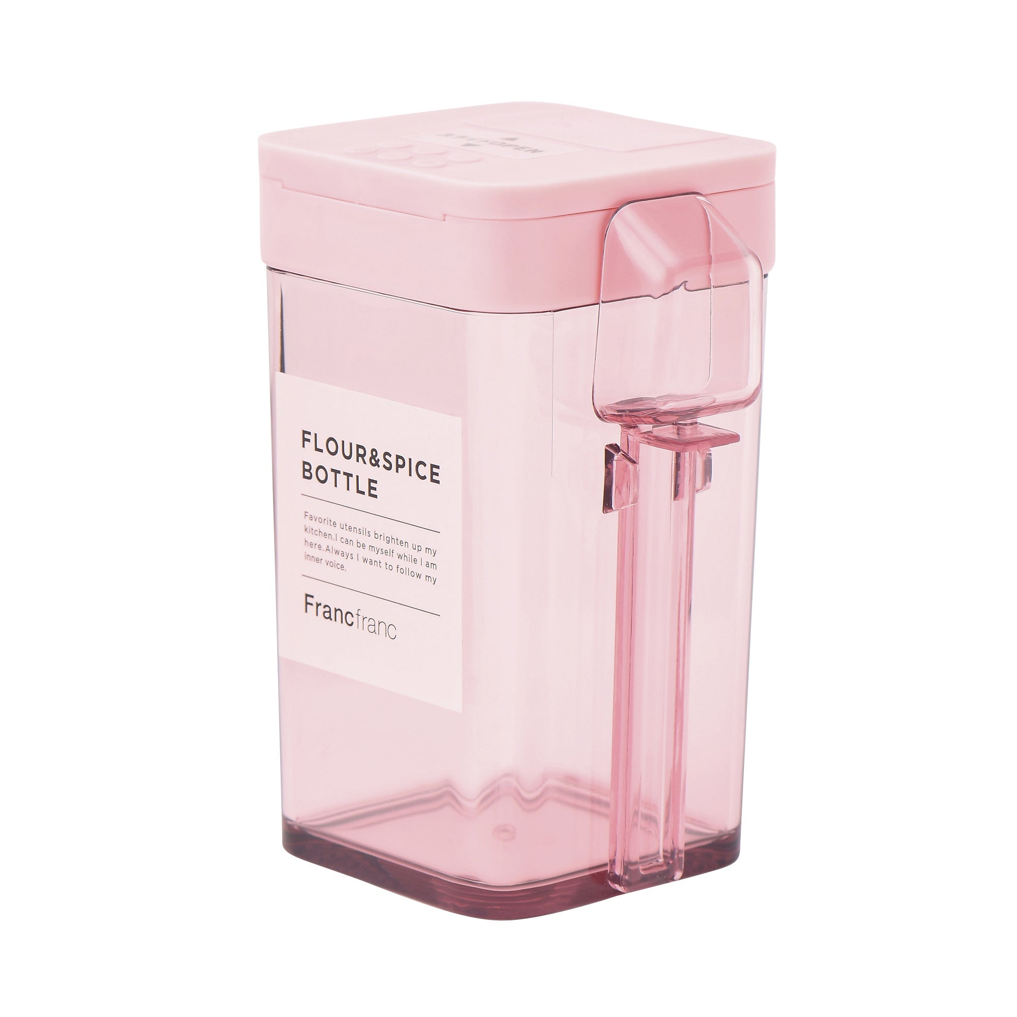 Francfrancらしい色合いの小麦粉&スパイスボトルです。使いたい量が片手で調節できる調味料保存容器です。前後にフタをスライドさせ、分量を選んで出すことができます。さらさらタイプの小麦粉やスパイスなどを簡単ふりかけ。