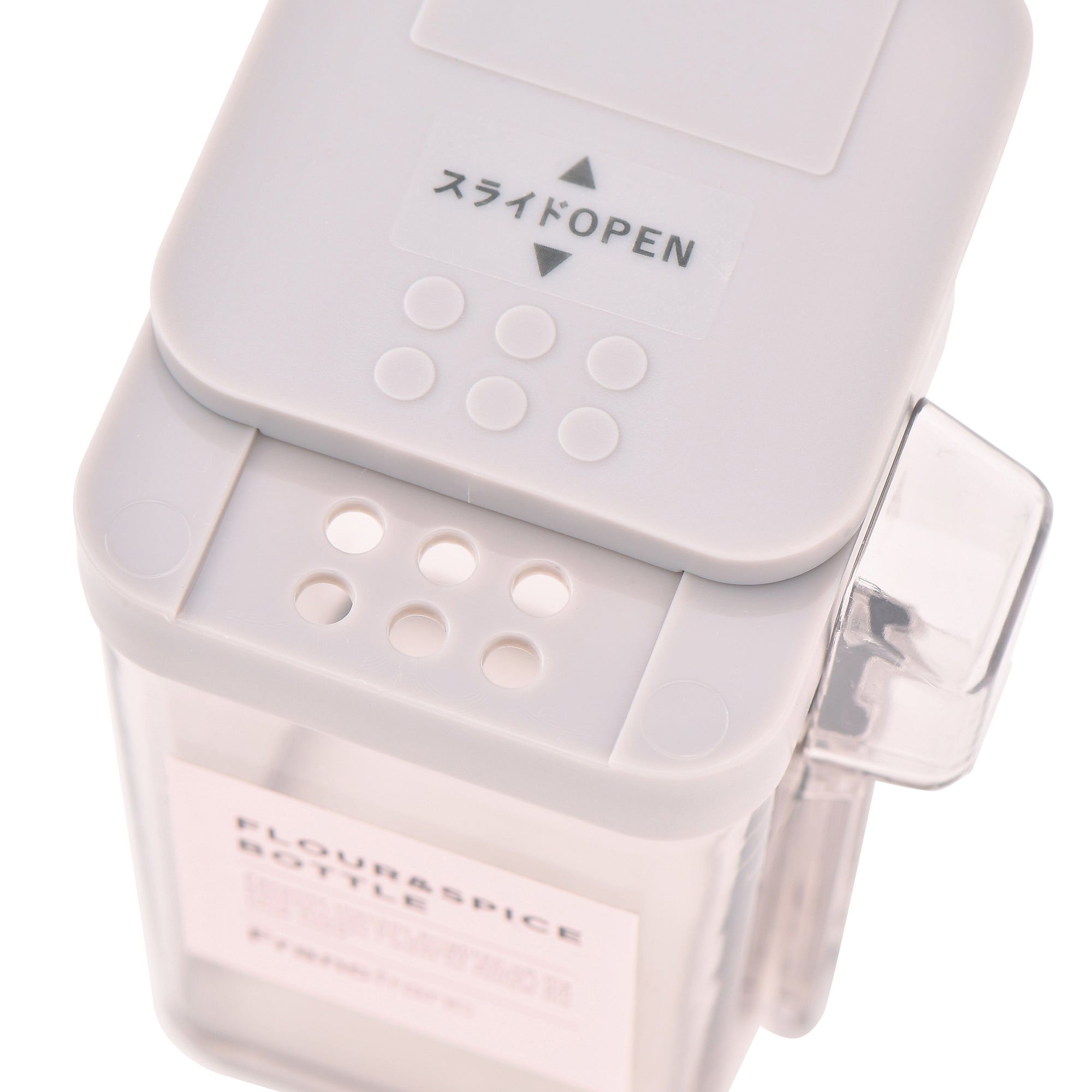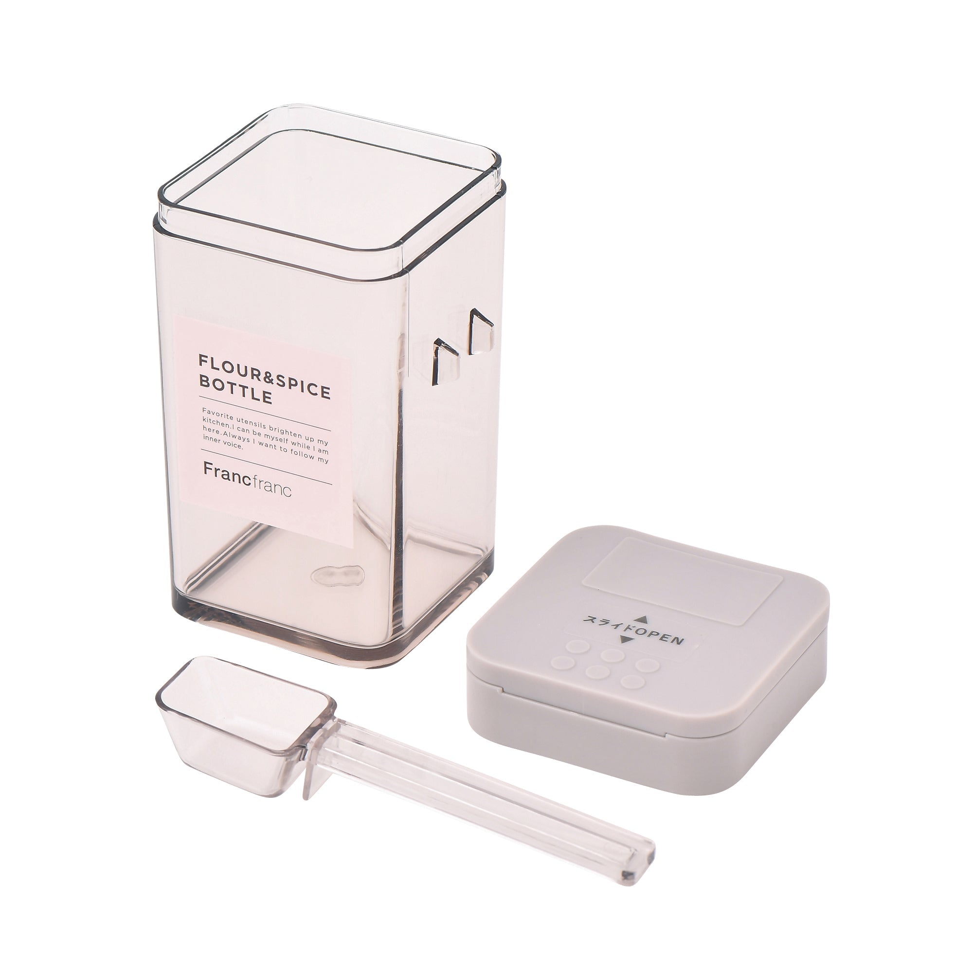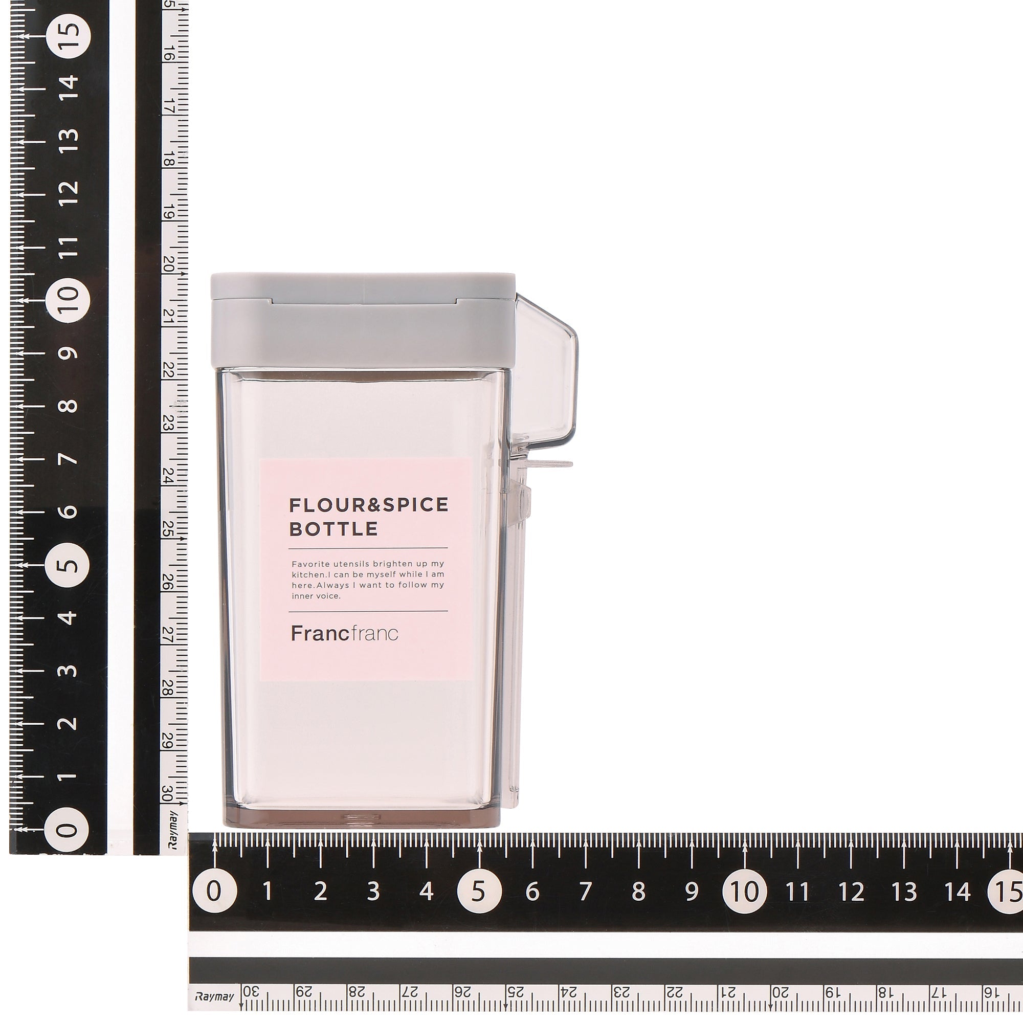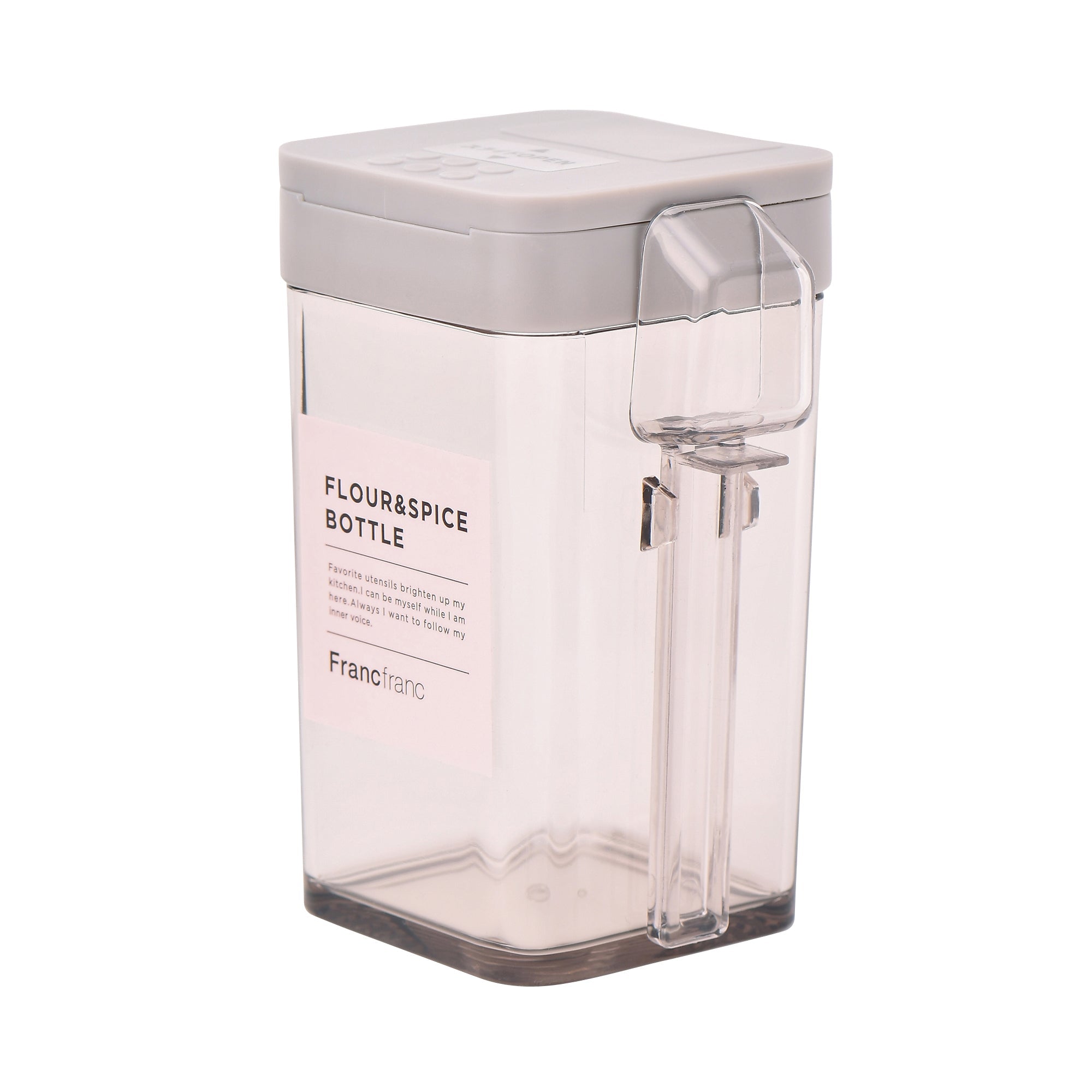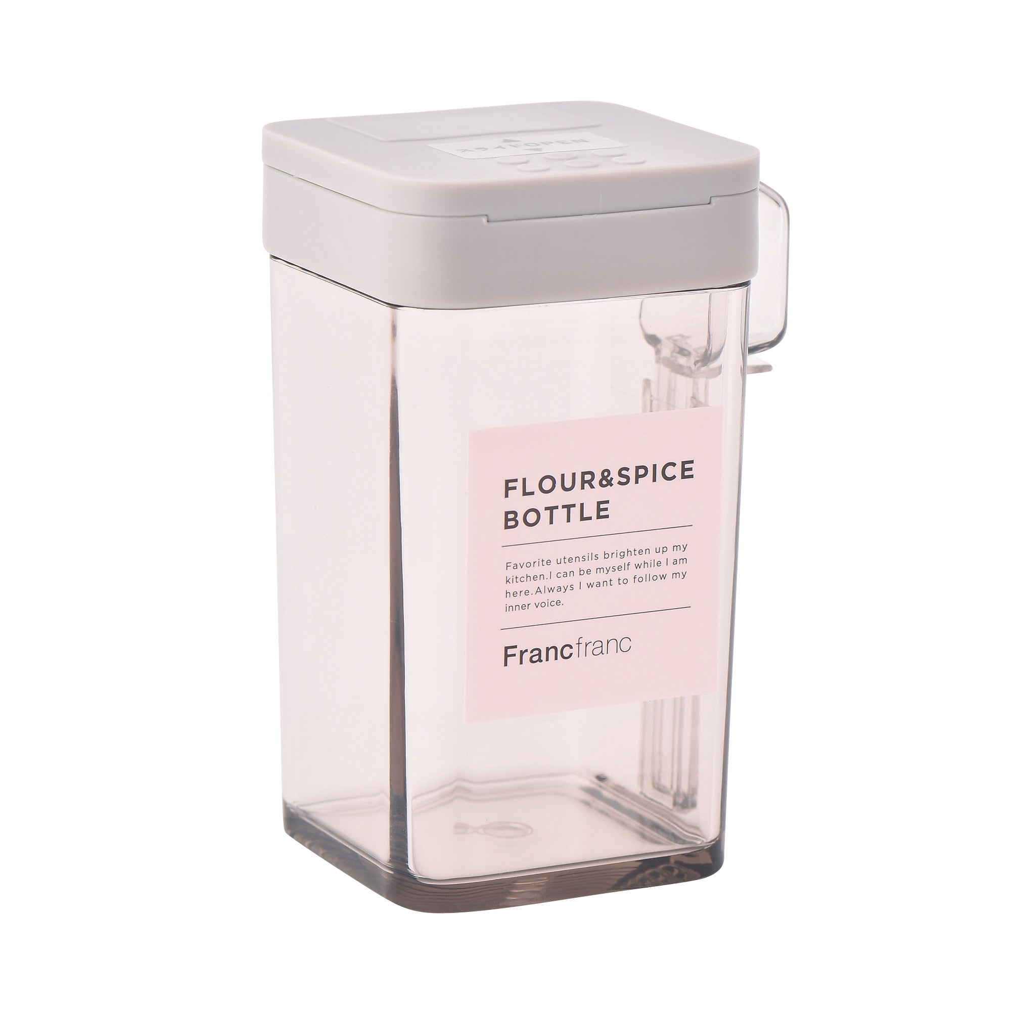 Francfrancらしい色合いの小麦粉&スパイスボトルです。使いたい量が片手で調節できる調味料保存容器です。前後にフタをスライドさせ、分量を選んで出すことができます。さらさらタイプの小麦粉やスパイスなどを簡単ふりかけ。
