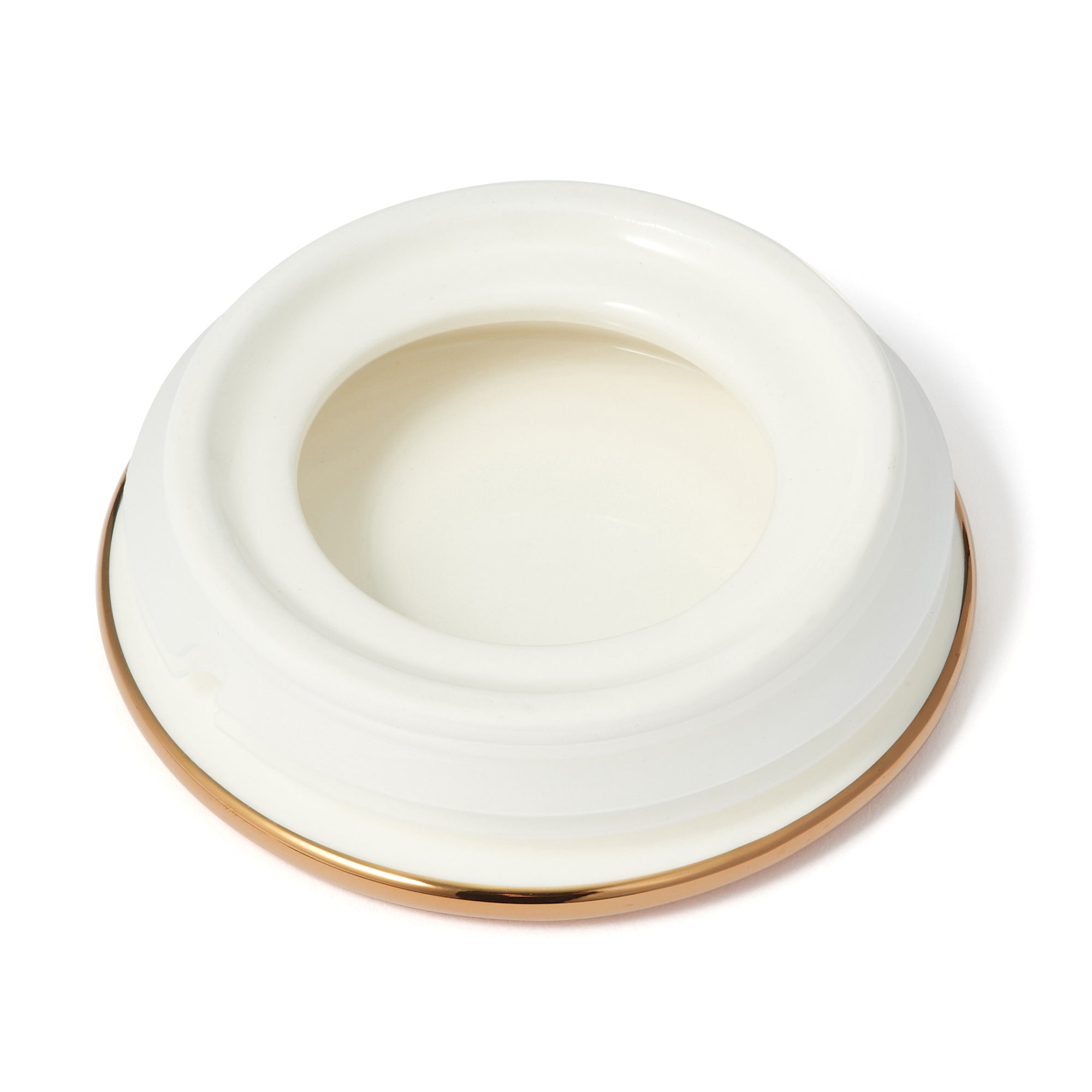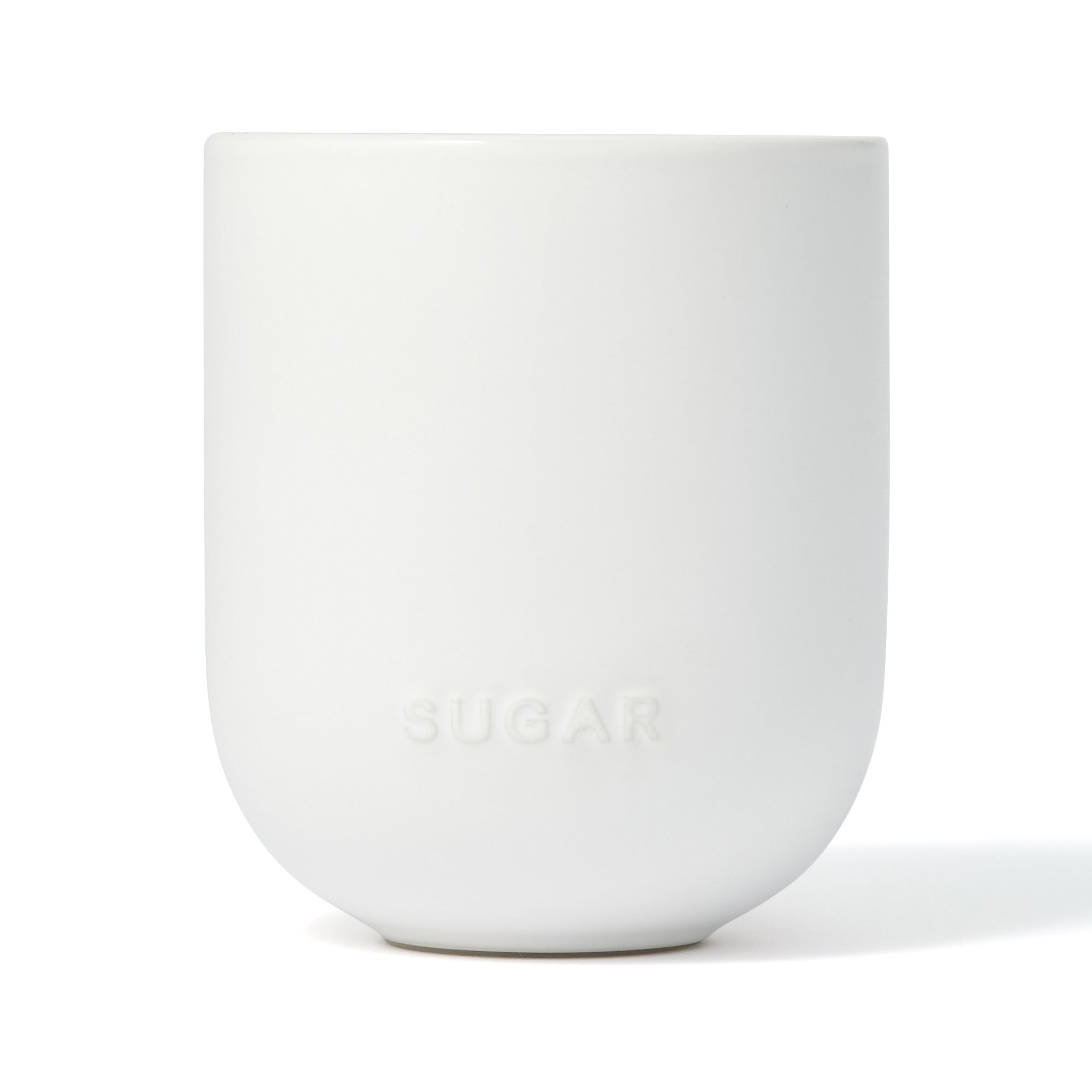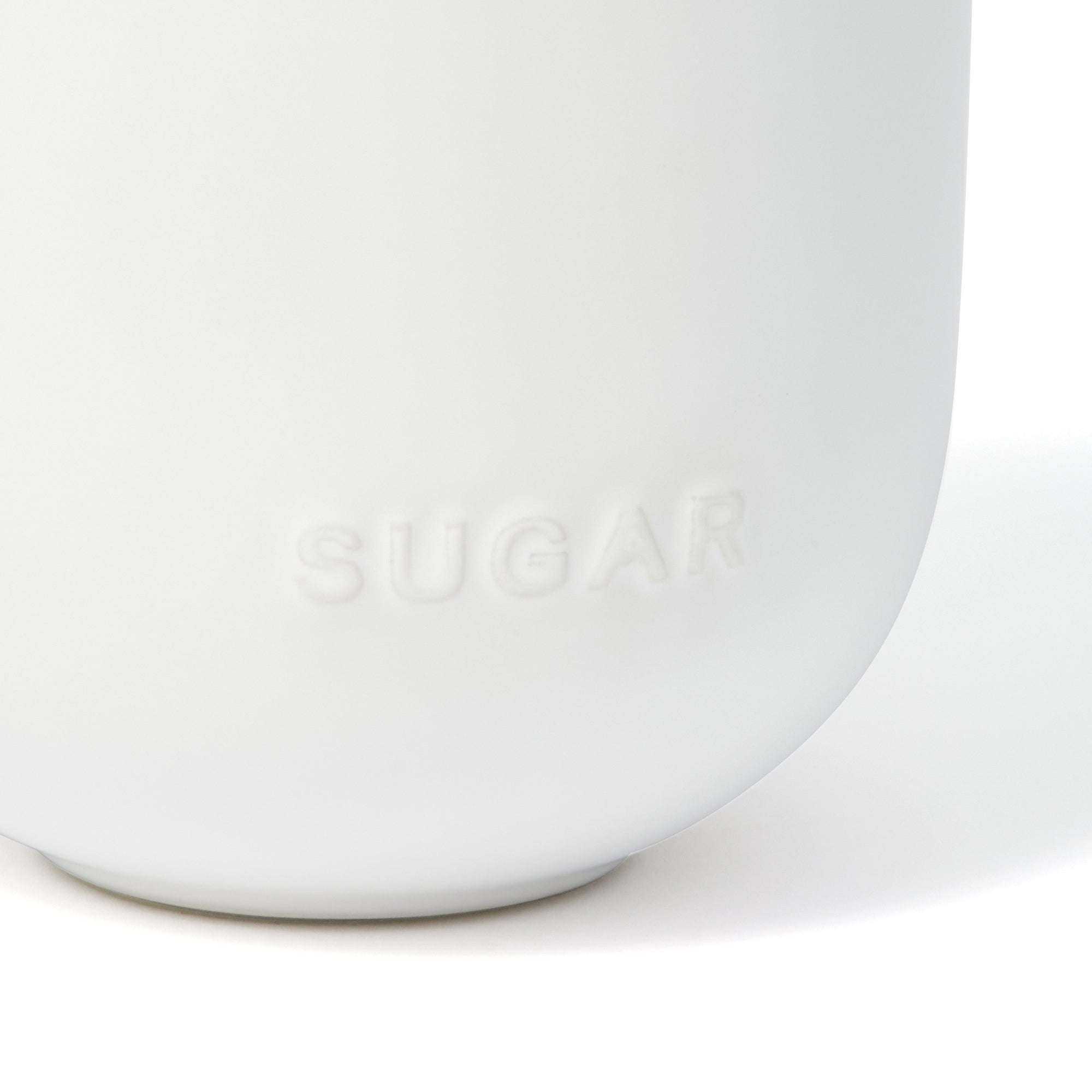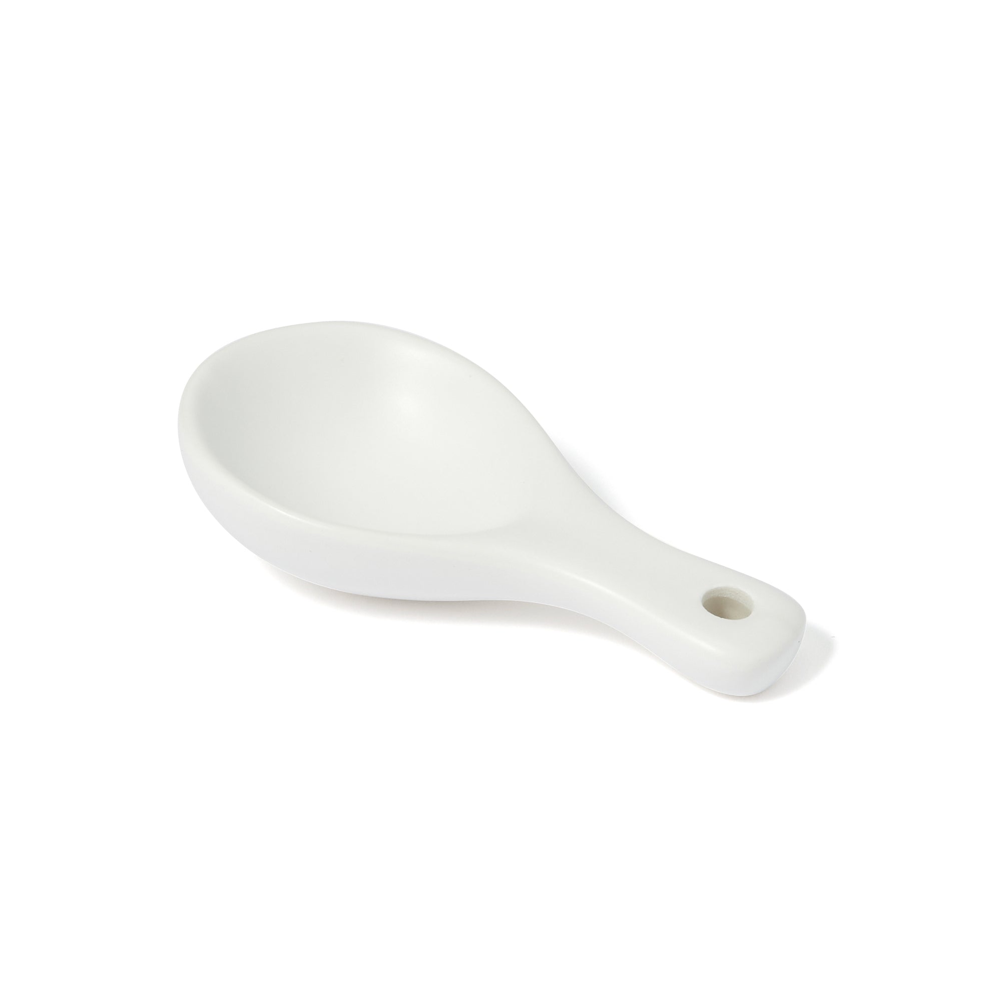 シンプルなデザインにコッパー色のフタのコントラストが素敵なキャニスターです。かわいい陶器の小さじが付いて便利です。