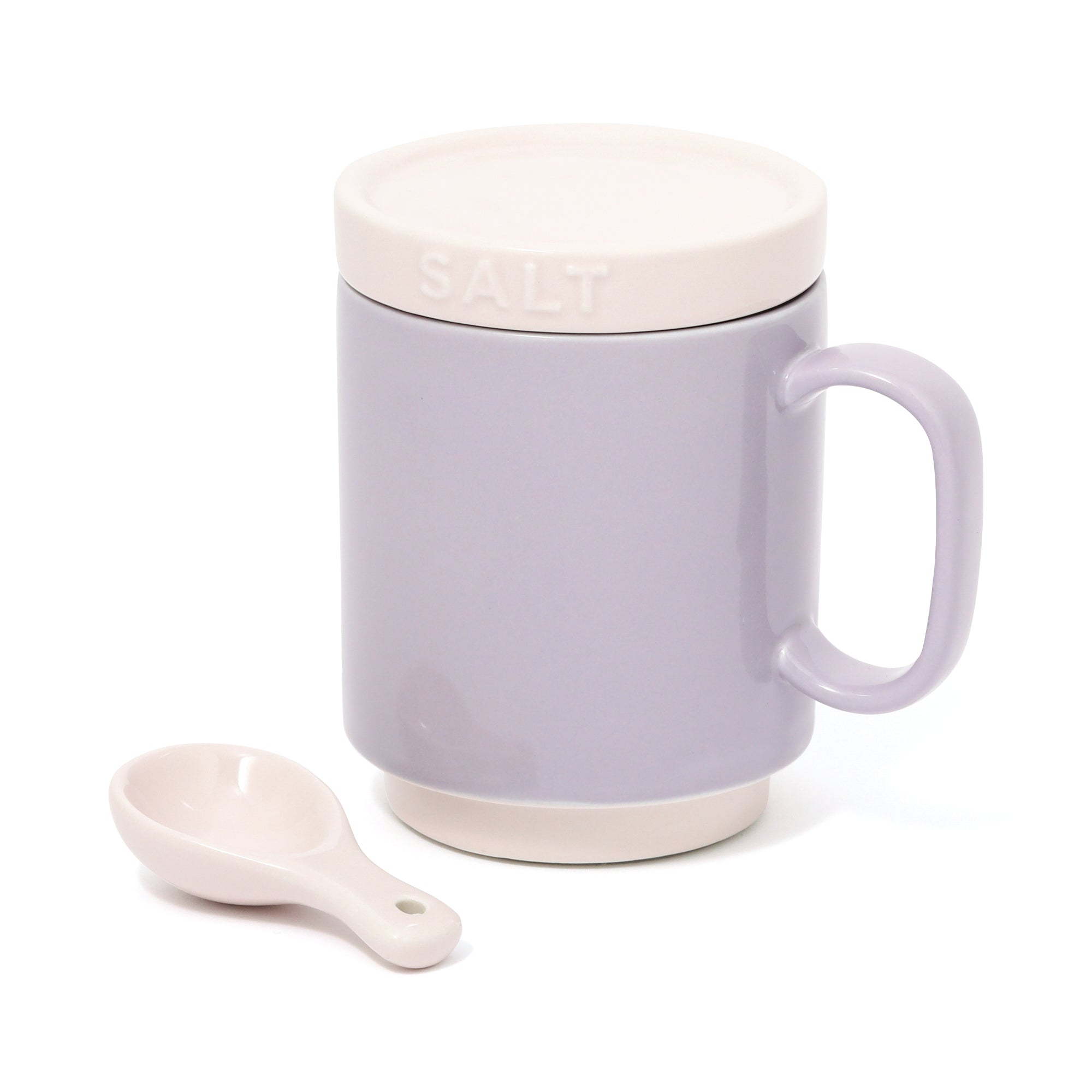 フタと本体がバイカラーになったおしゃれなキャニスターです。中身がさっと区別できるように塩用と砂糖用とでフタと本体のカラーを反転させました。さらにフタに書かれた「SALT」「SUGAR」の文字を見やすい位置に調整できて、機能性抜群です。フタの上部が少しくぼんでいるのでスタッキングも可能。限られたスペースでもコンパクトに収納できます。